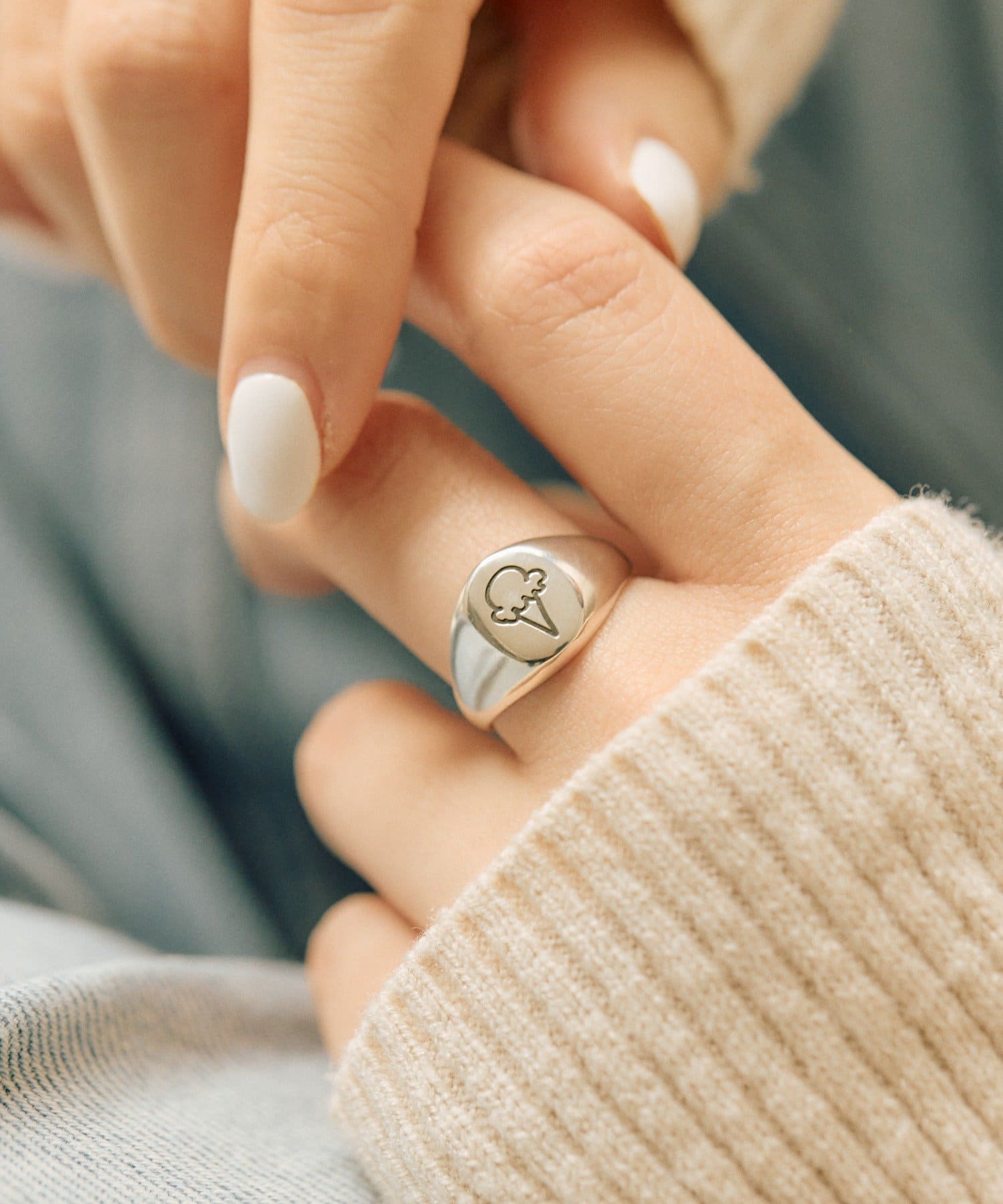 ・描かれたイラストがポイントのメッセージリング