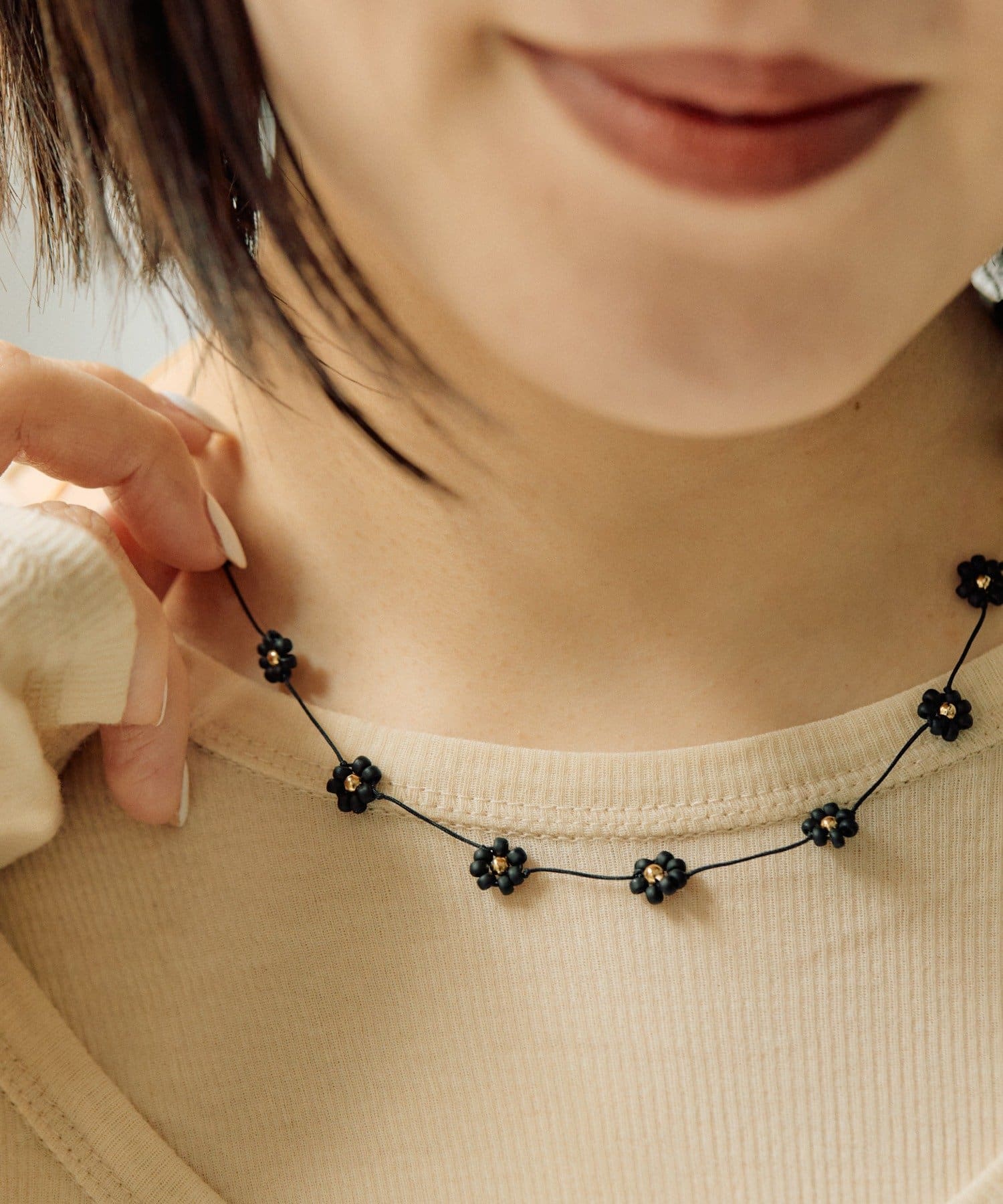 • ear PAPILLONNER(イア パピヨネ) ビーズフラワースライドネックレス