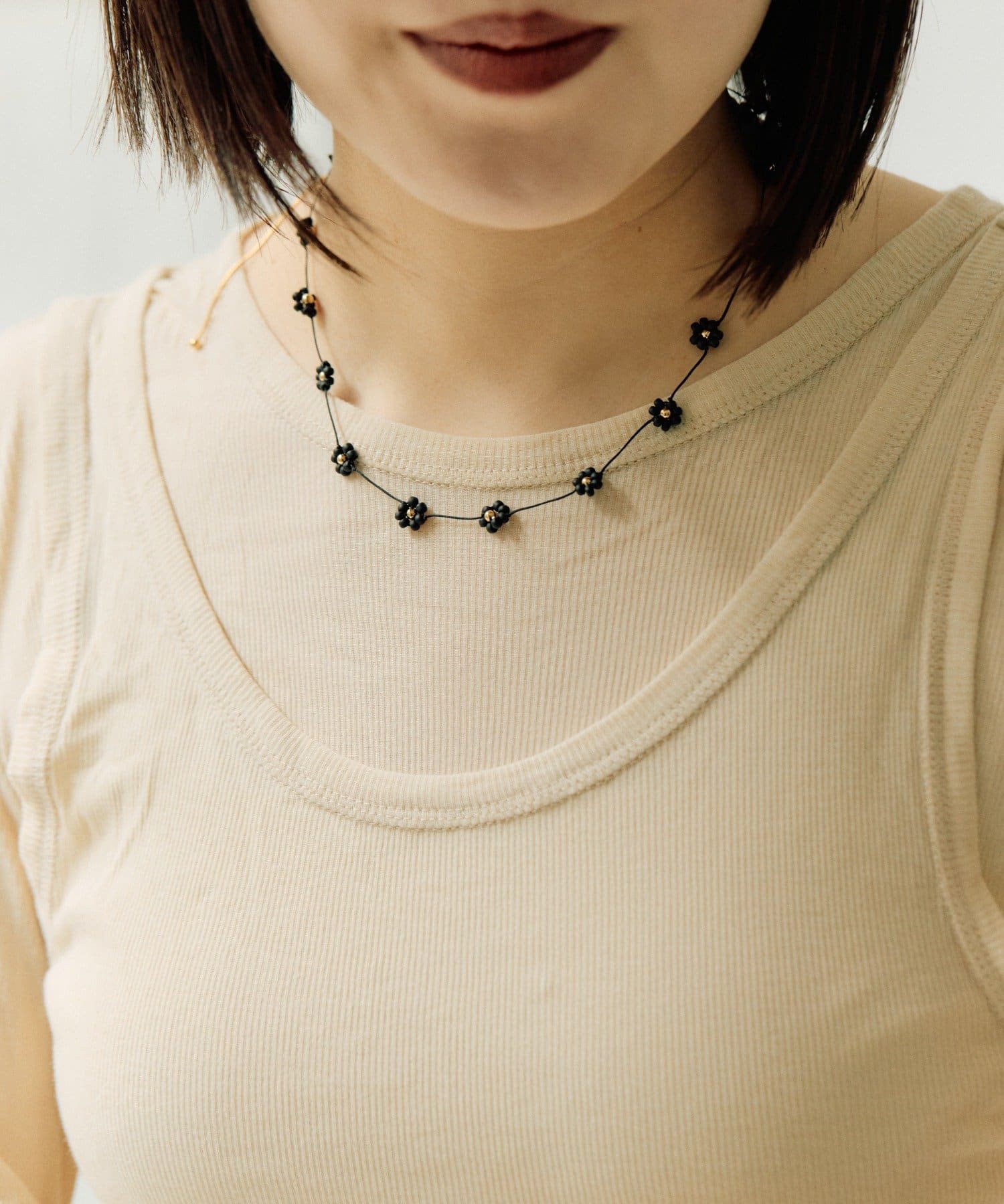 ear PAPILLONNER(イア パピヨネ) ビーズフラワースライドネックレス