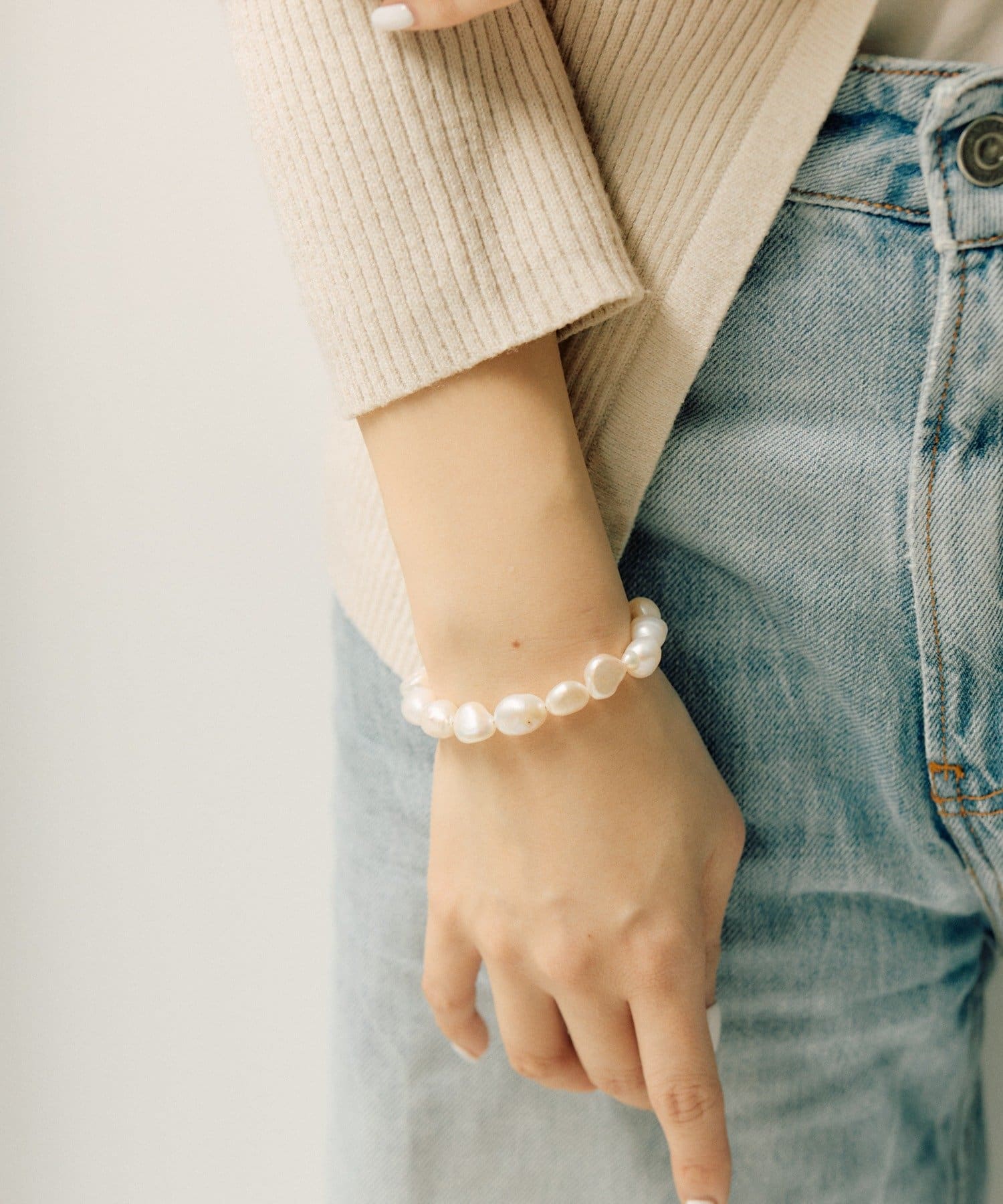 ・淡水パールのいびつな形が魅力的なブレスレット
