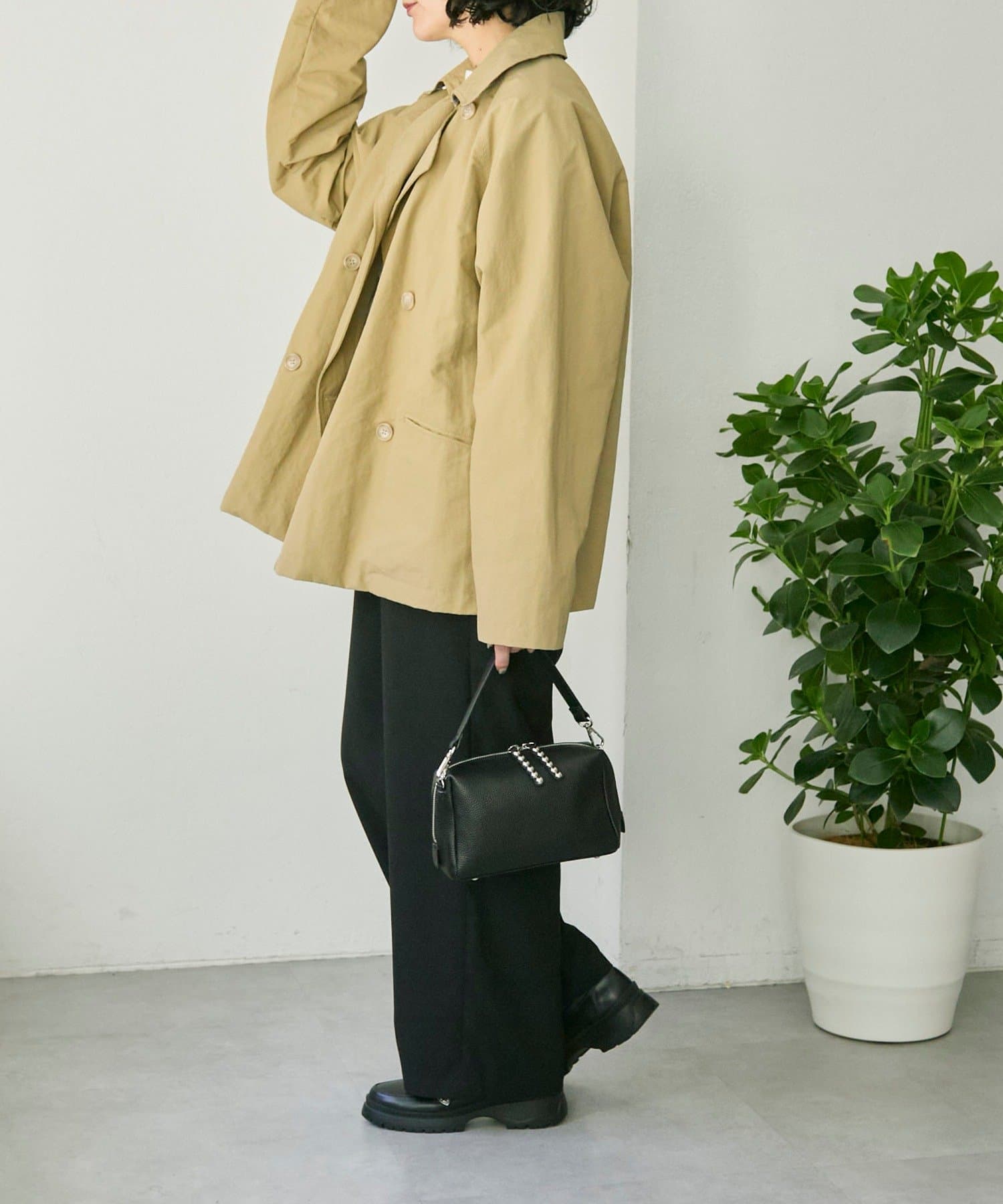 ・本体の引き手や付属のショルダーベルトに施されたスタッズパーツがポイント