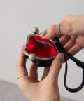 存在感のある大きながま口が、遊び心と実用性を兼ね備えています。