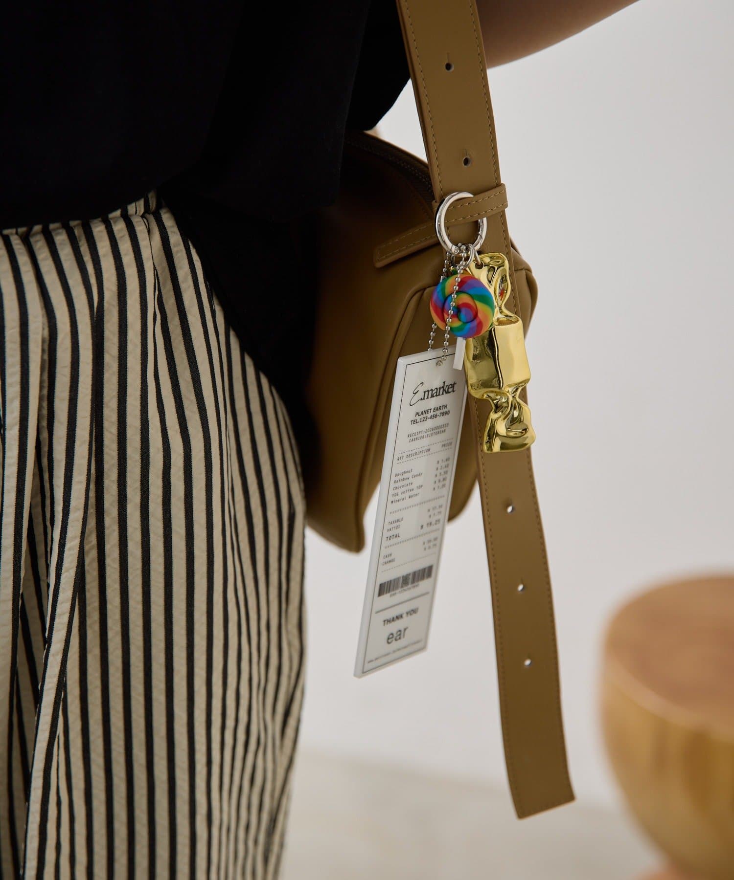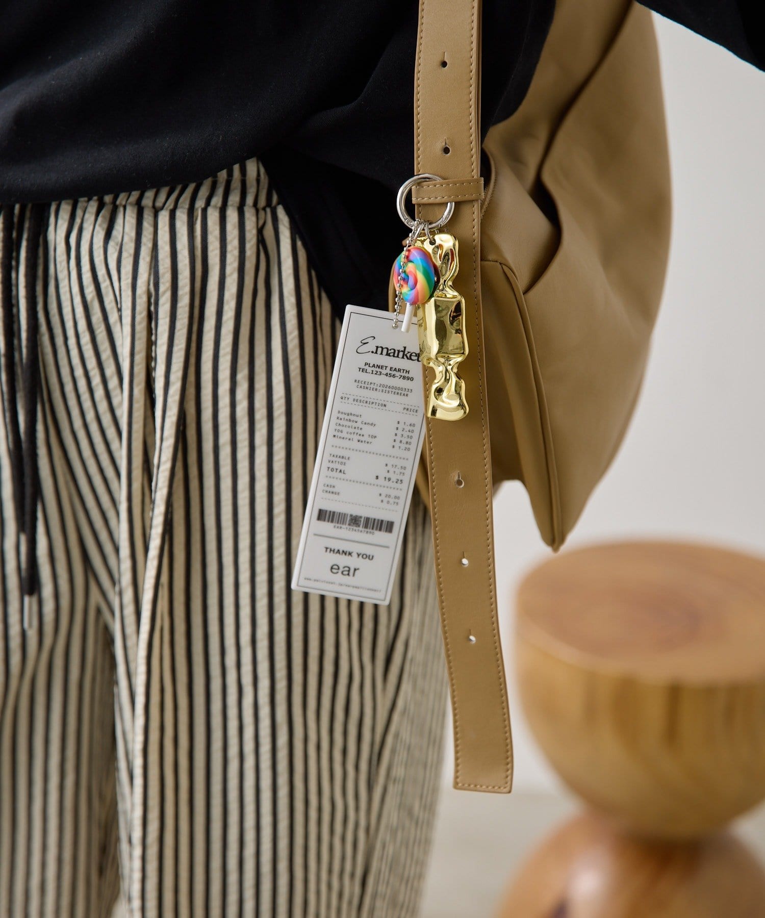・架空のスーパーのレシートを模したプレートに、リアルなキャンディがポイントのチャーム