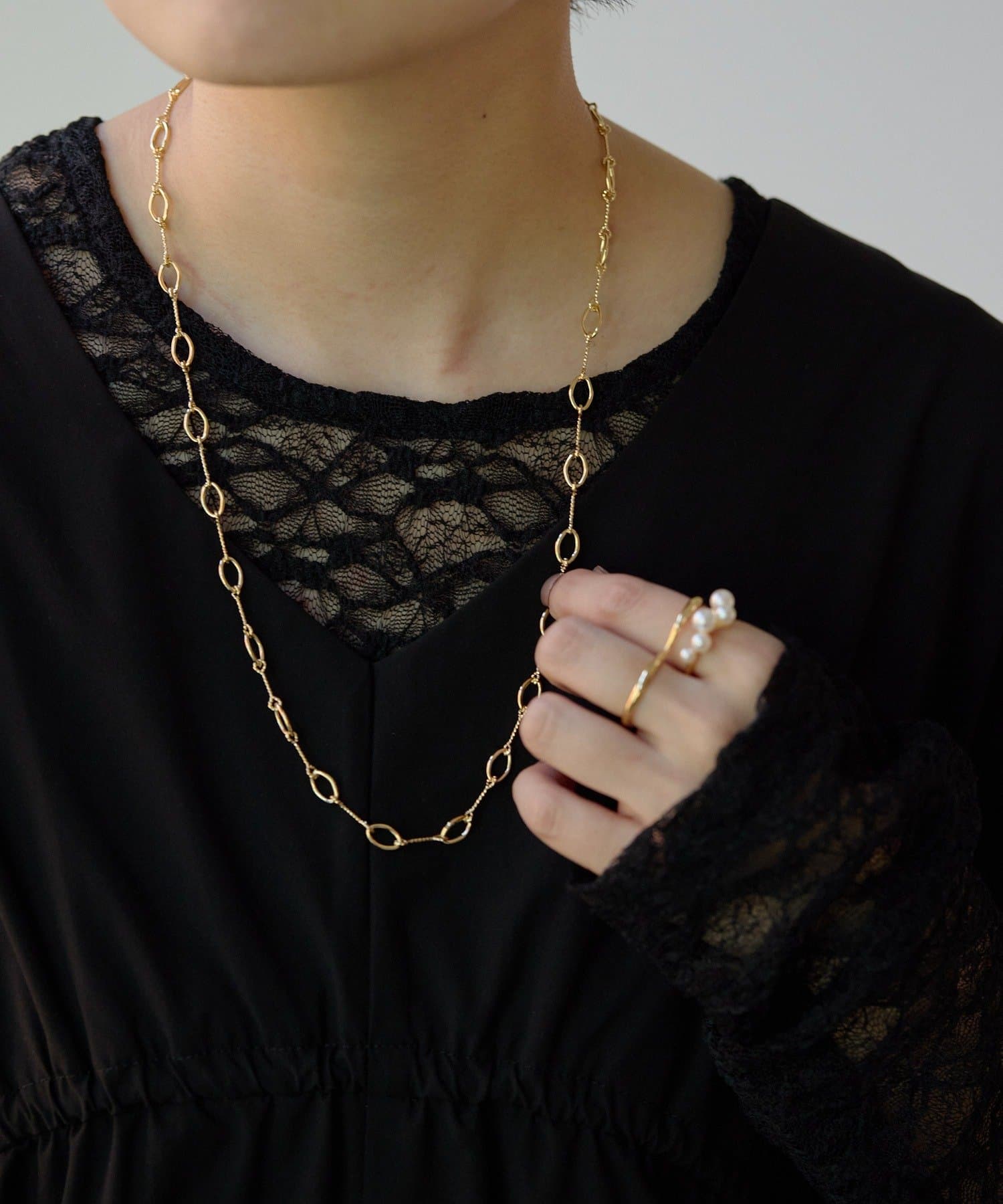 ペンダントと重ね付けしたり、ロングネックレスとのレイヤードを楽しんだり、様々なアレンジで個性を演出。