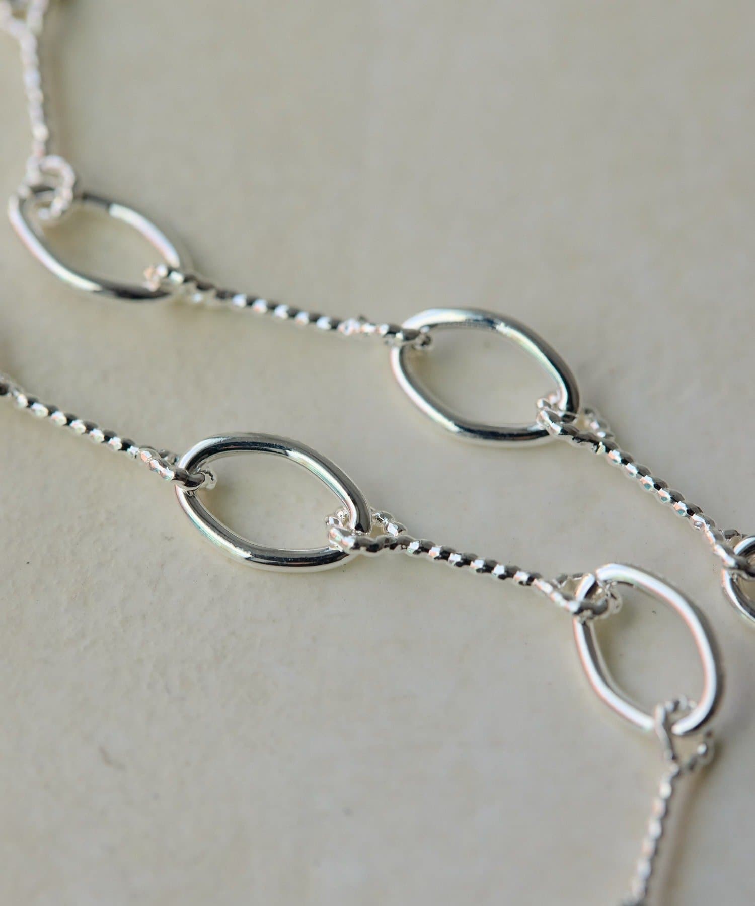 ・60㎝のミディアムレングスは、ペンダントやロングネックレスとのレイヤードもしやすい丁度良さ