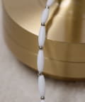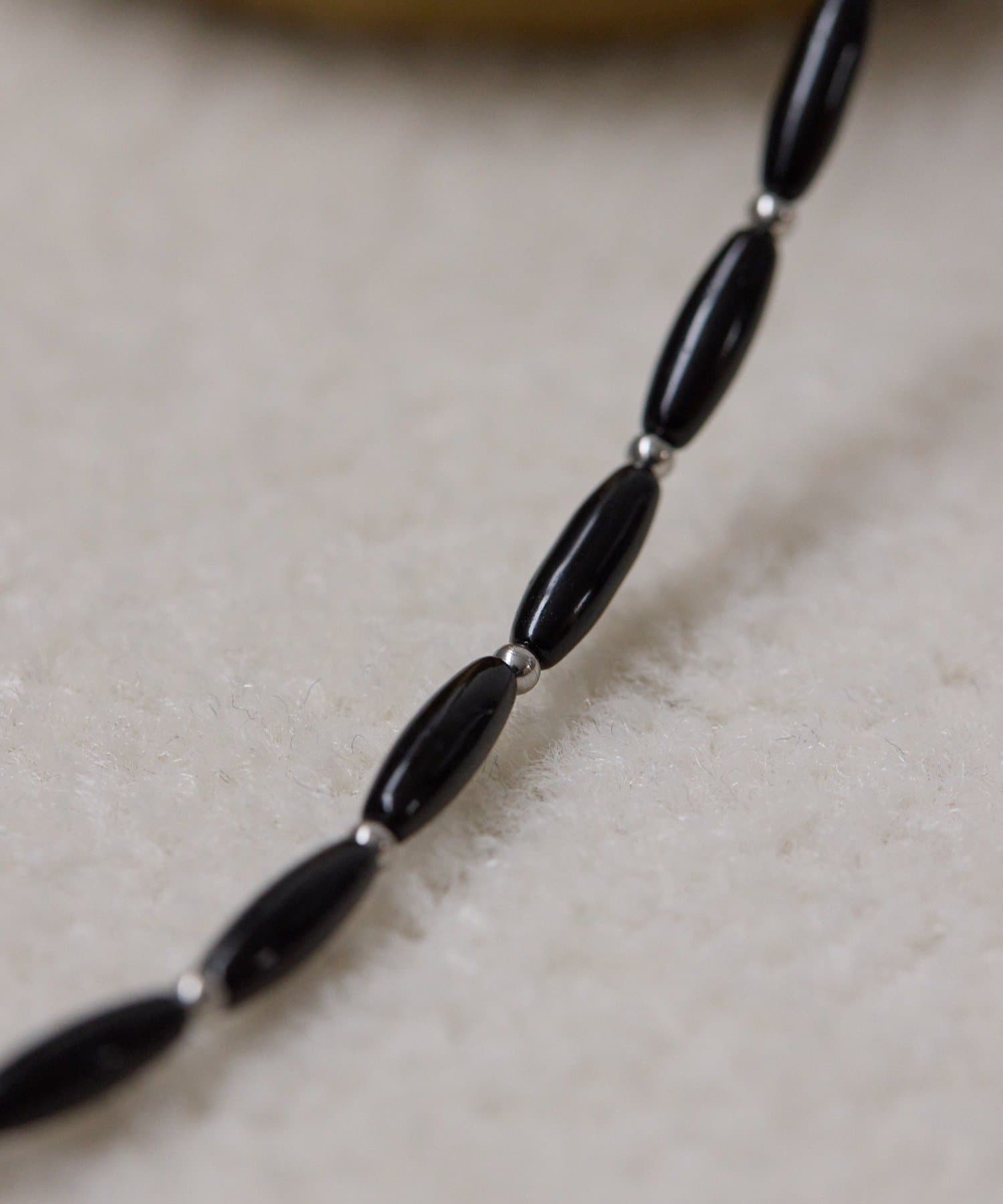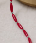 細長いカラービーズが連なる、シンプルなデザインのネックレス。