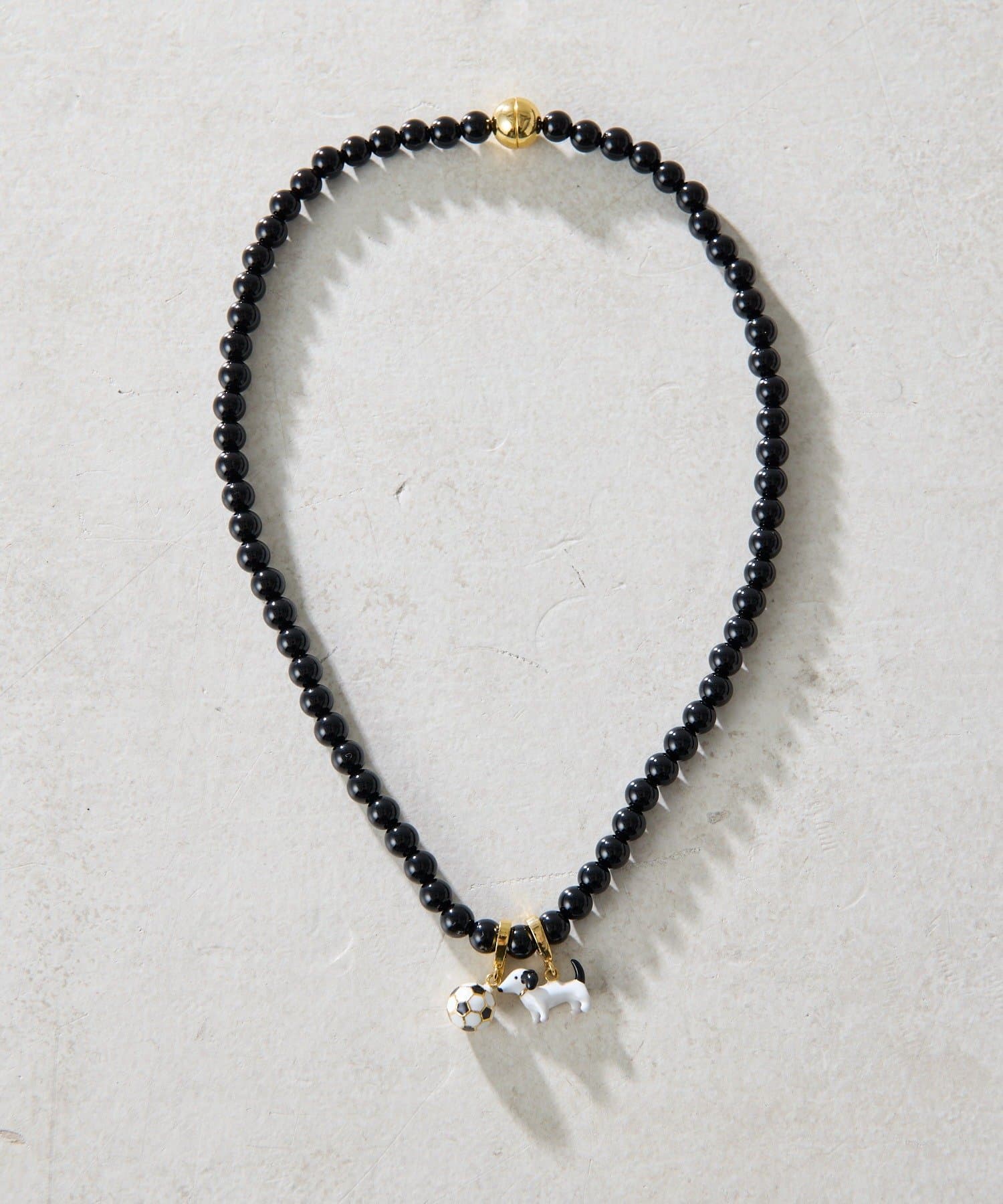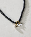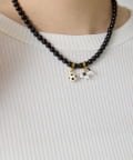 遊び心あふれる、2チャーム付きブラックパールネックレス。