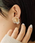 ・透かし模様の花びらをバイカラーで重ねたフラワーピアス