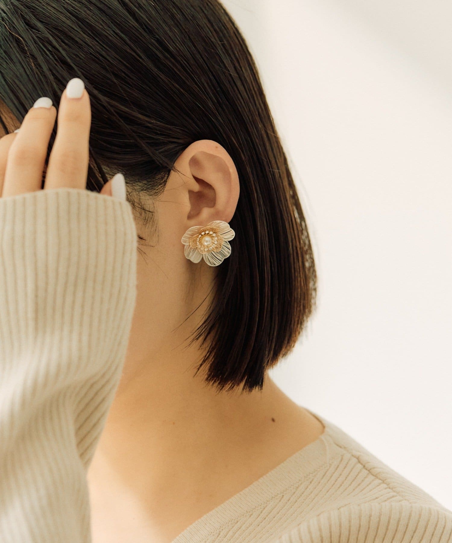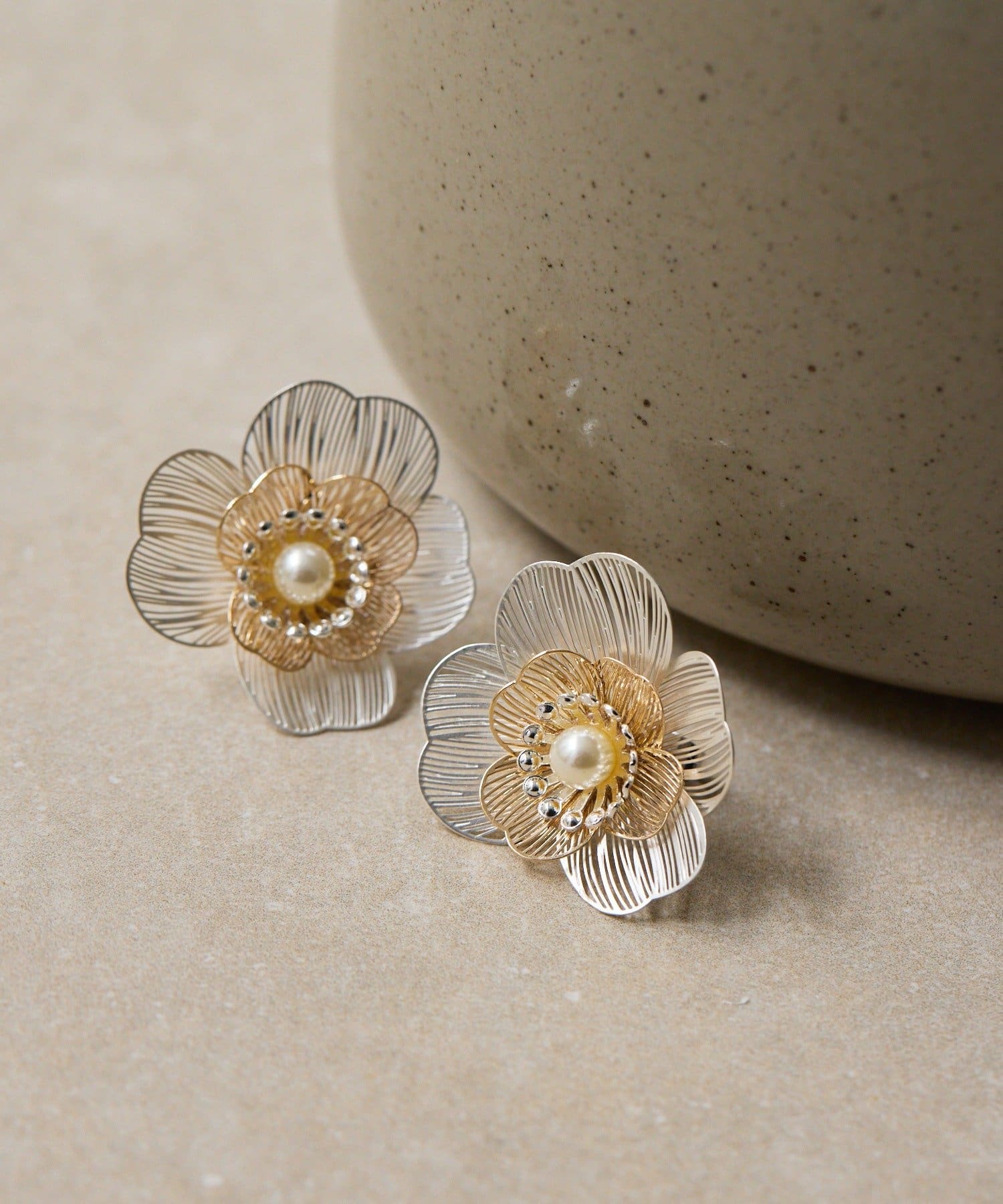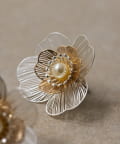 耳元に咲く、繊細な美しさ。「透かしパールフラワーピアス」