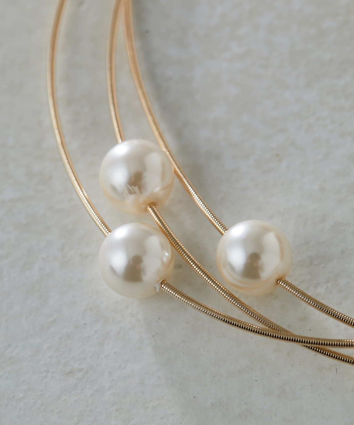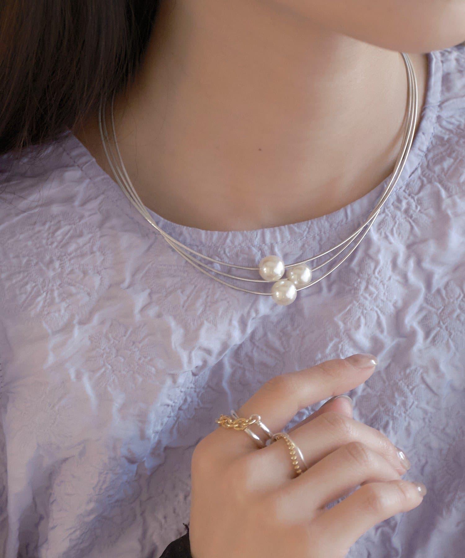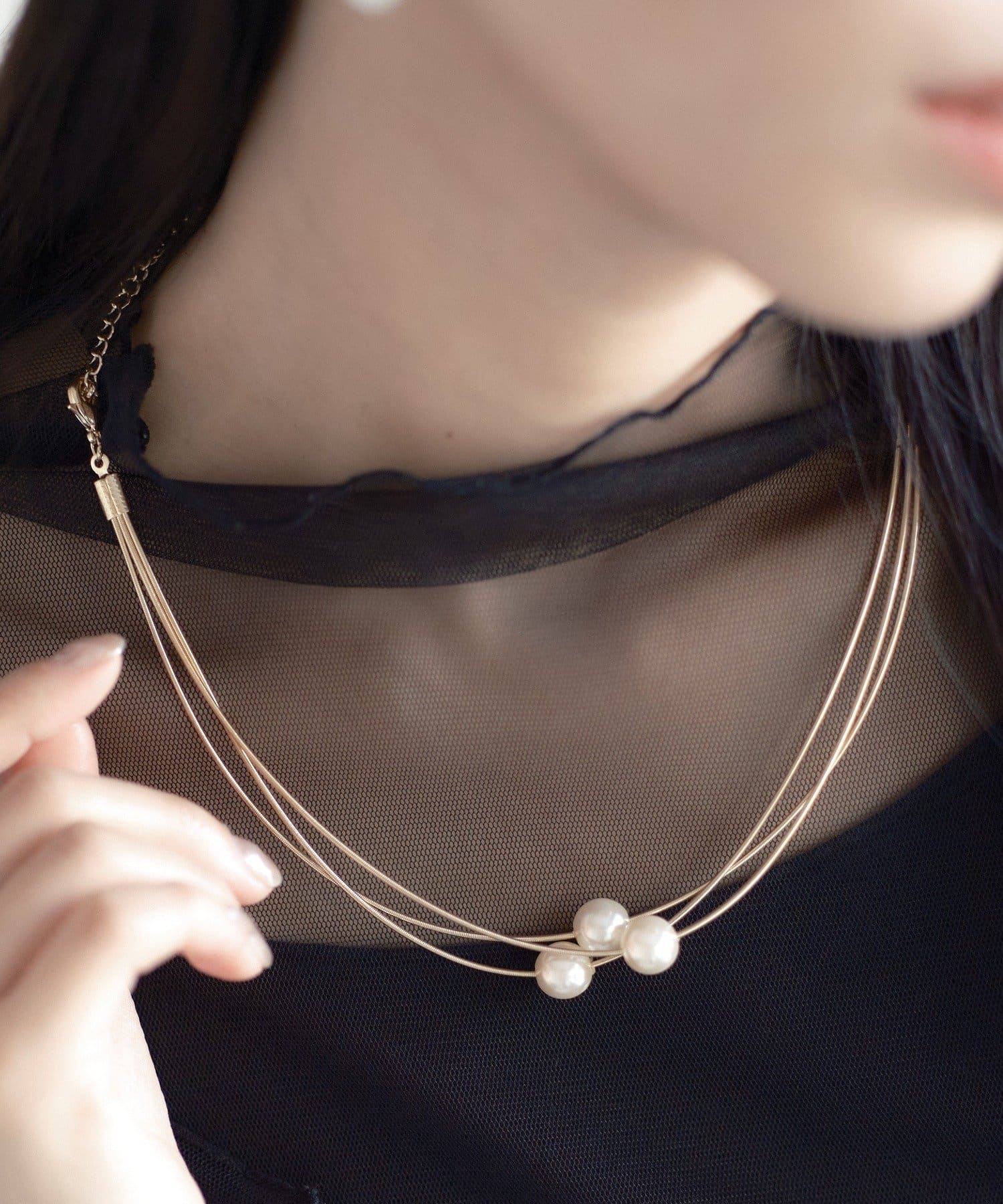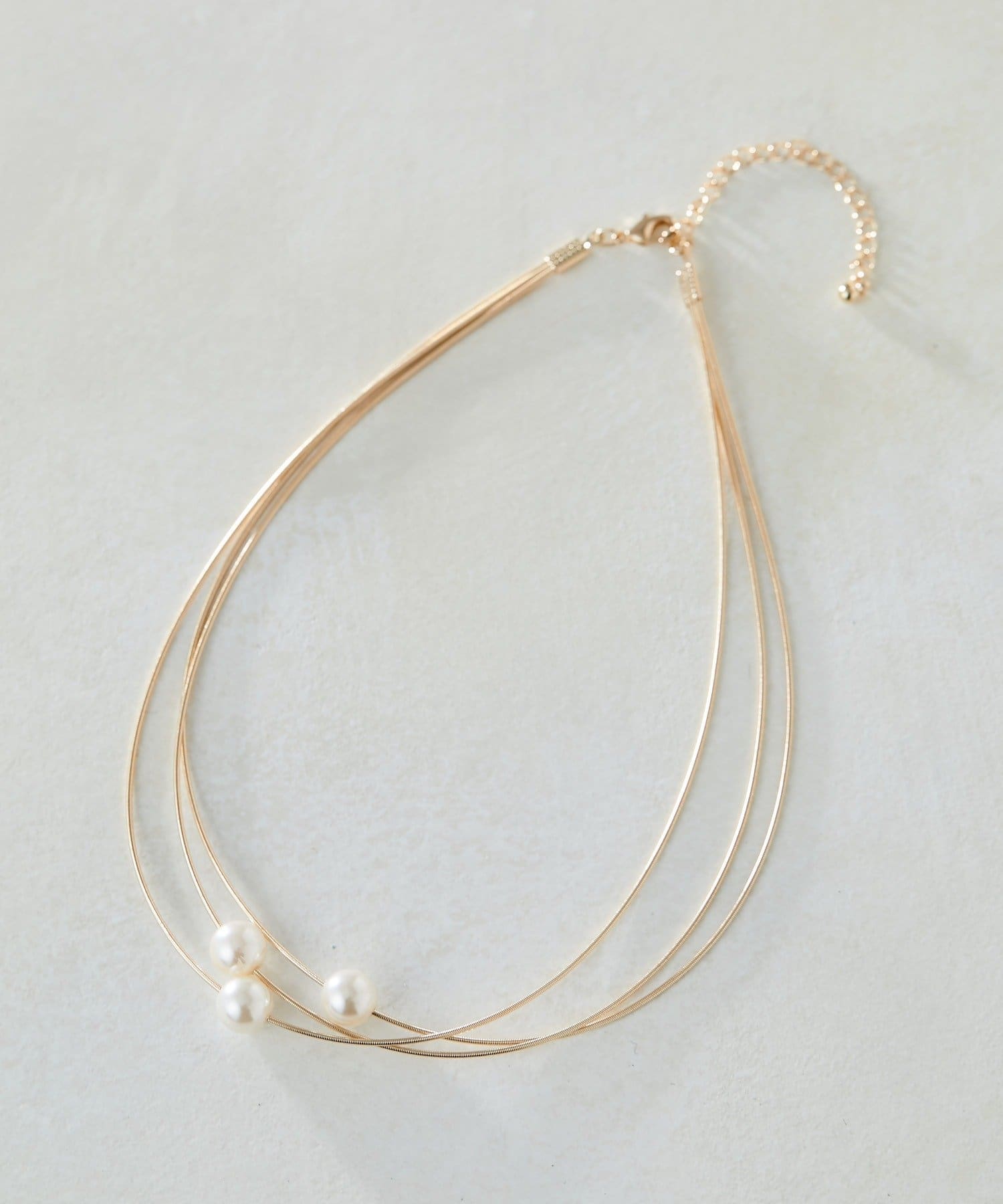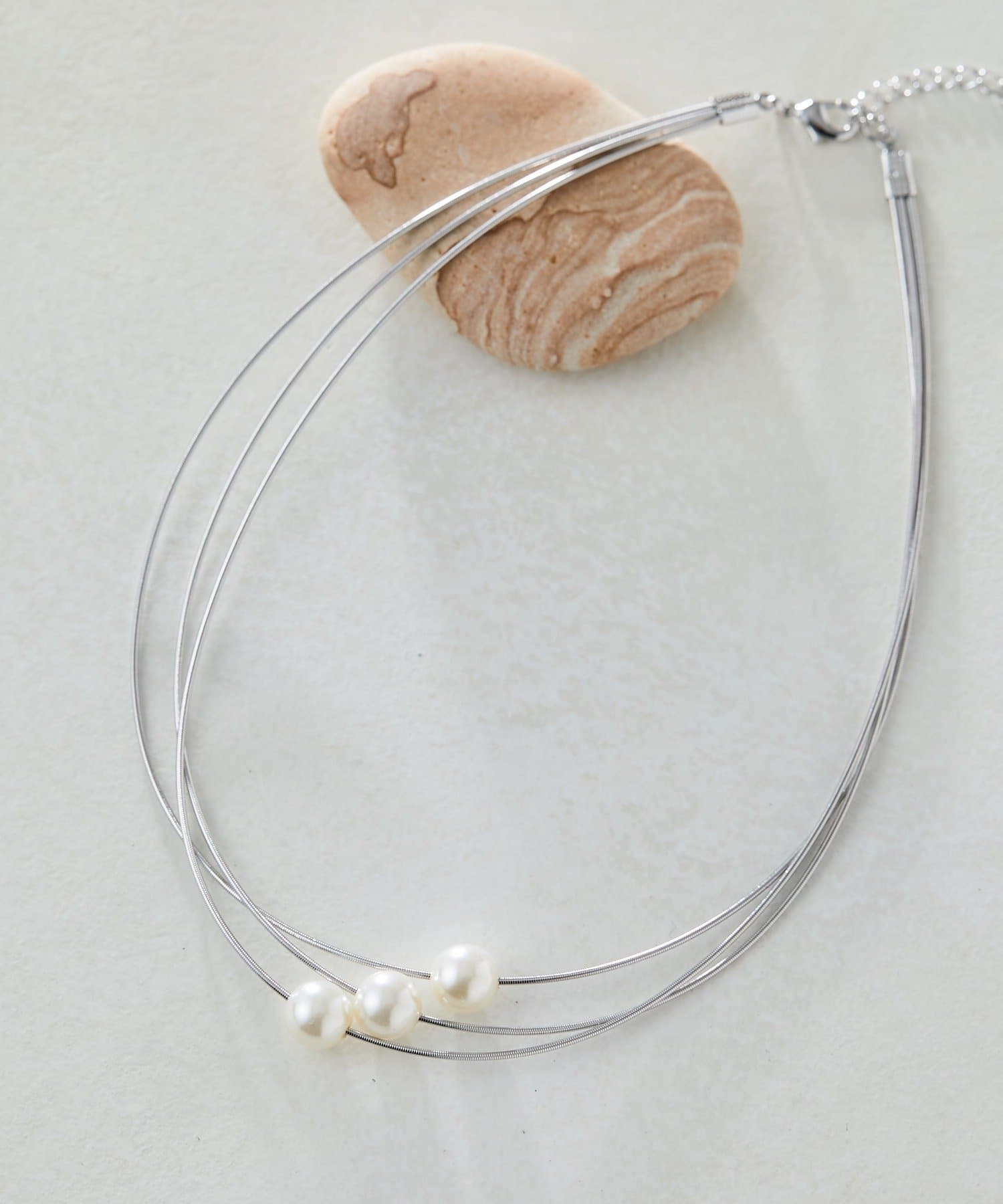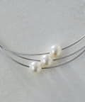 やわらかいワイヤーコードに一粒パールが通った、3連パールネックレス。