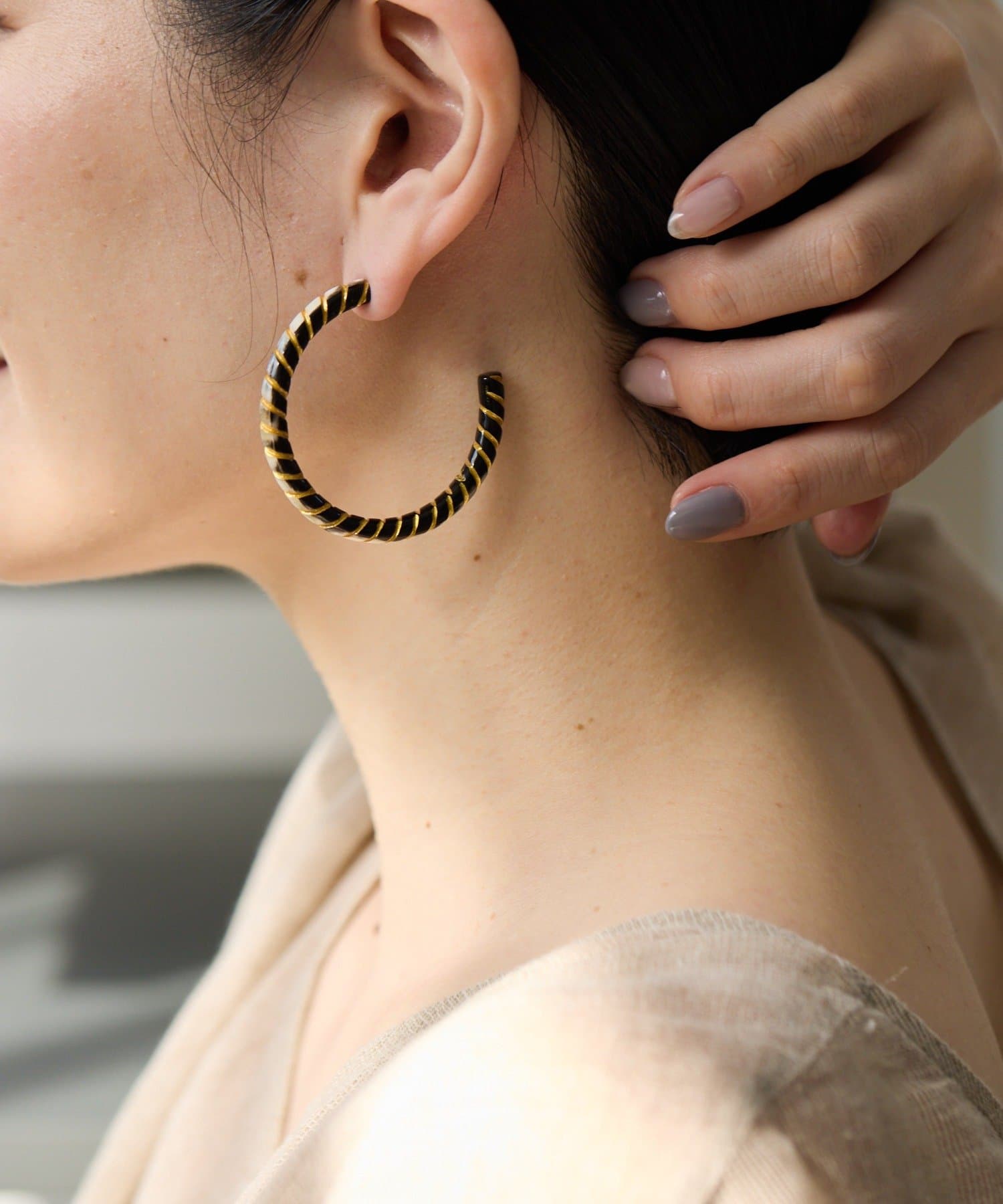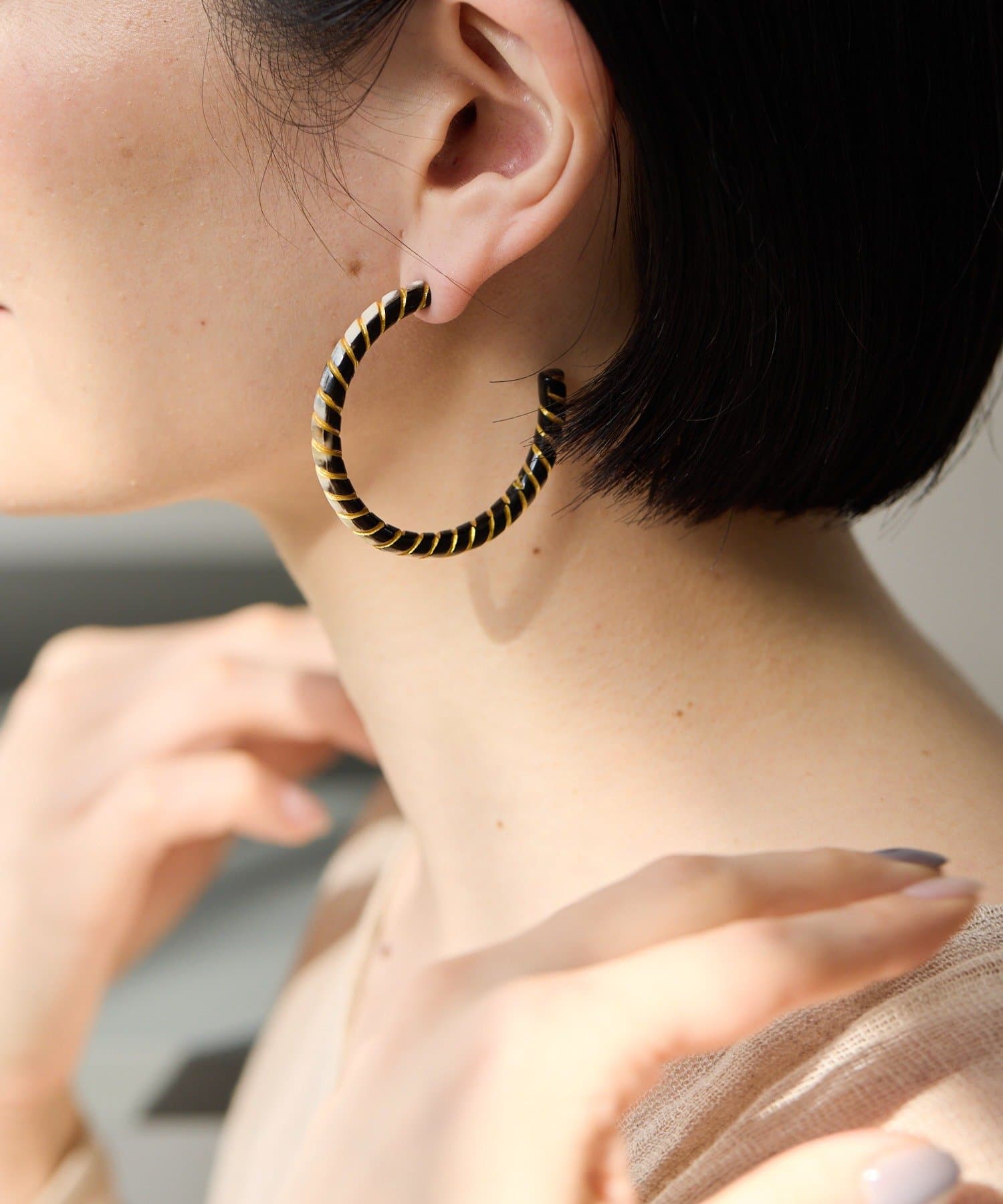 耳元に個性的なアクセントを添える、水牛角のフープピアス。