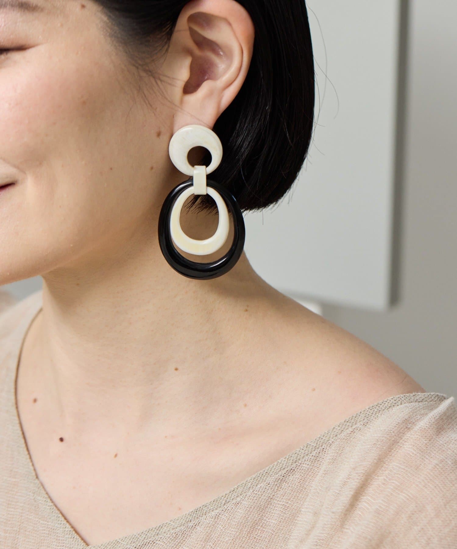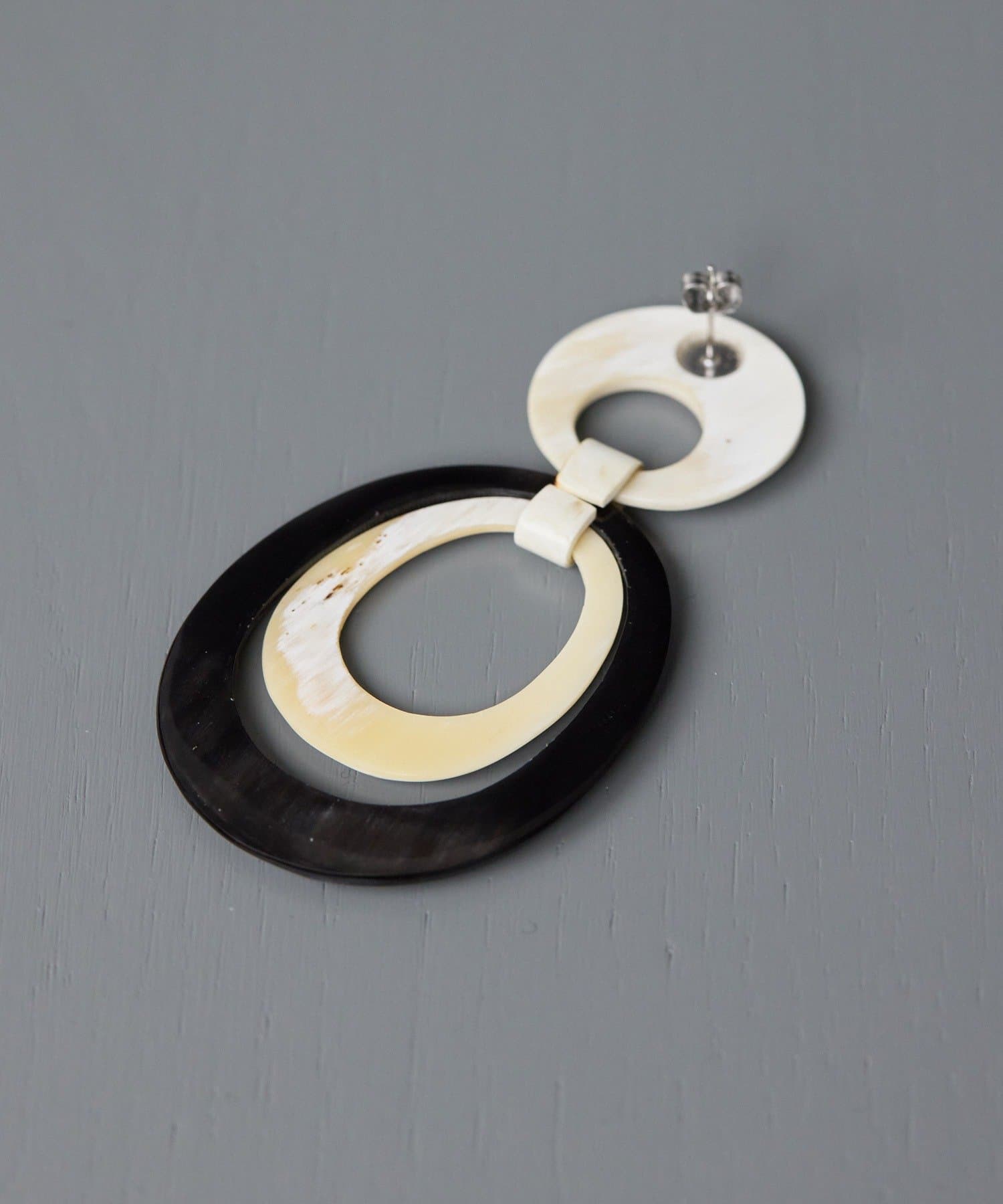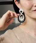 耳元で揺れる、水牛角のWリングピアス。