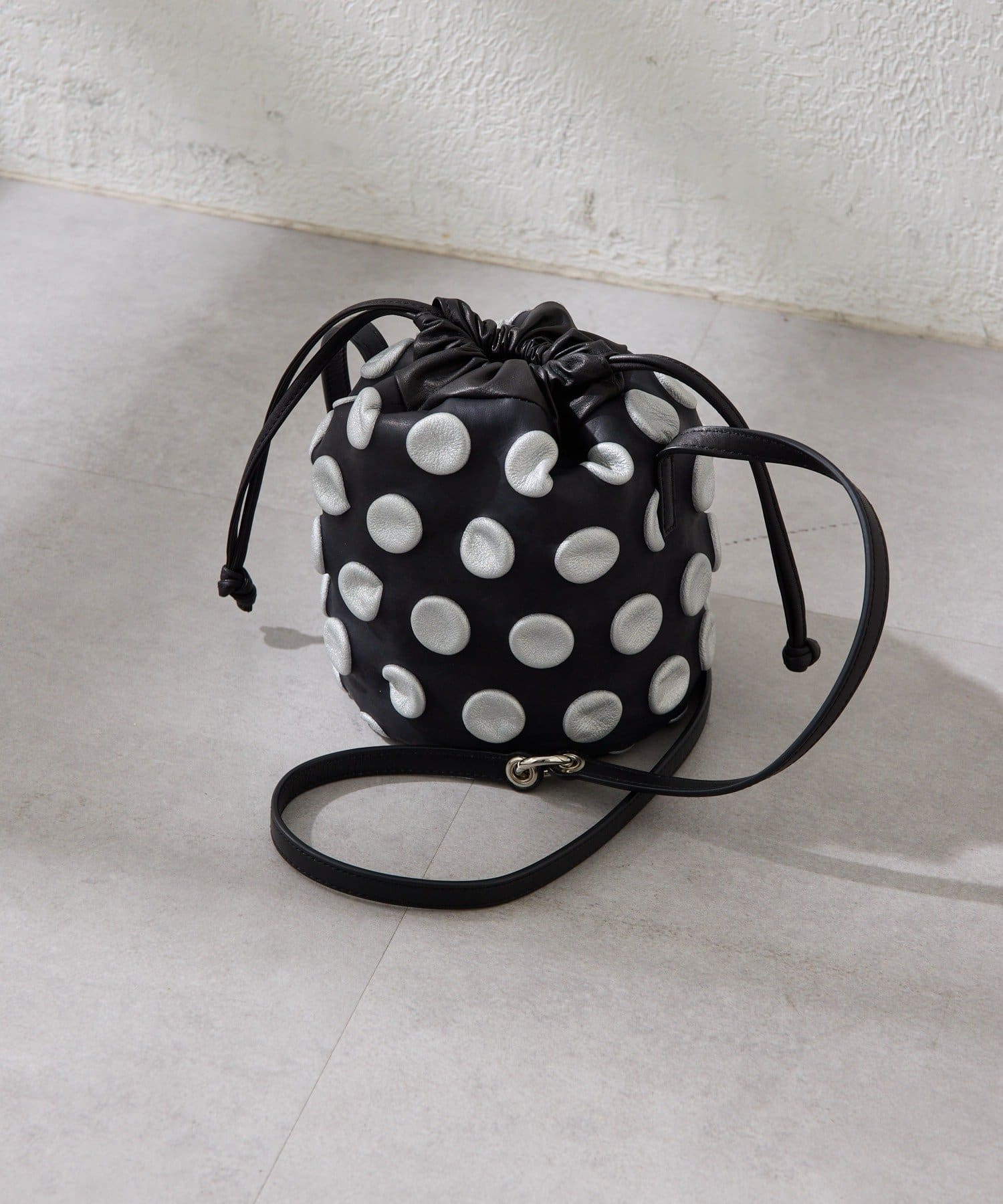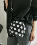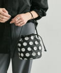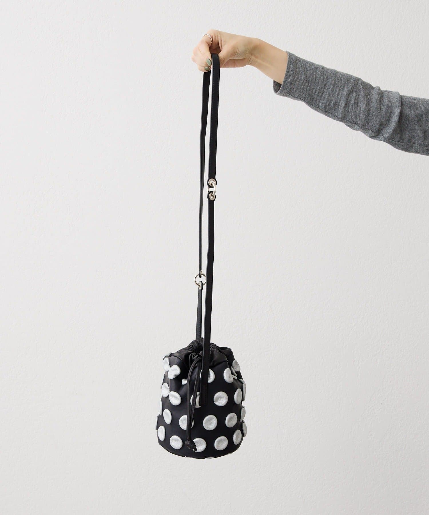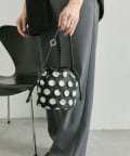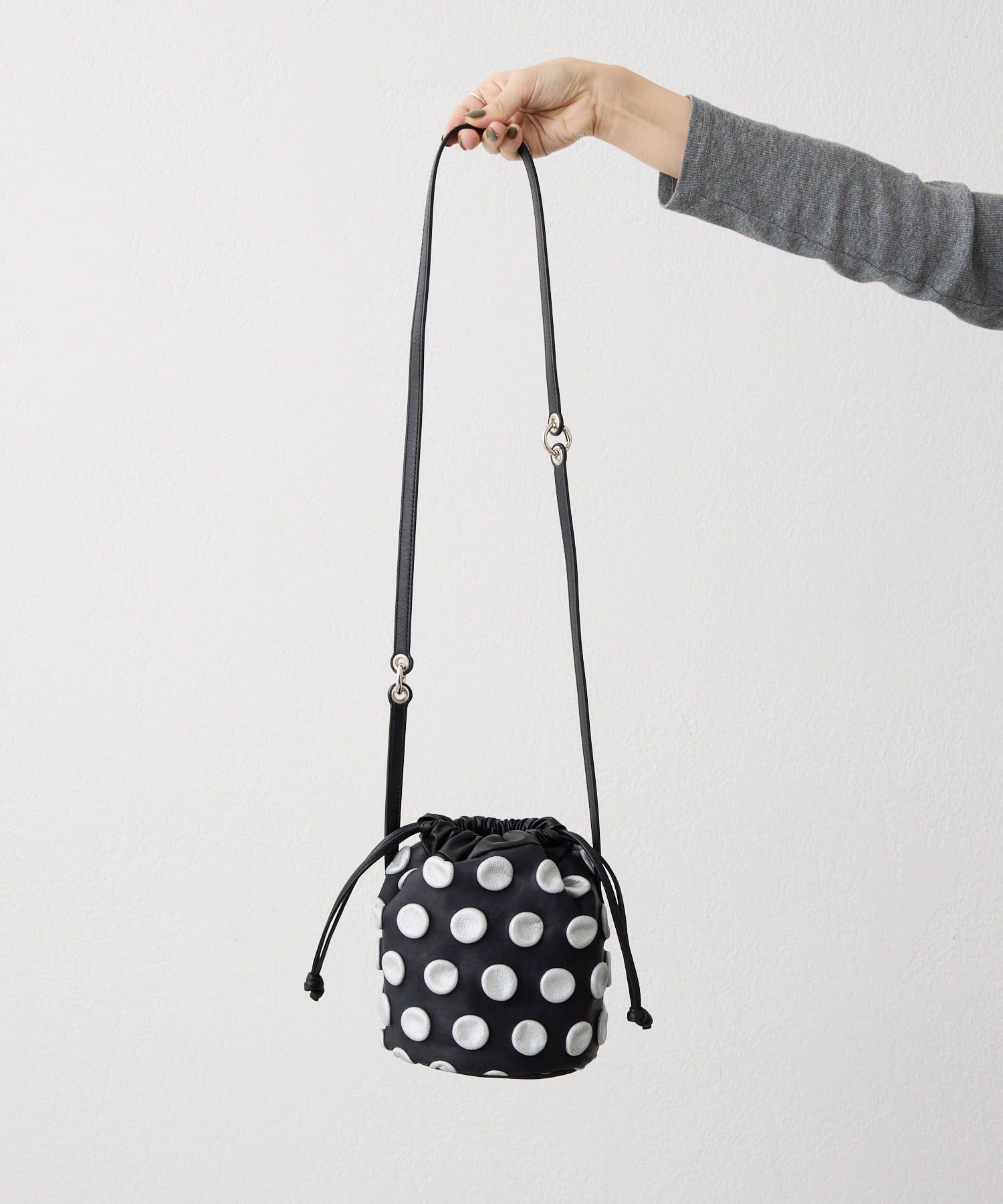 立体的な水玉模様が、装いにリズムと奥行きをもたらす巾着型の2WAYバッグ。