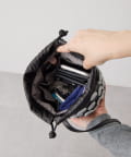 【ぽこぽことしたドットが躍る、モダンな巾着ポシェット】
