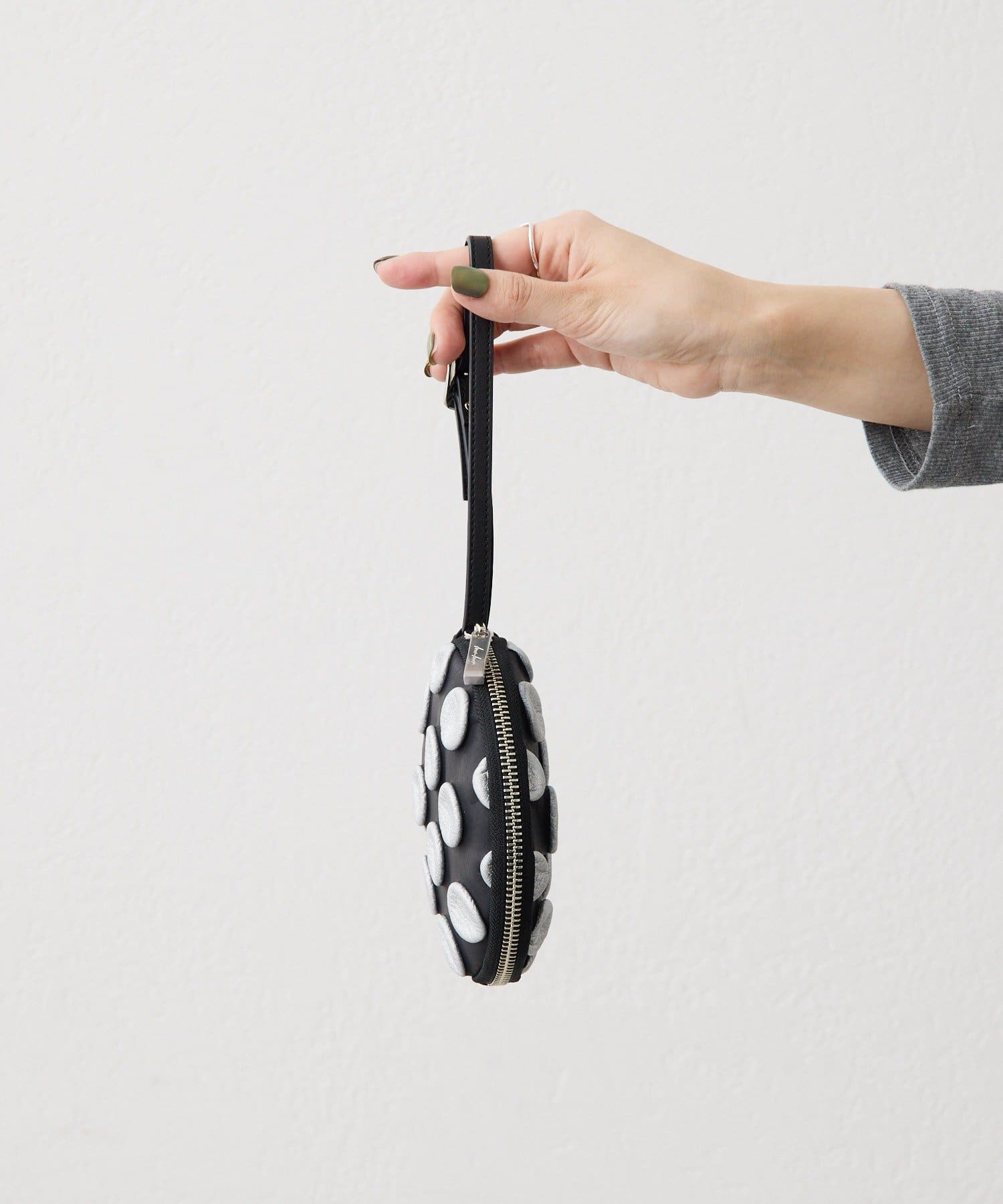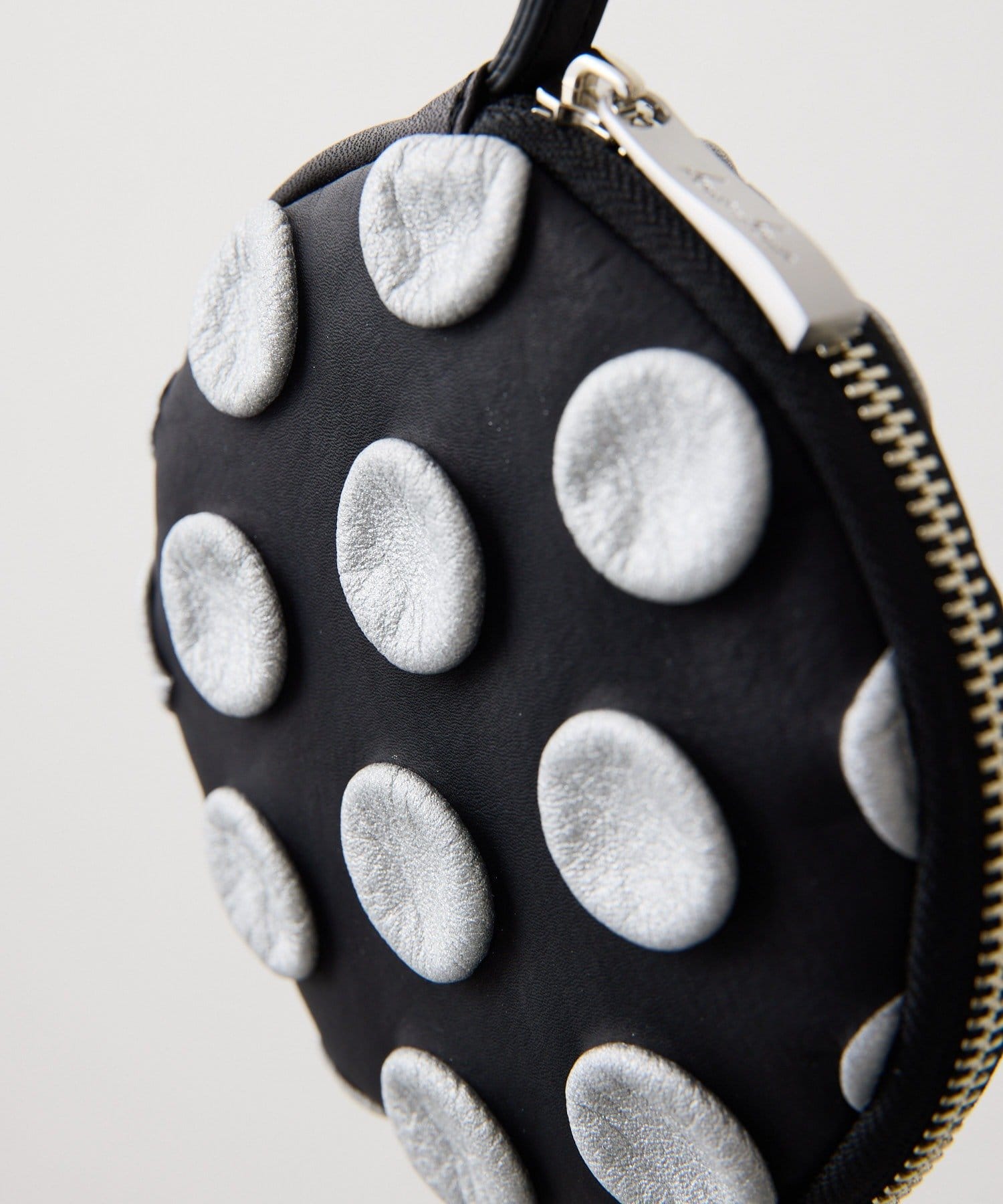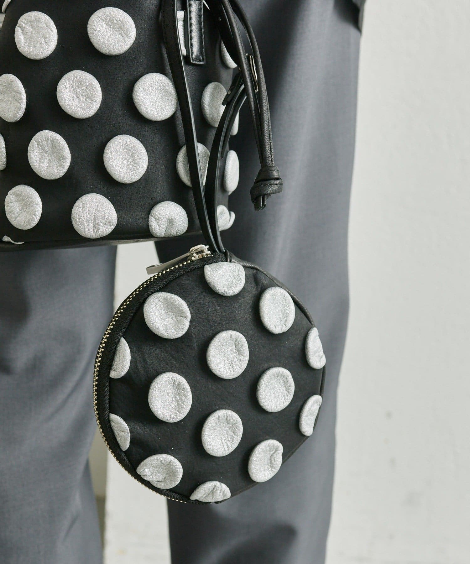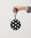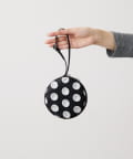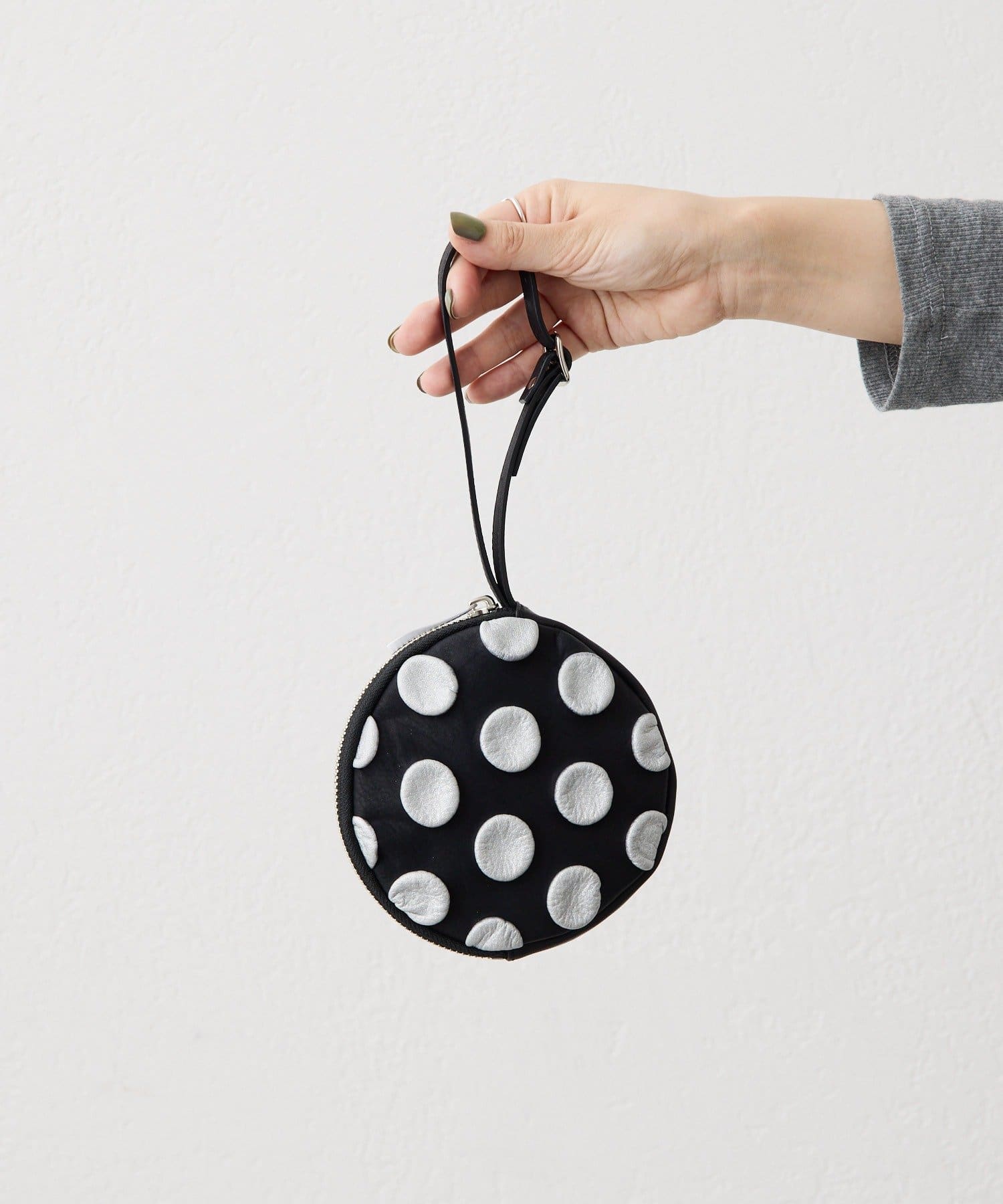 立体的な水玉模様が、日常の小物たちをモダンに包み込むサークルフォルムのポーチ。