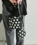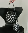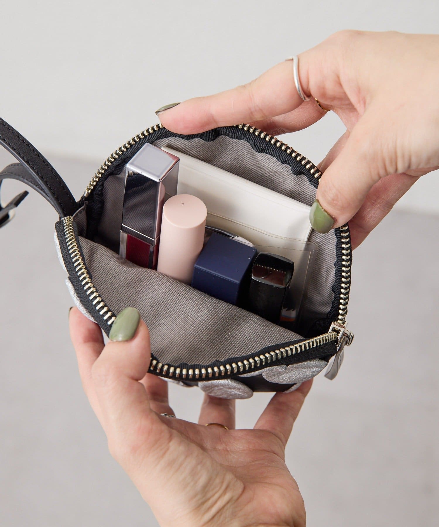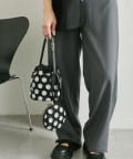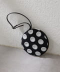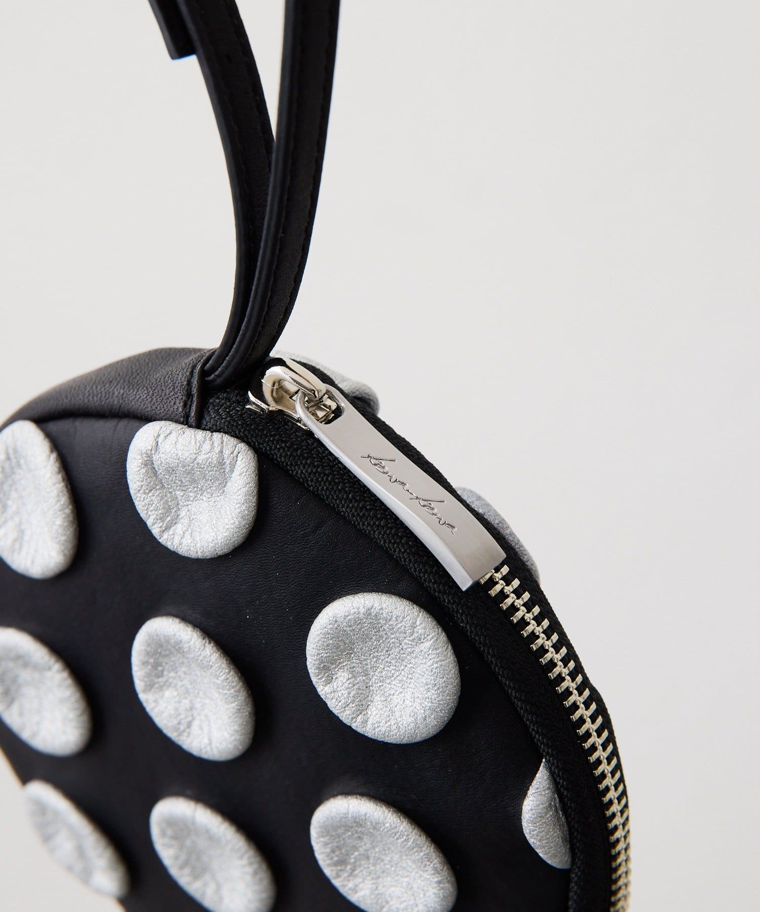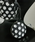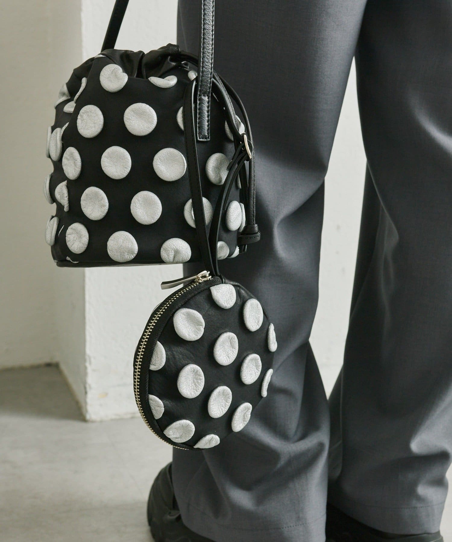 立体的な水玉模様が、日常の小物たちをモダンに包み込むサークルフォルムのポーチ。