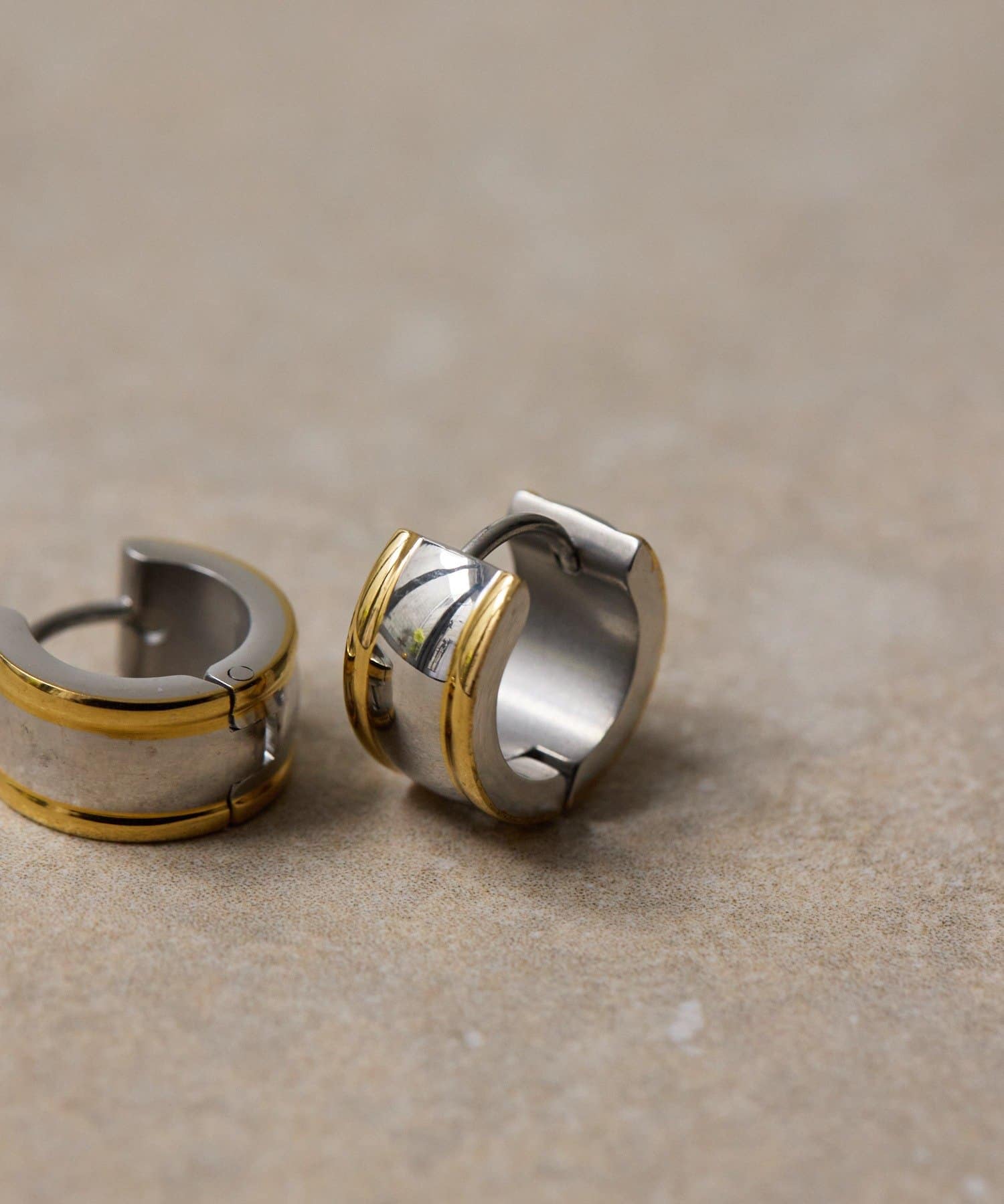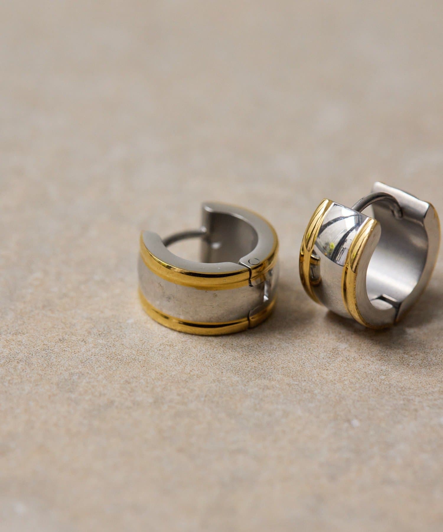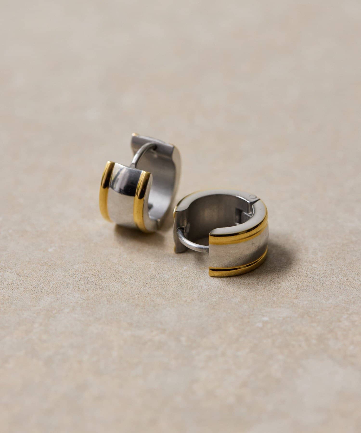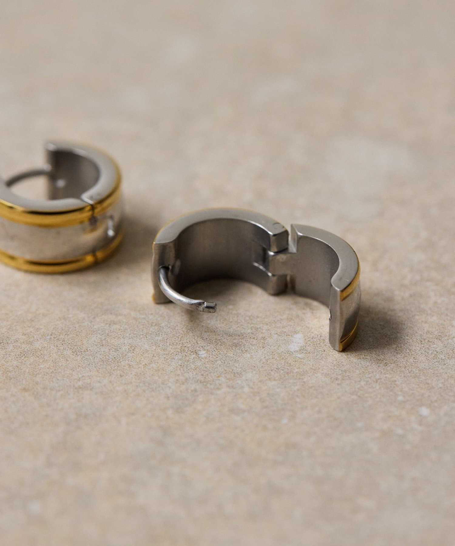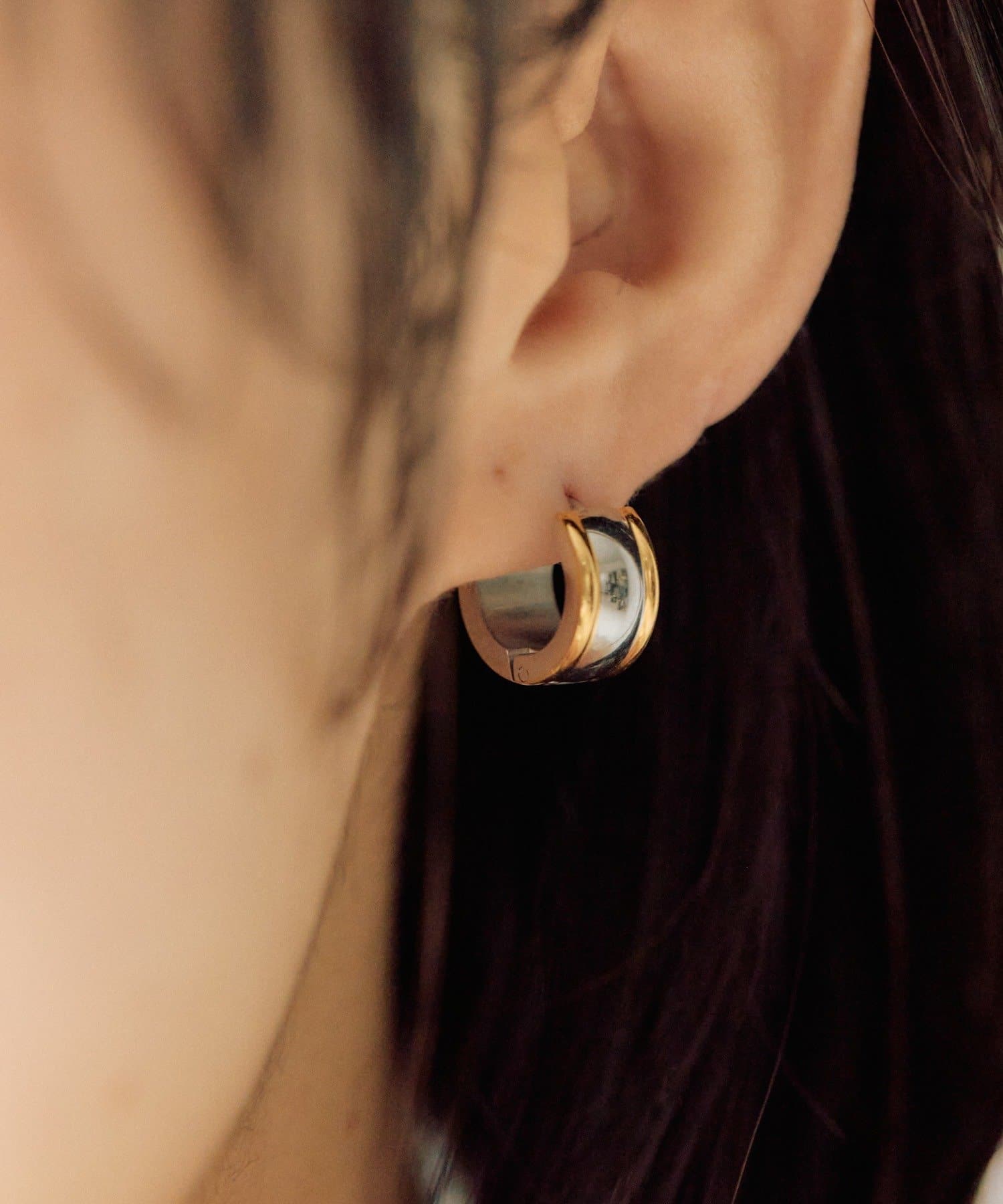 耳元にさりげない存在感をプラスする「バイカラーエッジラインピアス」。