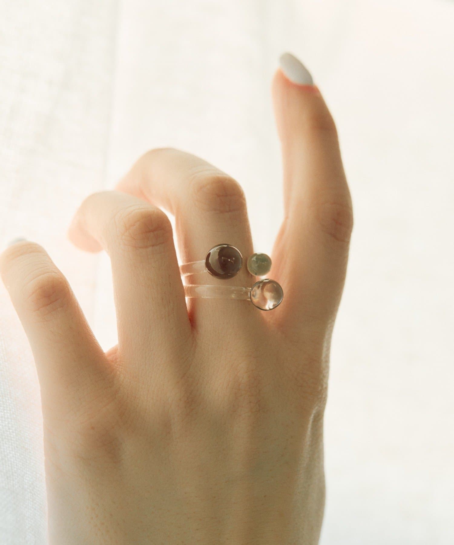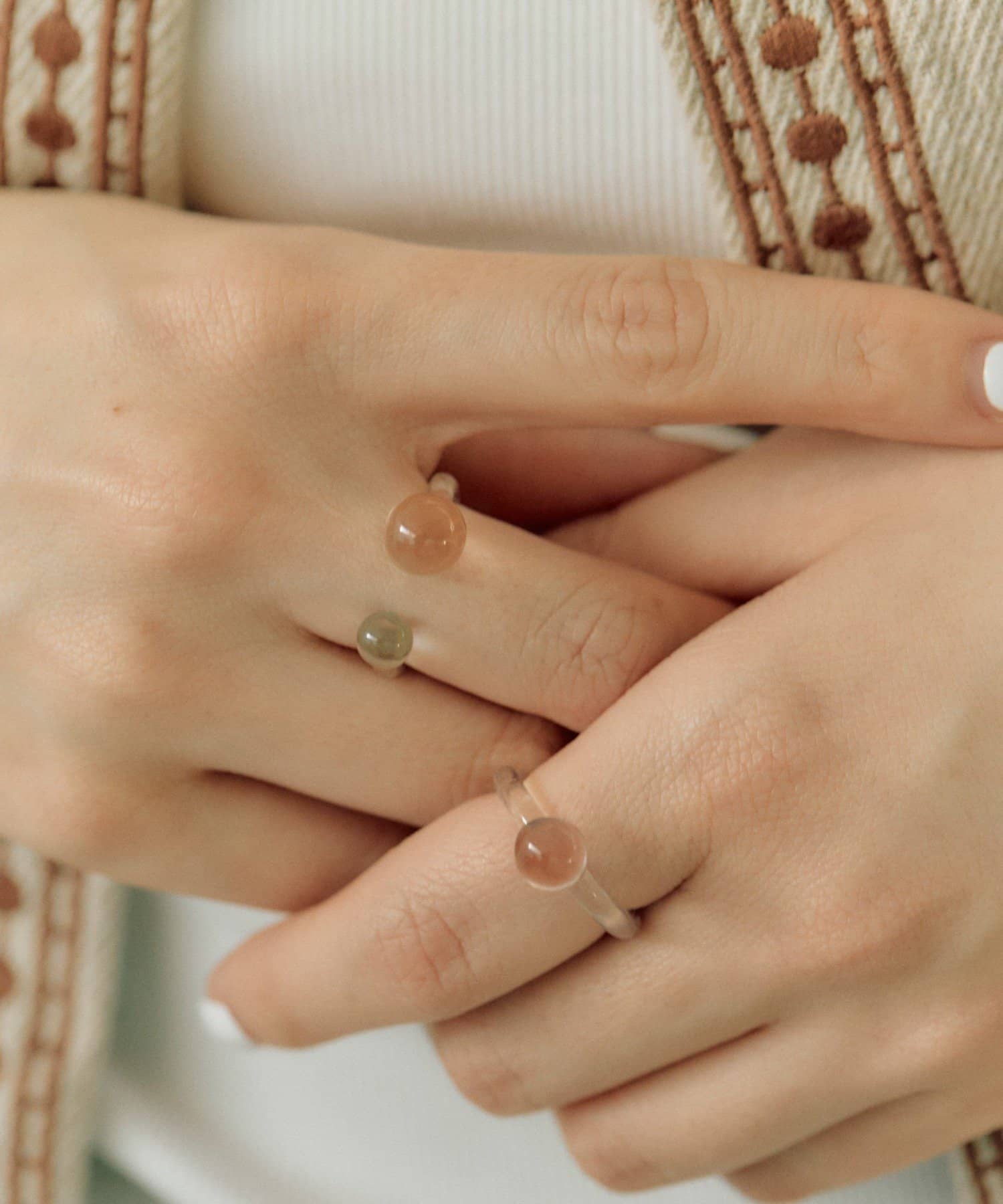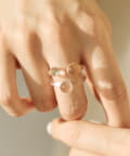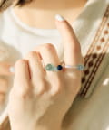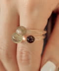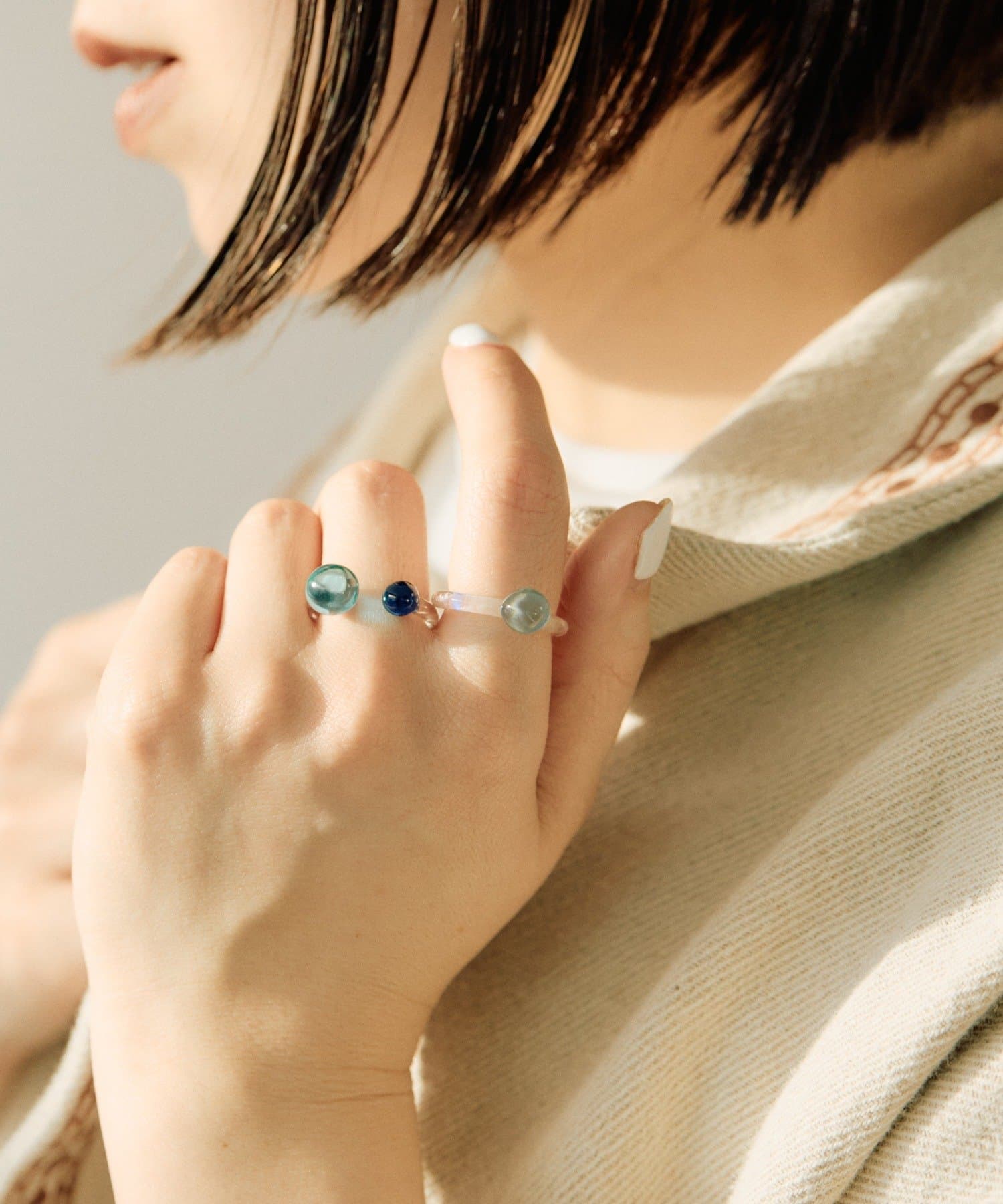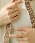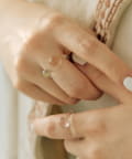 玉の数が異なる2本のリングは、重ねてボリュームを出したり、別々の指につけたりと、アレンジは自由自在。