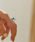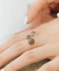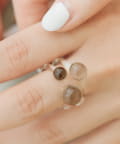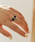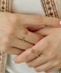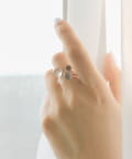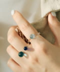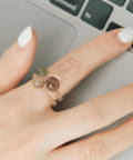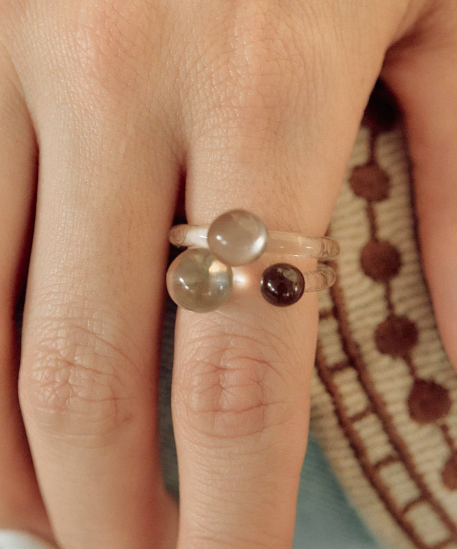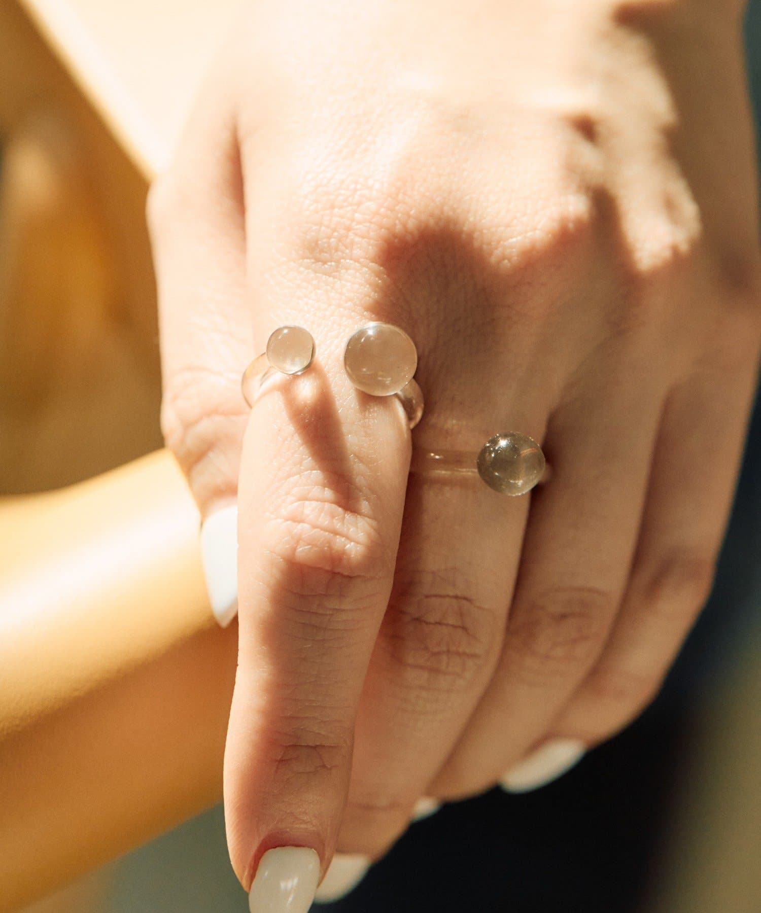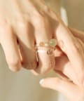 玉の数が異なる2本のリングは、重ねてボリュームを出したり、別々の指につけたりと、アレンジは自由自在。