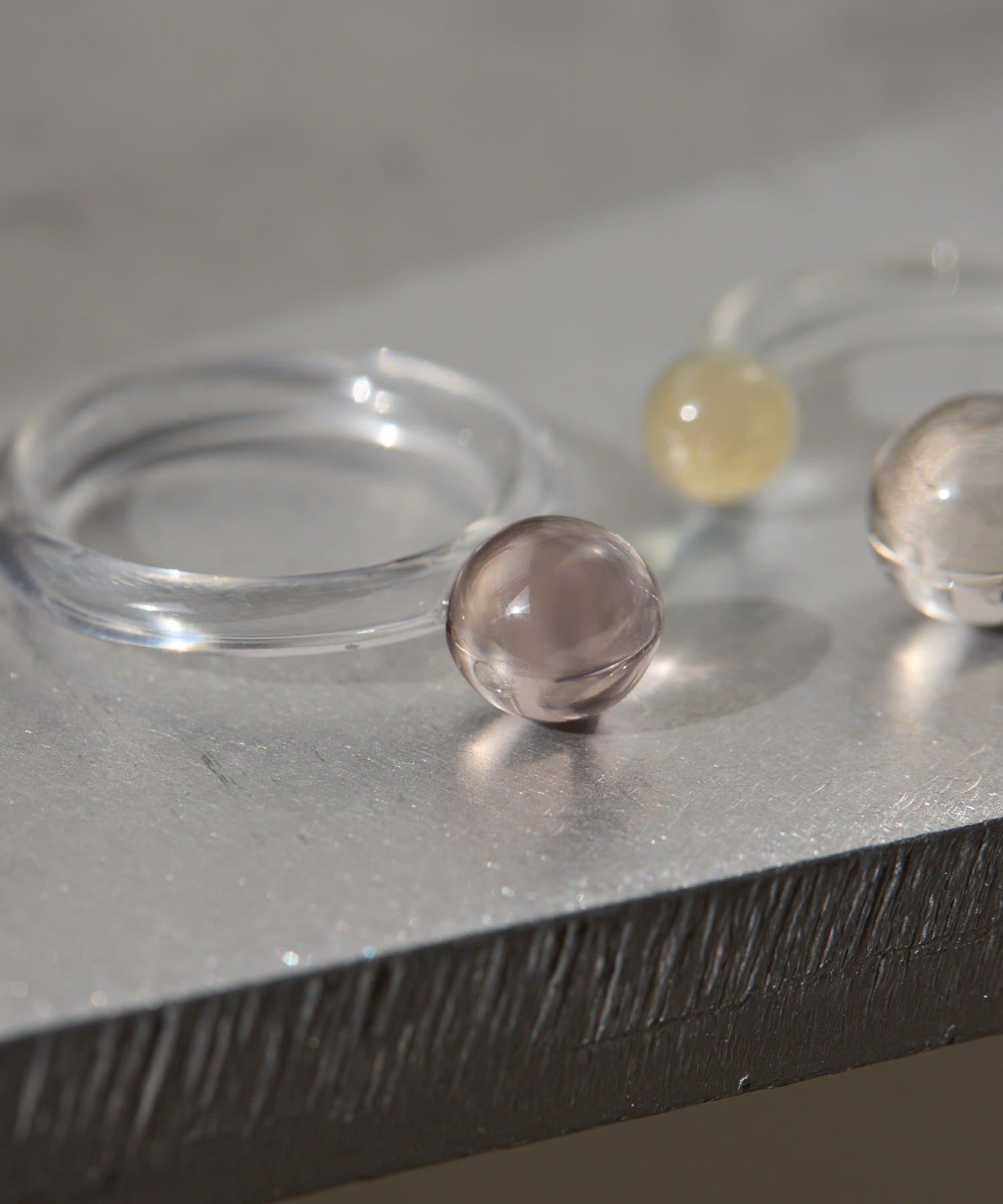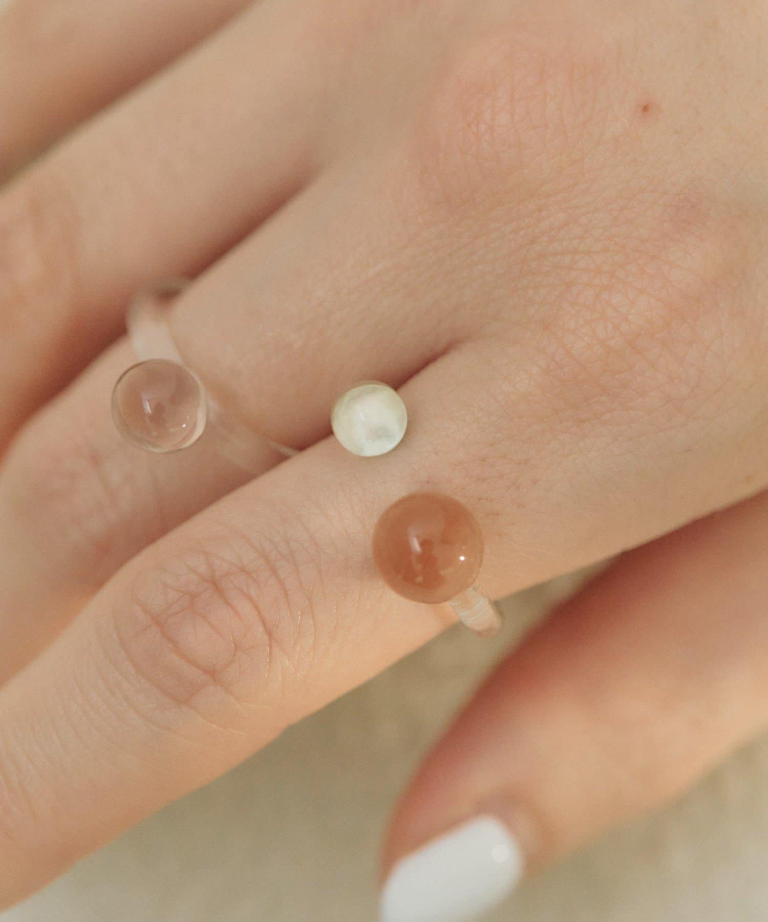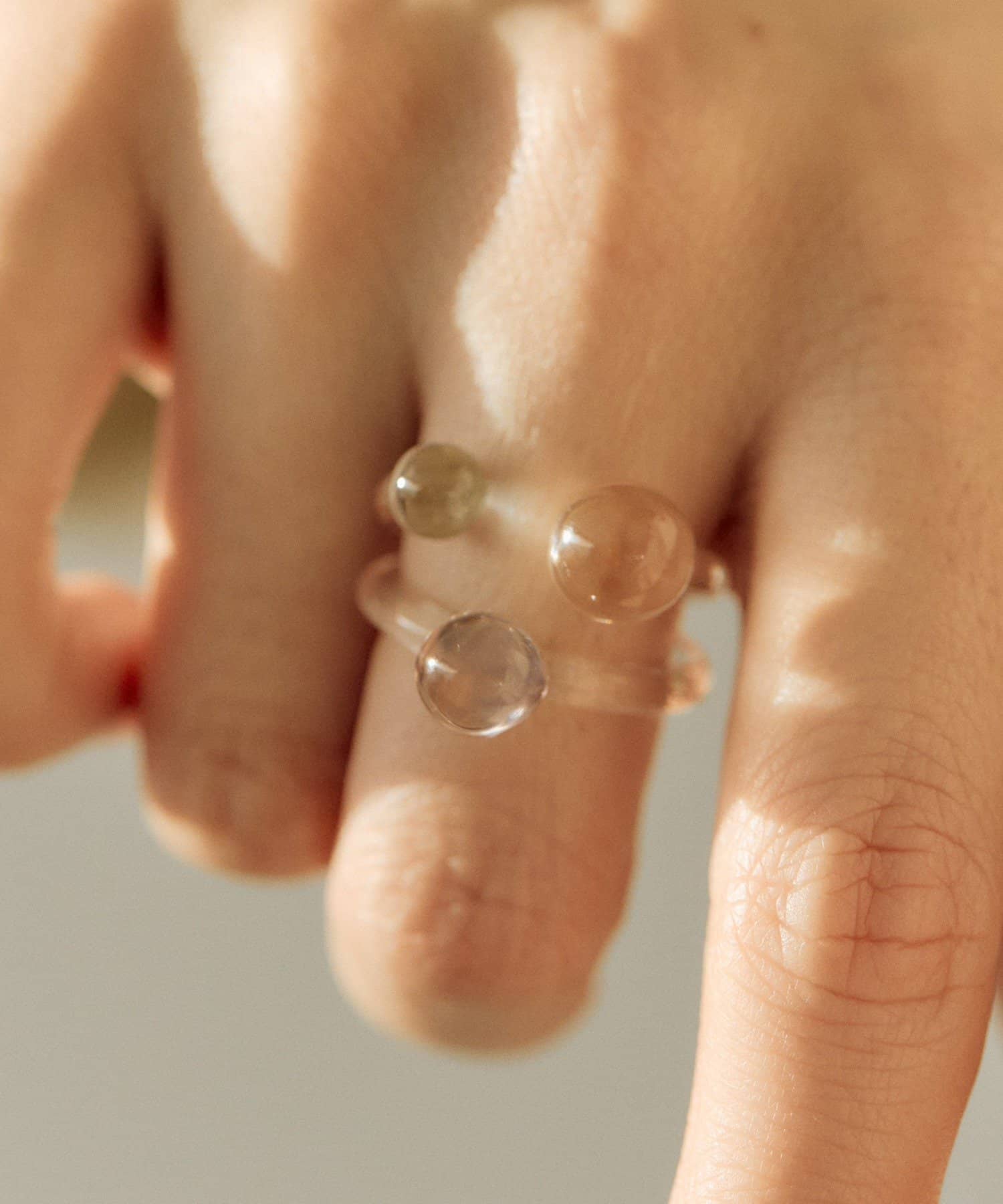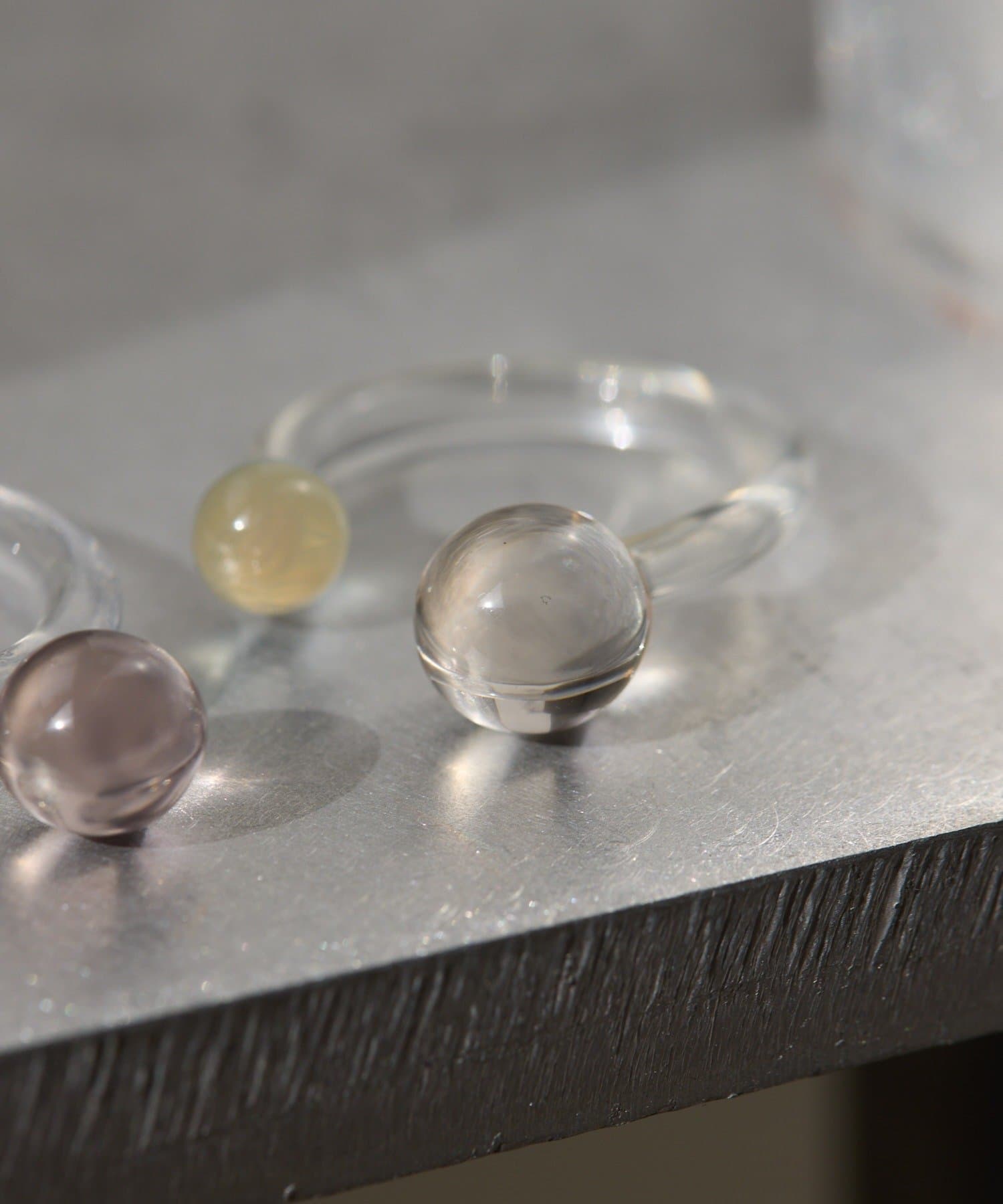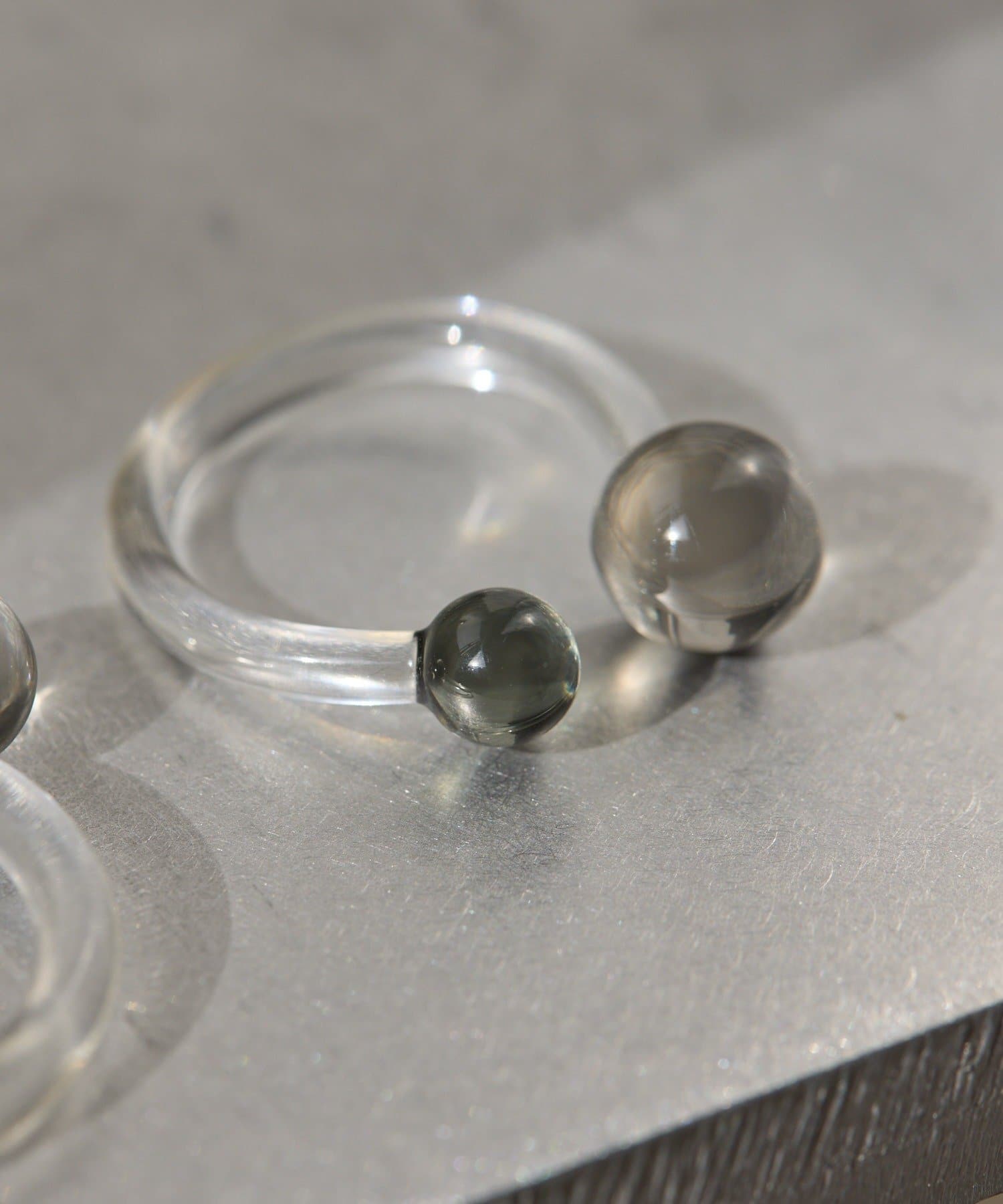 透明感あふれる樹脂が涼しげな、クリアボールセットリング。