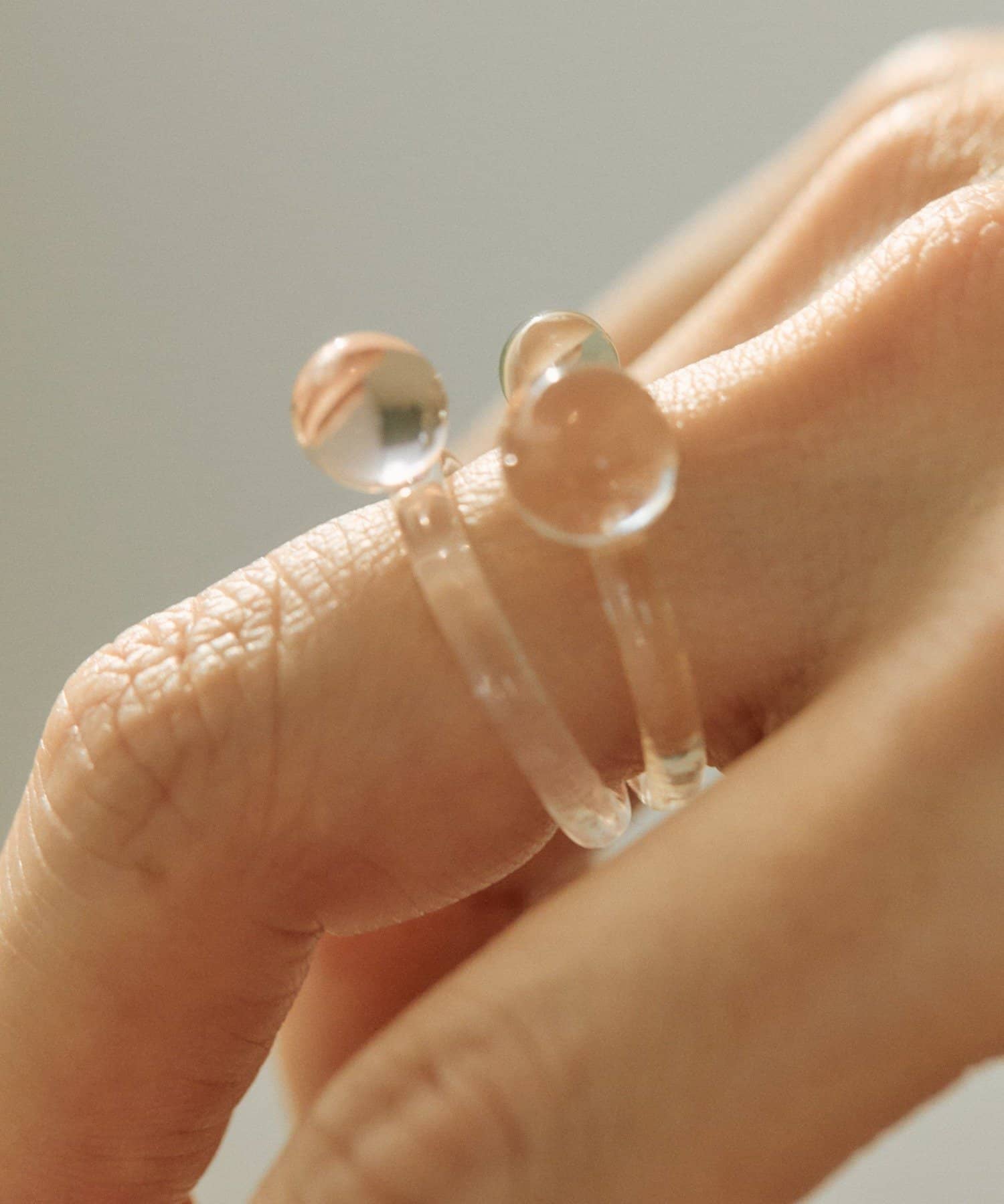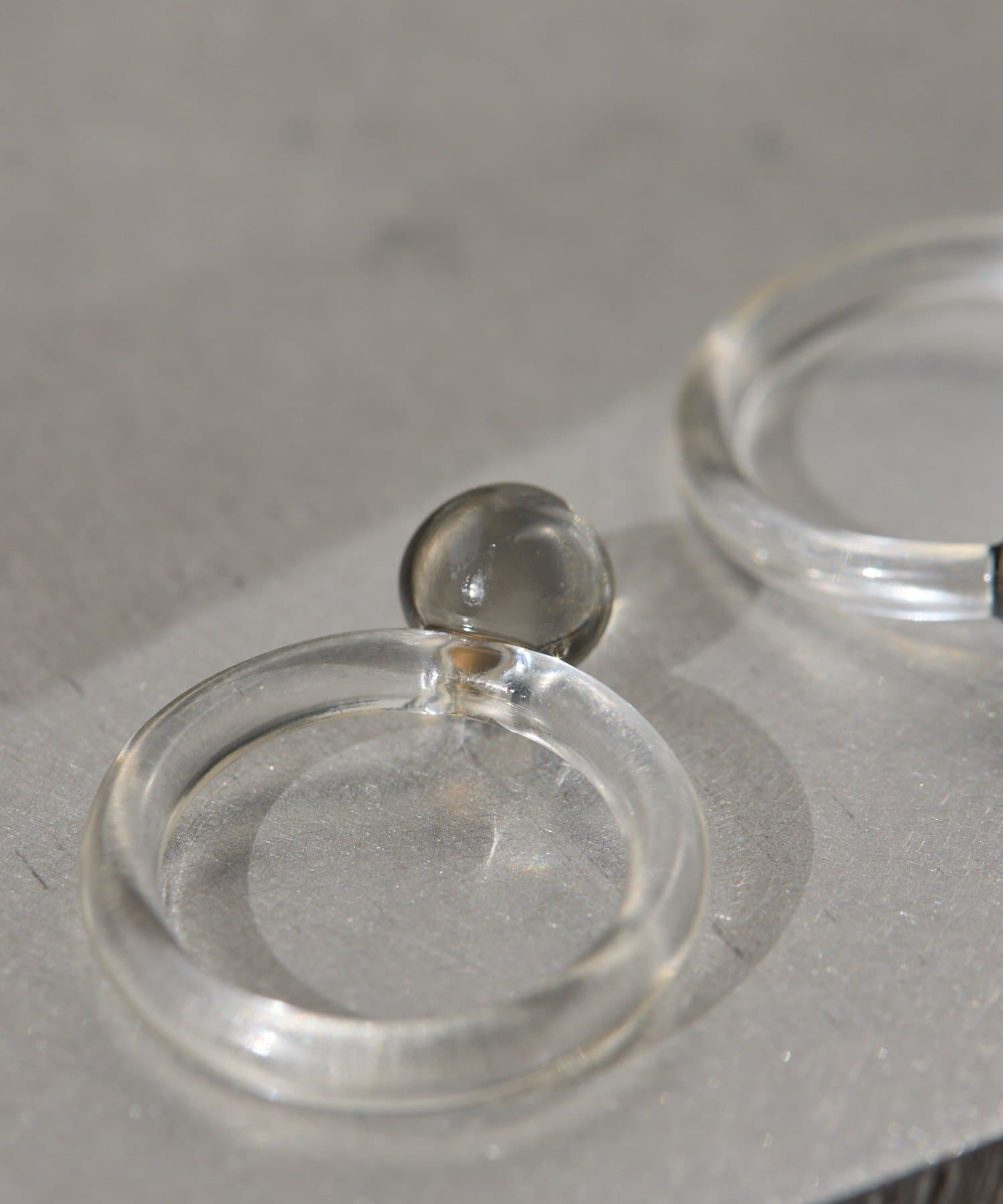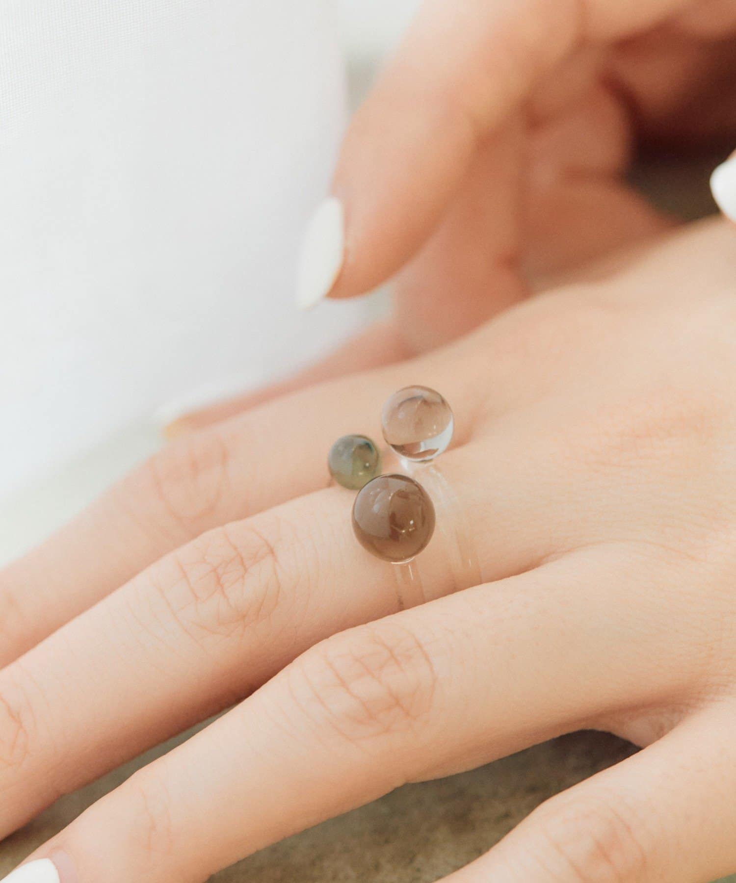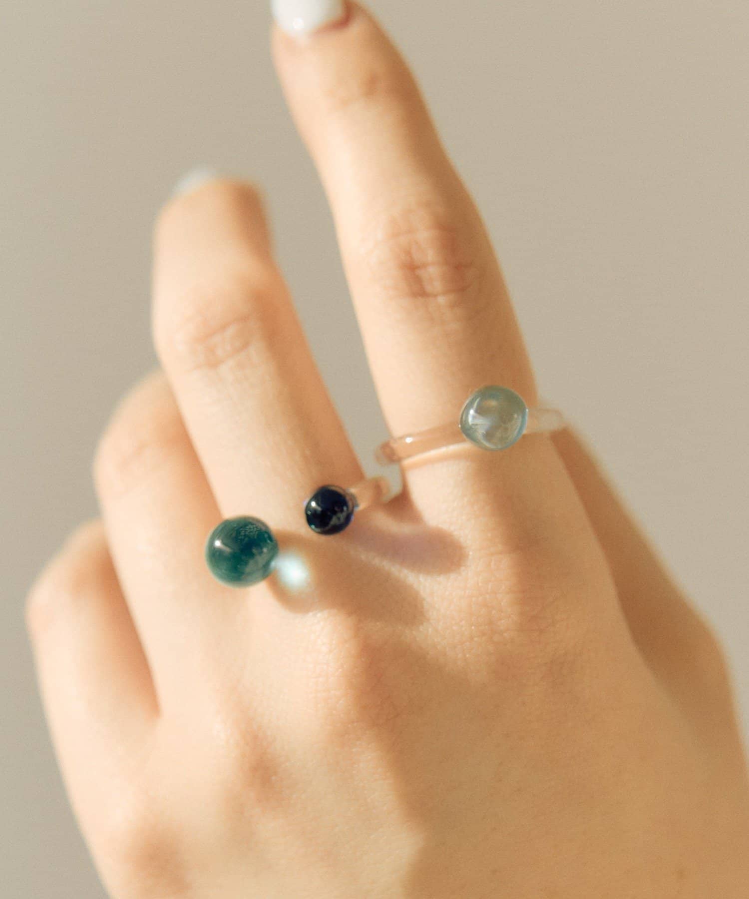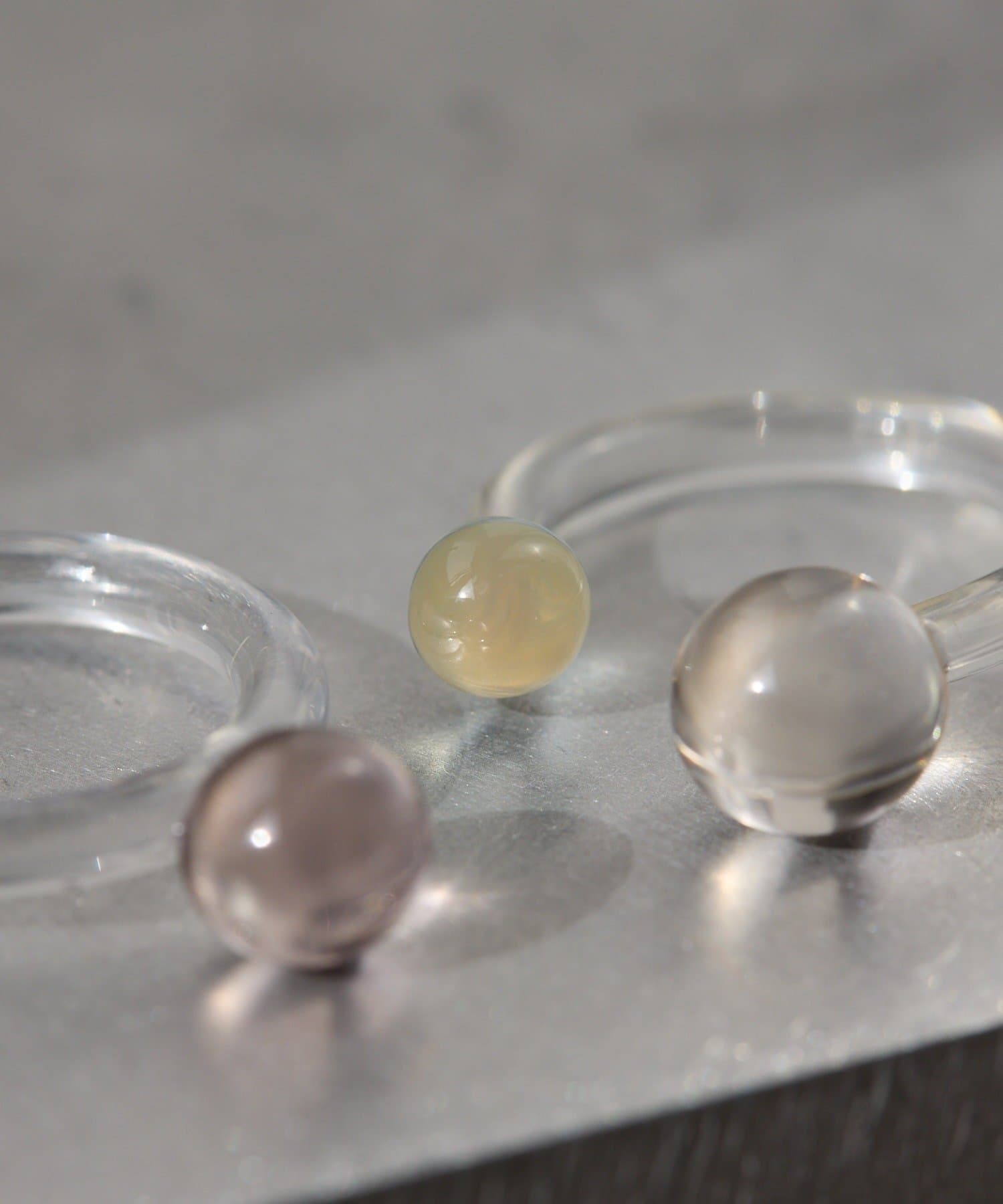 透明感あふれる樹脂が涼しげな、クリアボールセットリング。