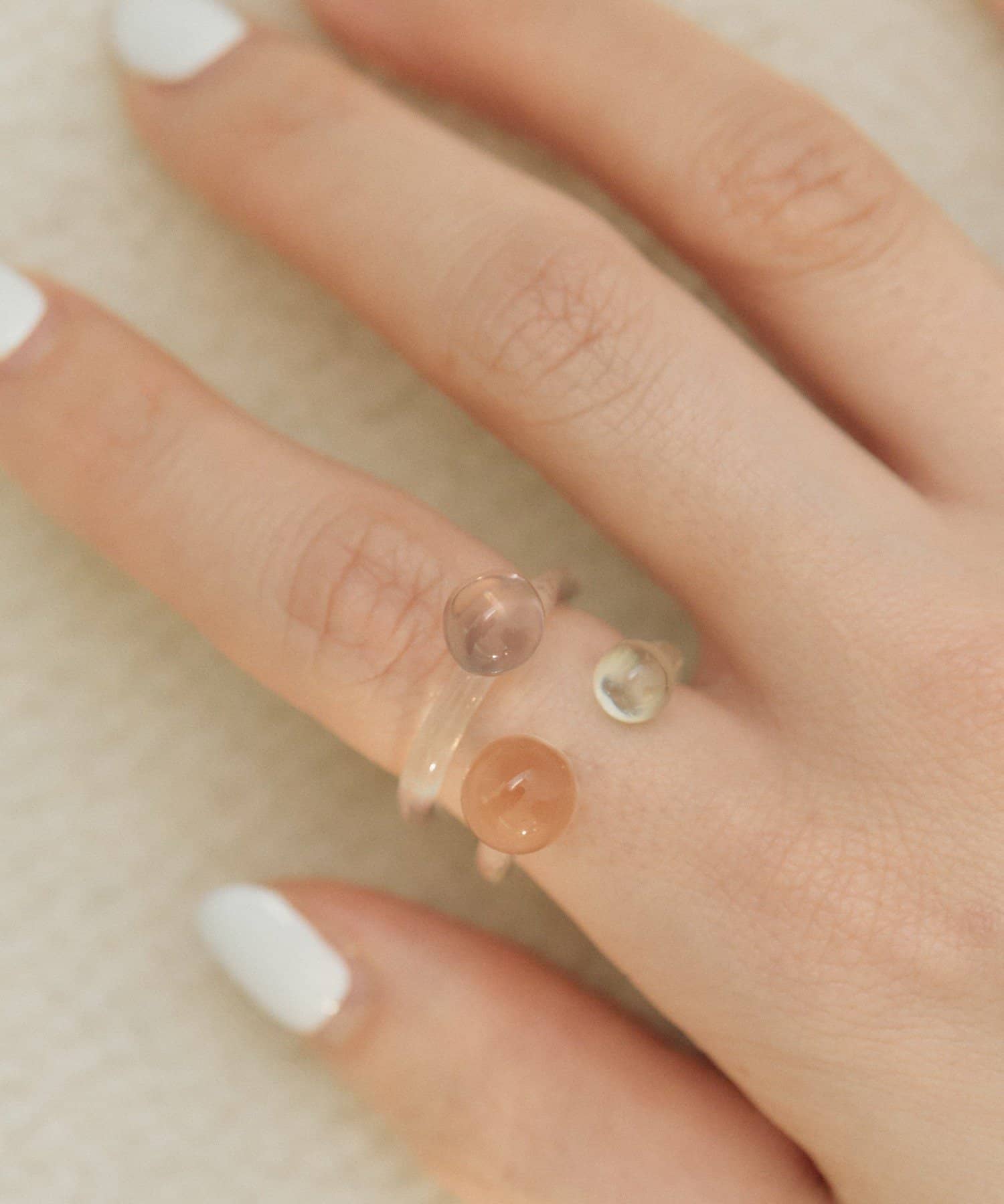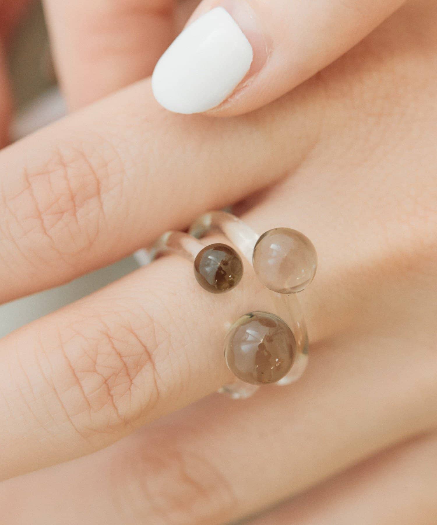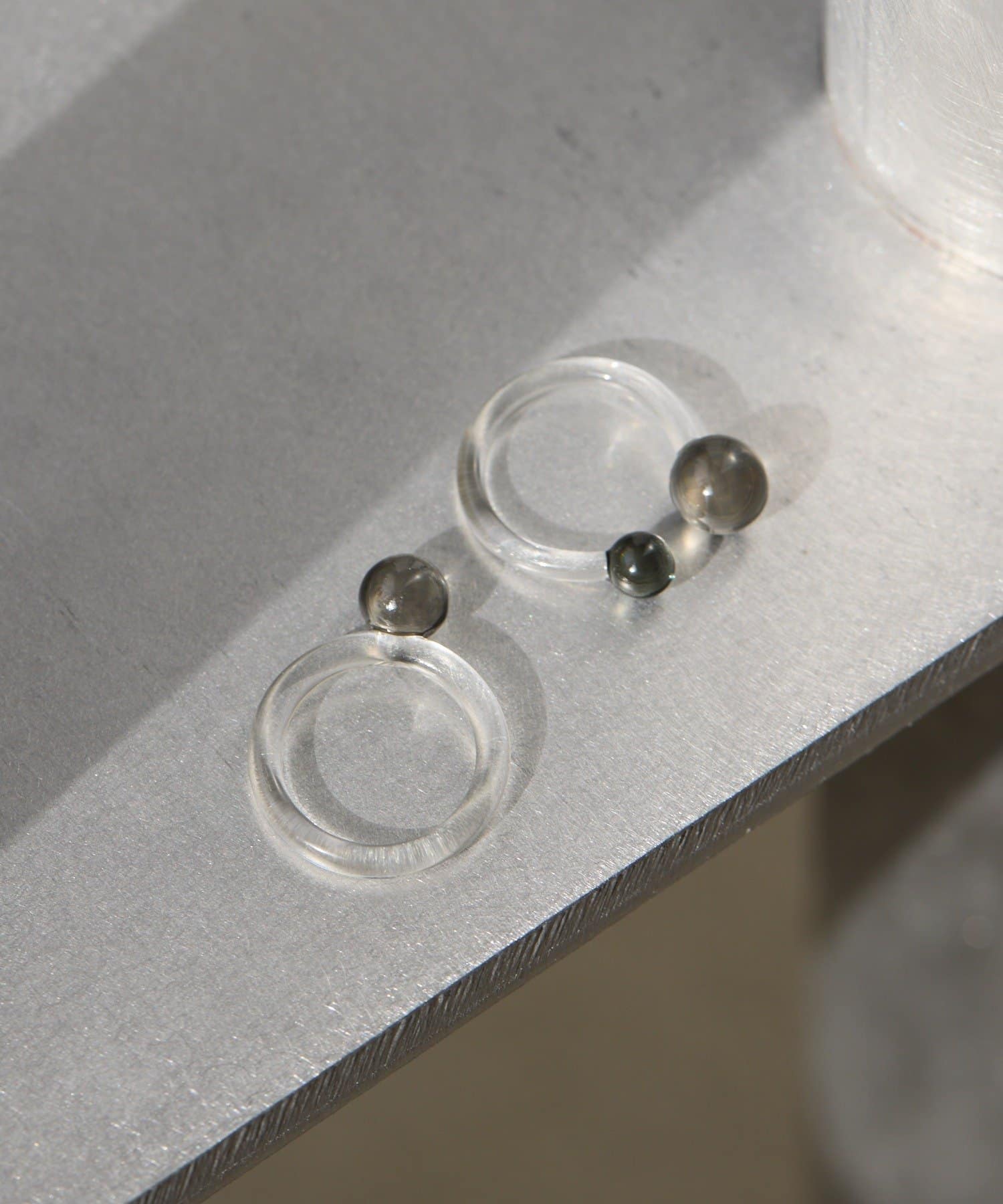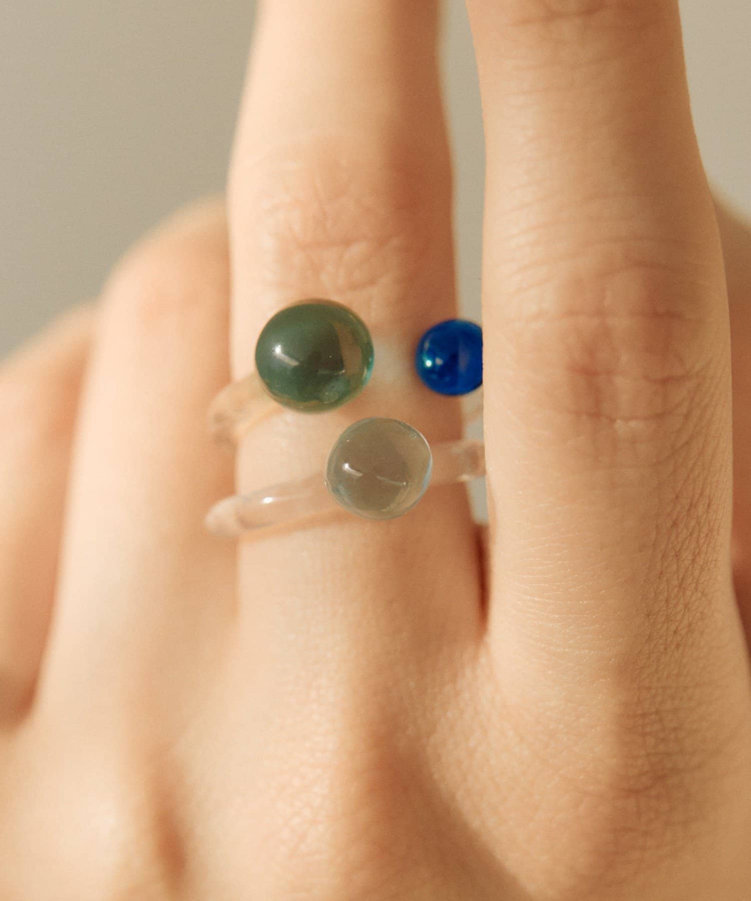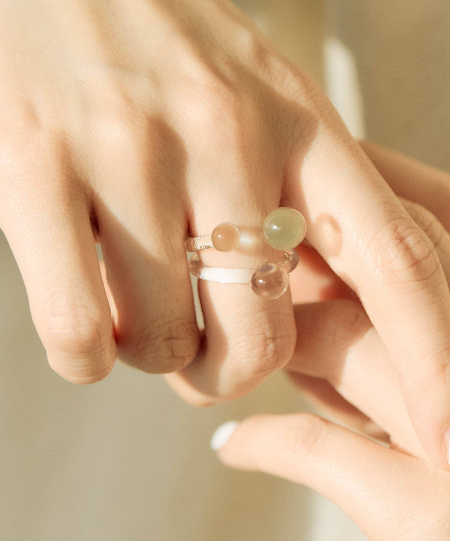 透明感あふれる樹脂が涼しげな、クリアボールセットリング。