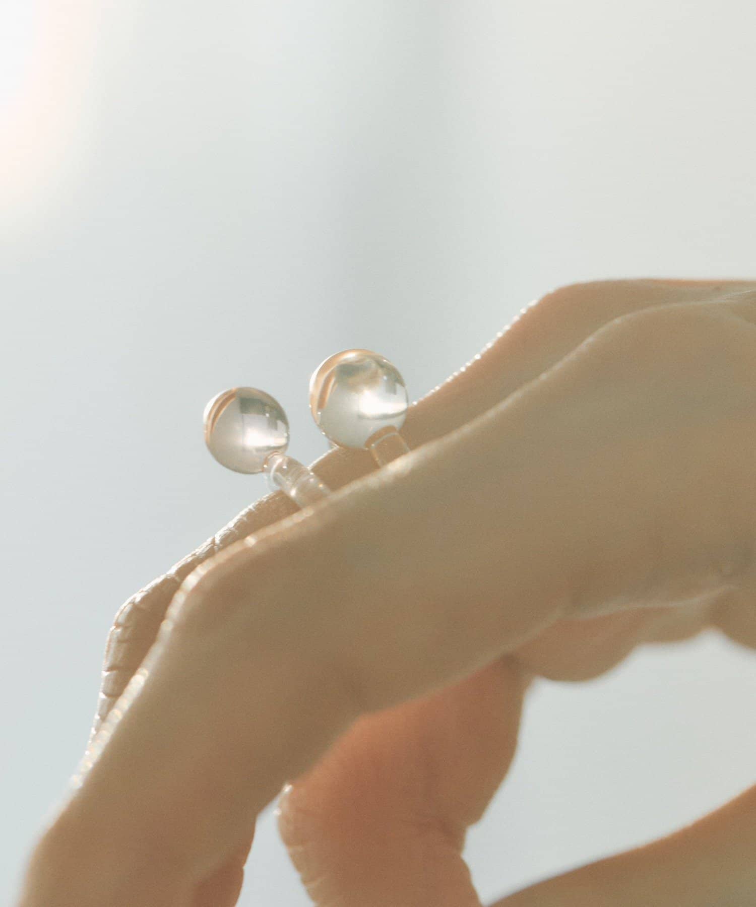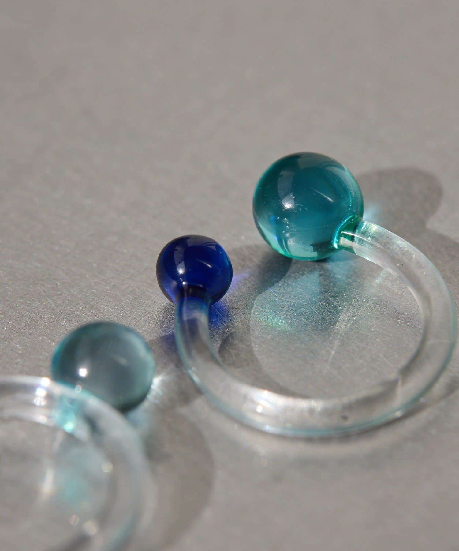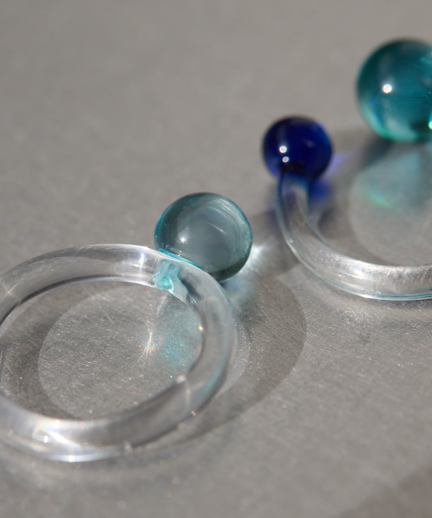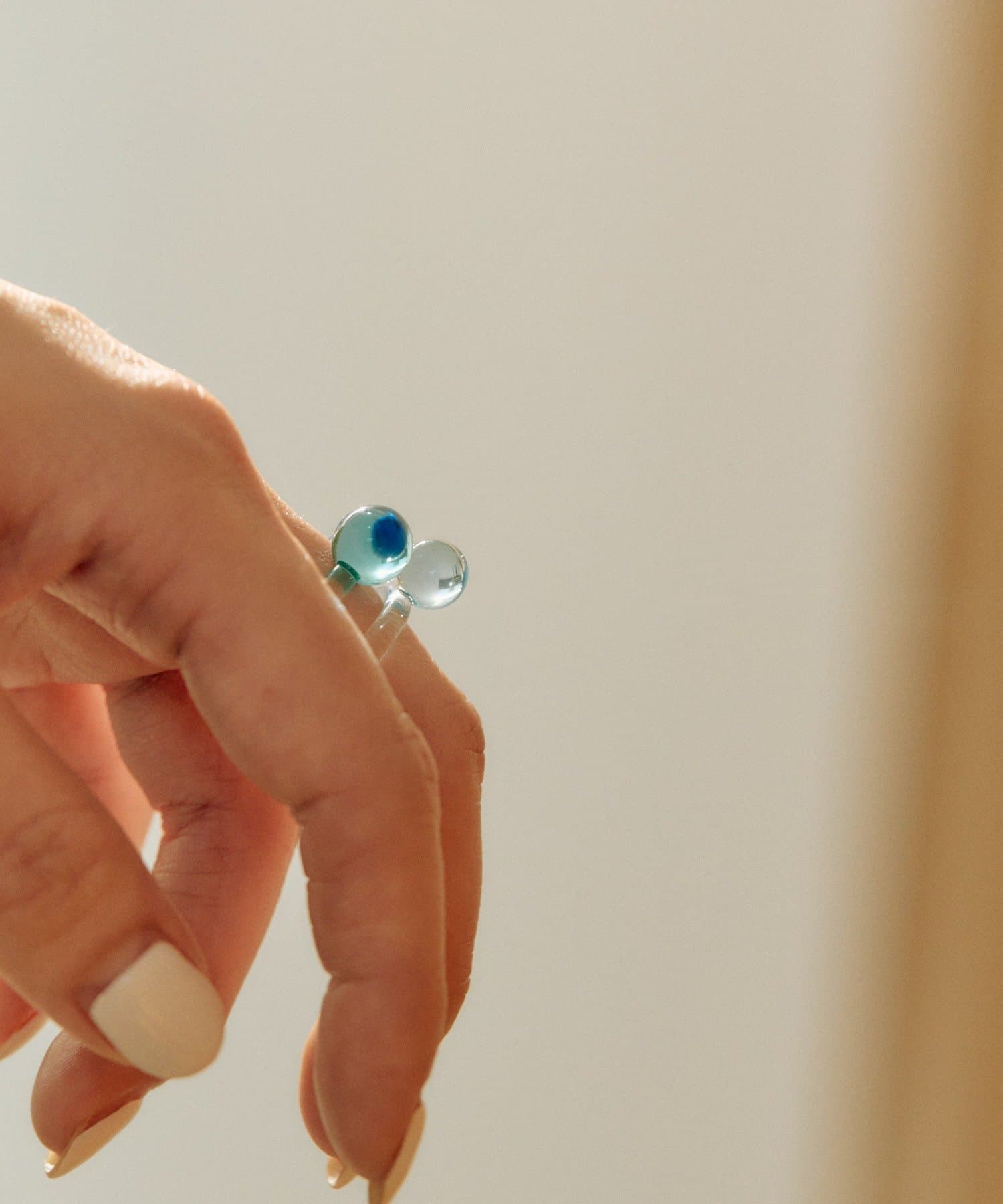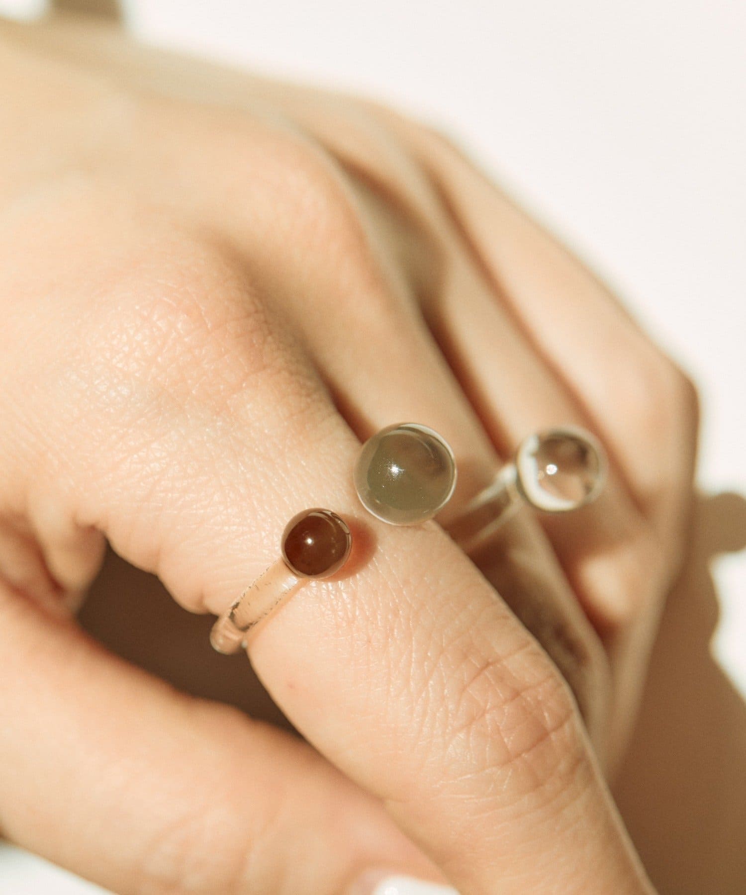 透明感あふれる樹脂が涼しげな、クリアボールセットリング。