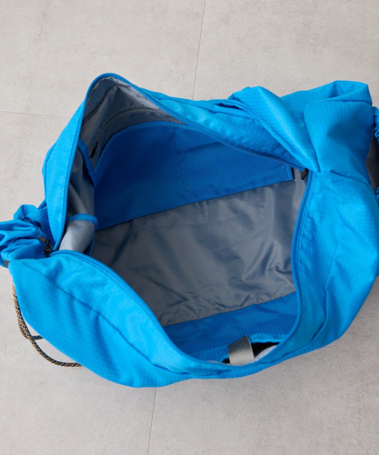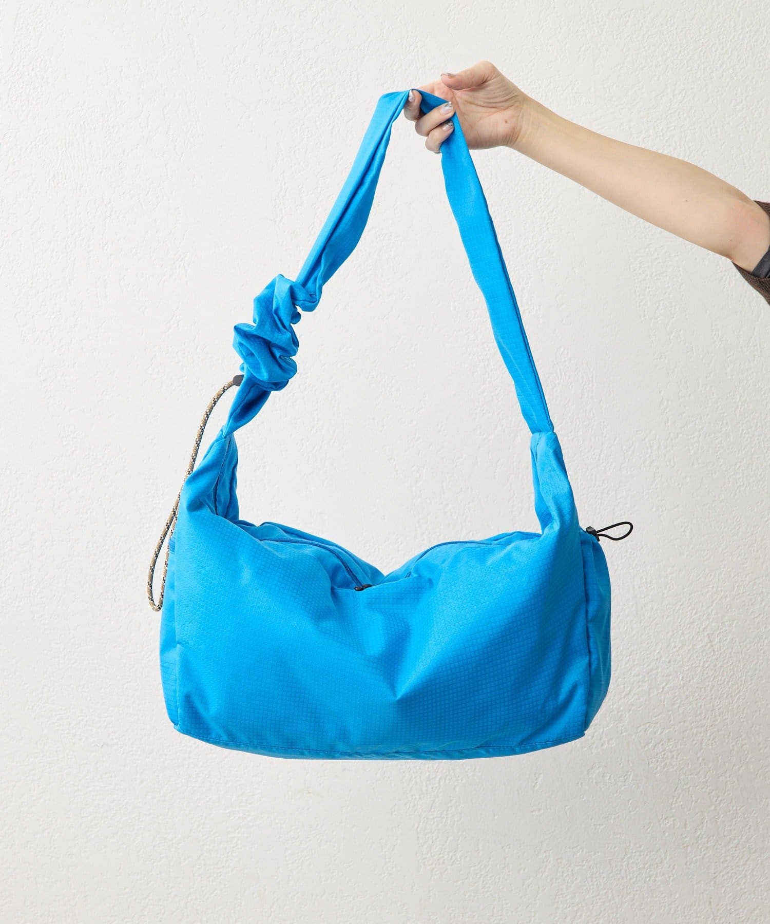 • ブルー/高さ27cm、幅59cm、マチ16cm、ショルダー全長70~99cm、重さ400g