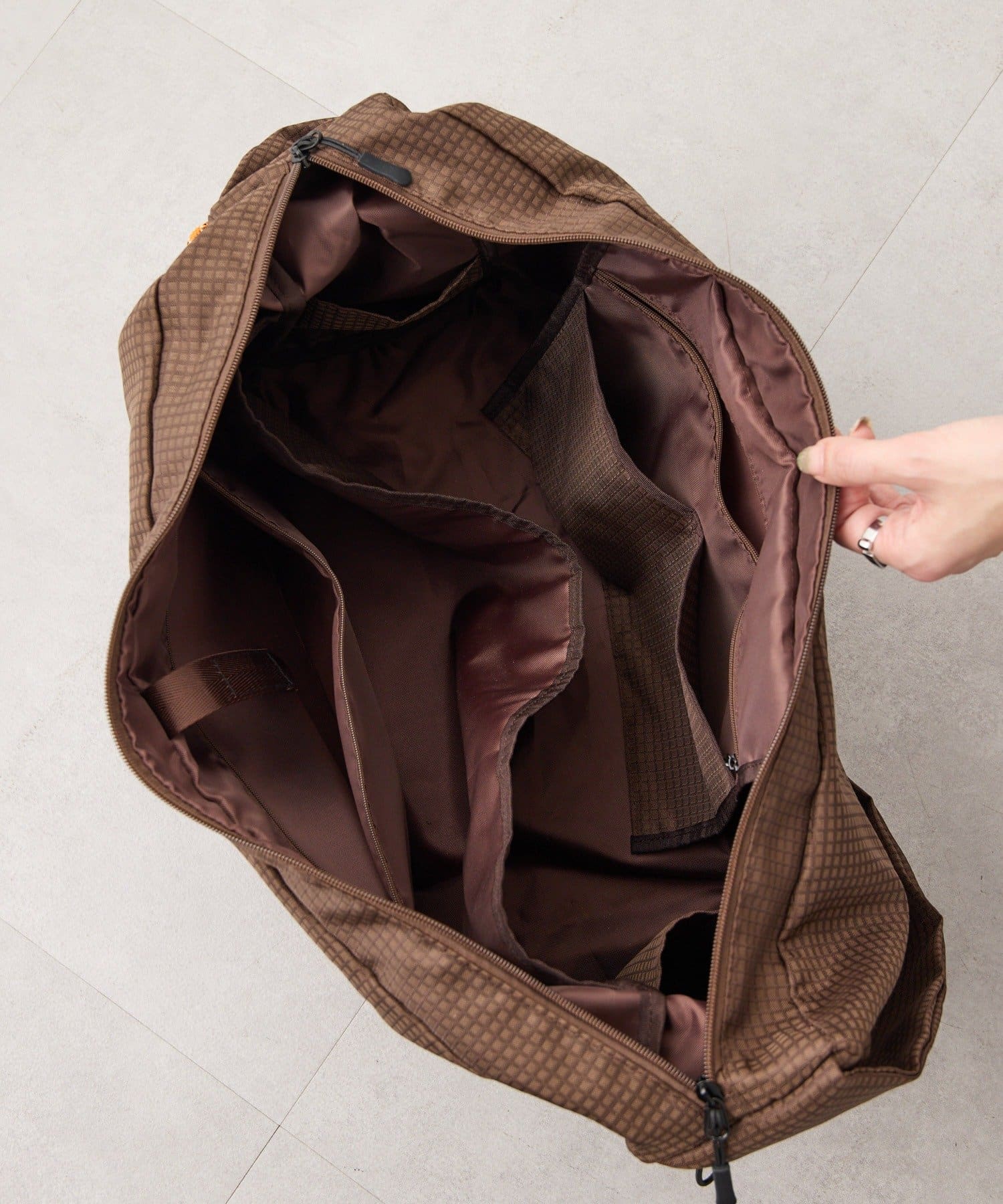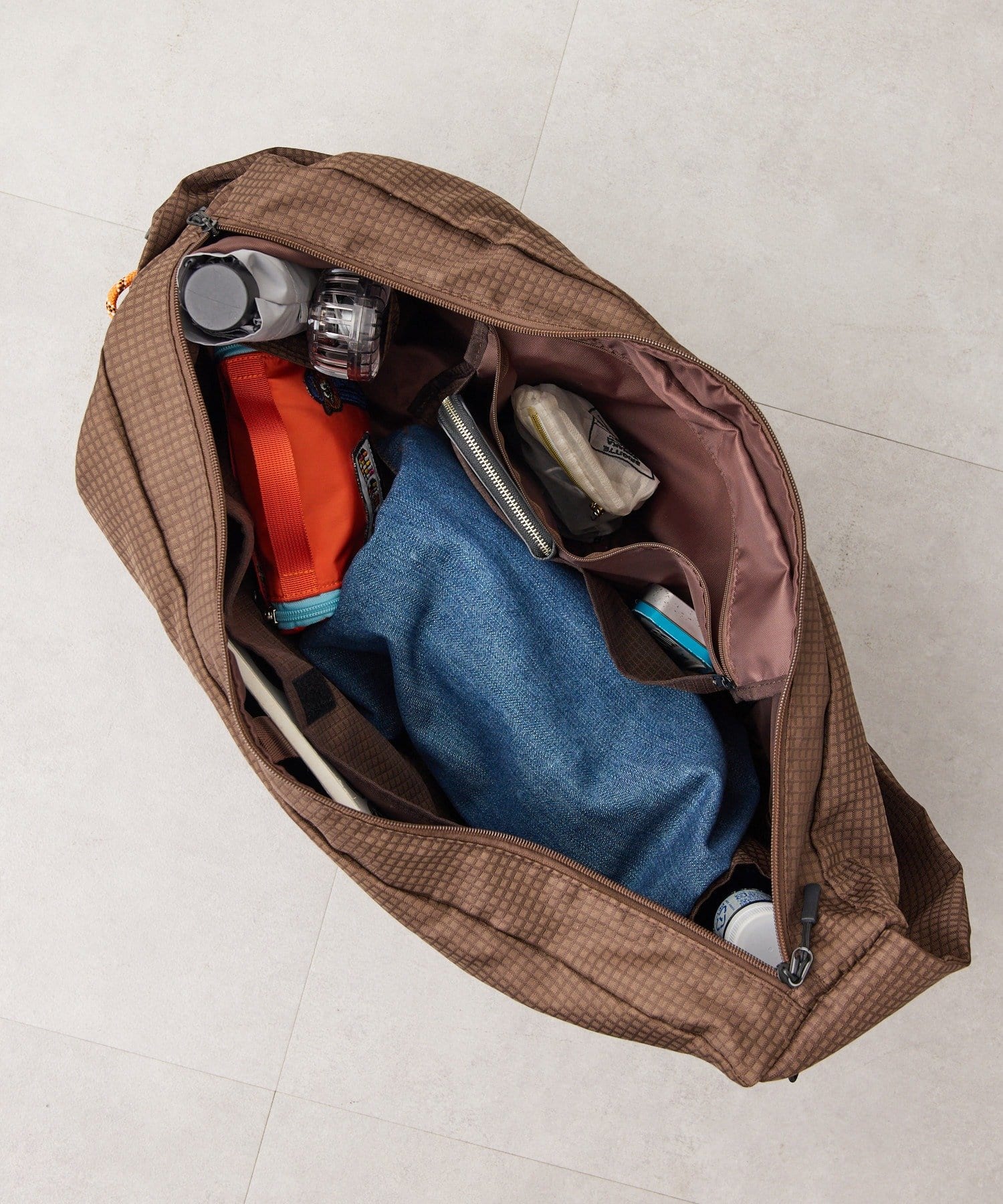 • ブラウン/高さ27cm、幅59cm、マチ16cm、ショルダー全長70~99cm、重さ400g