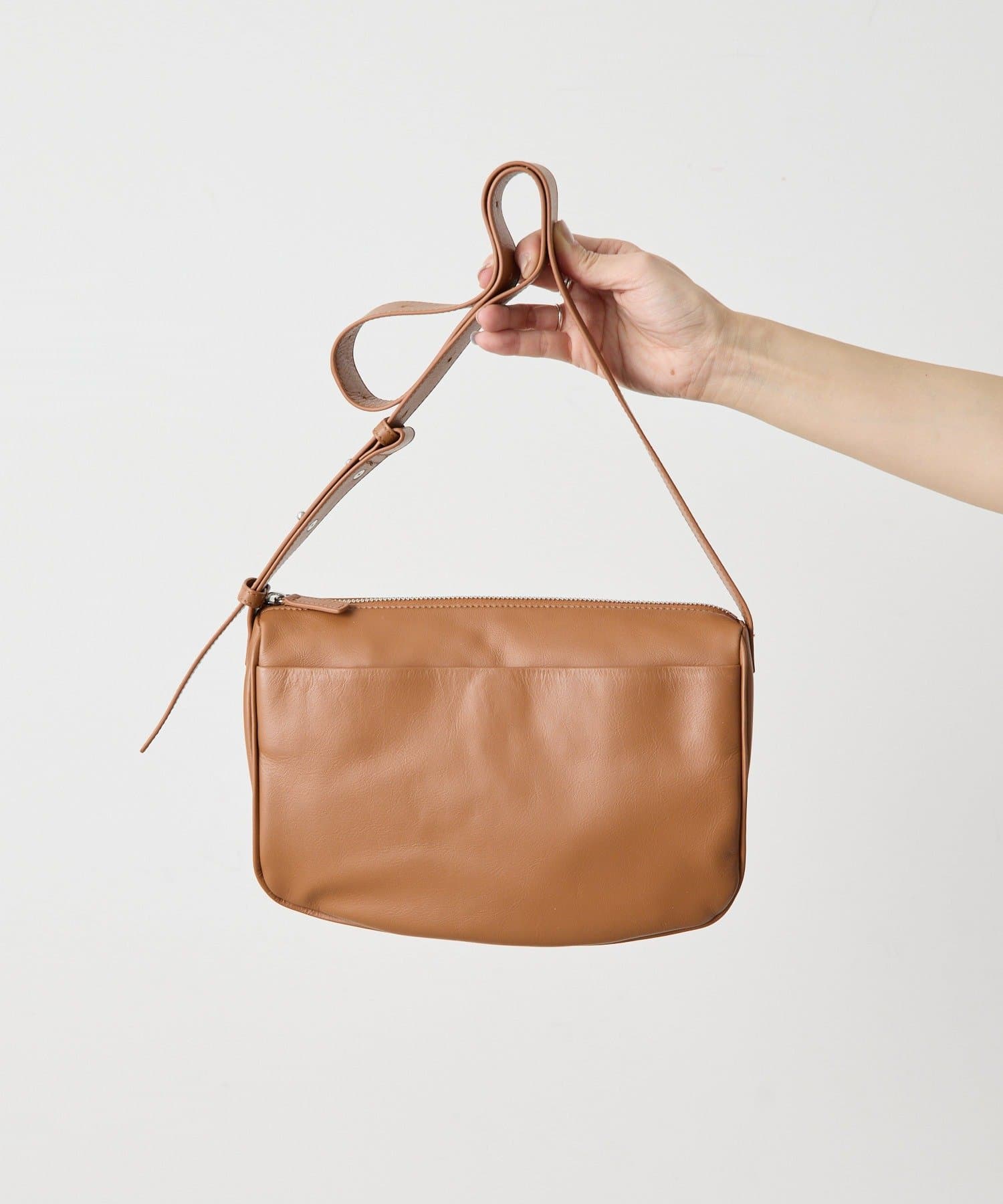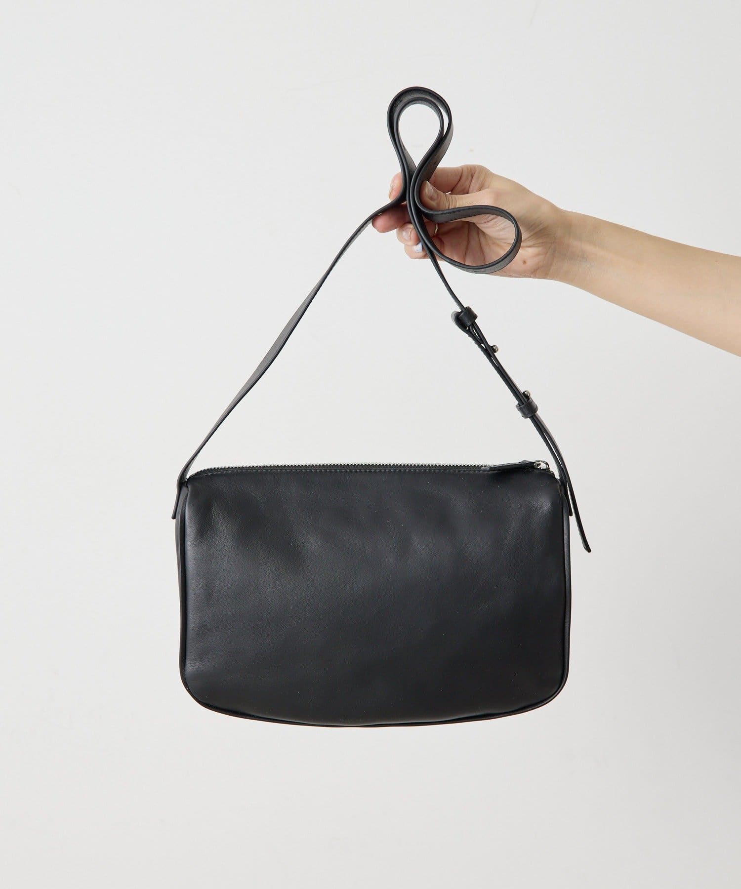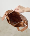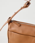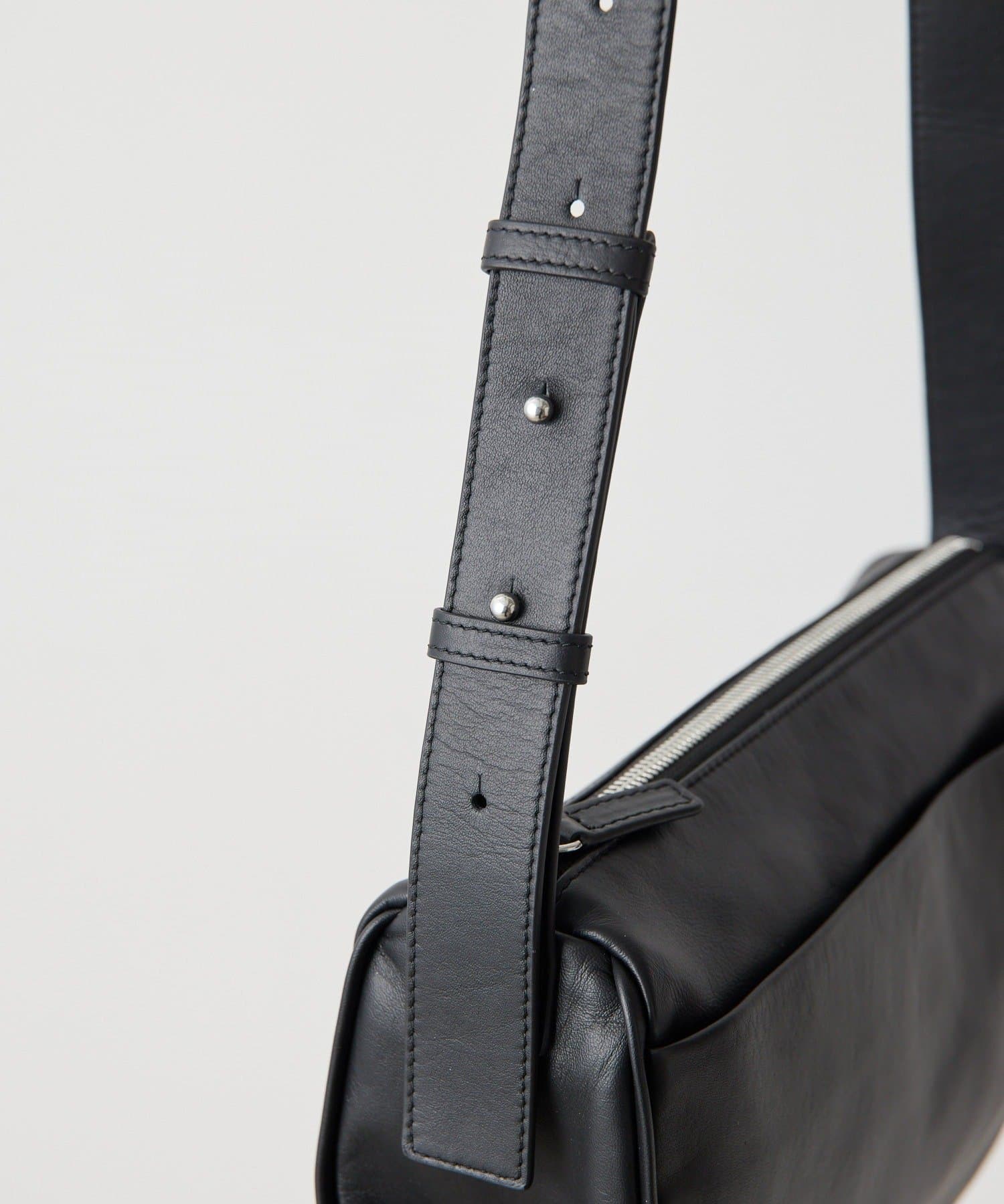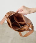 シンプルなデザインのレザーバッグで、
