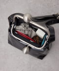 スタイリッシュなデザインとユニークな形状の斜め掛けスタイルは