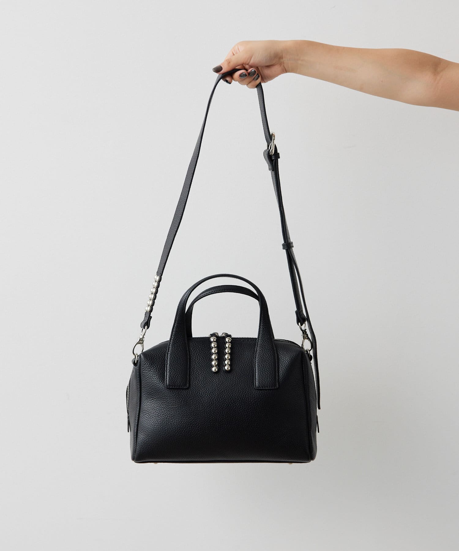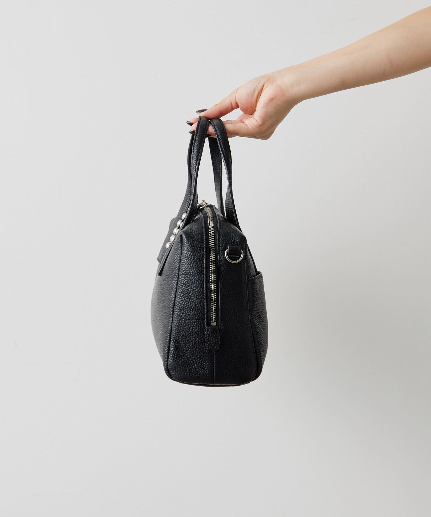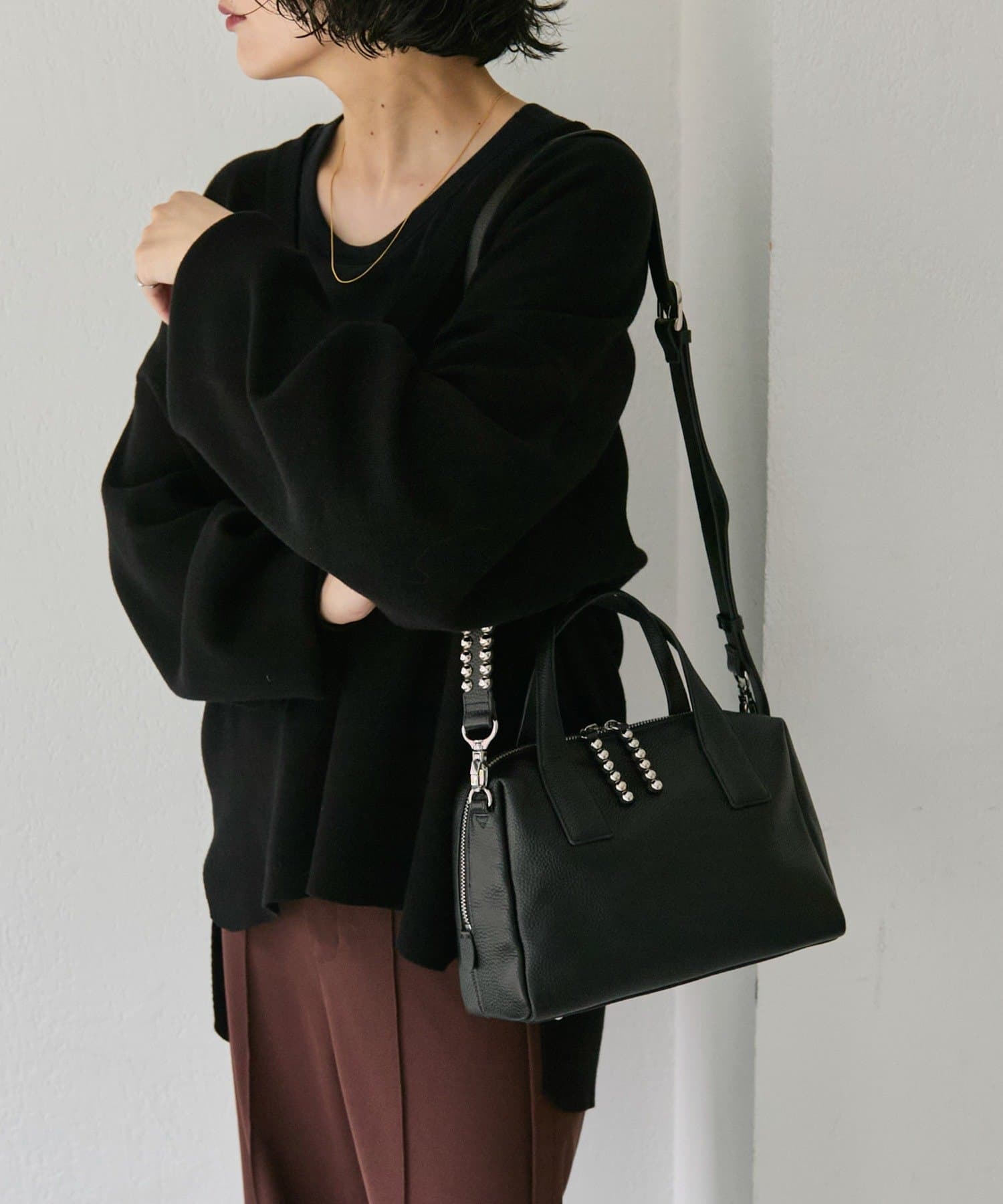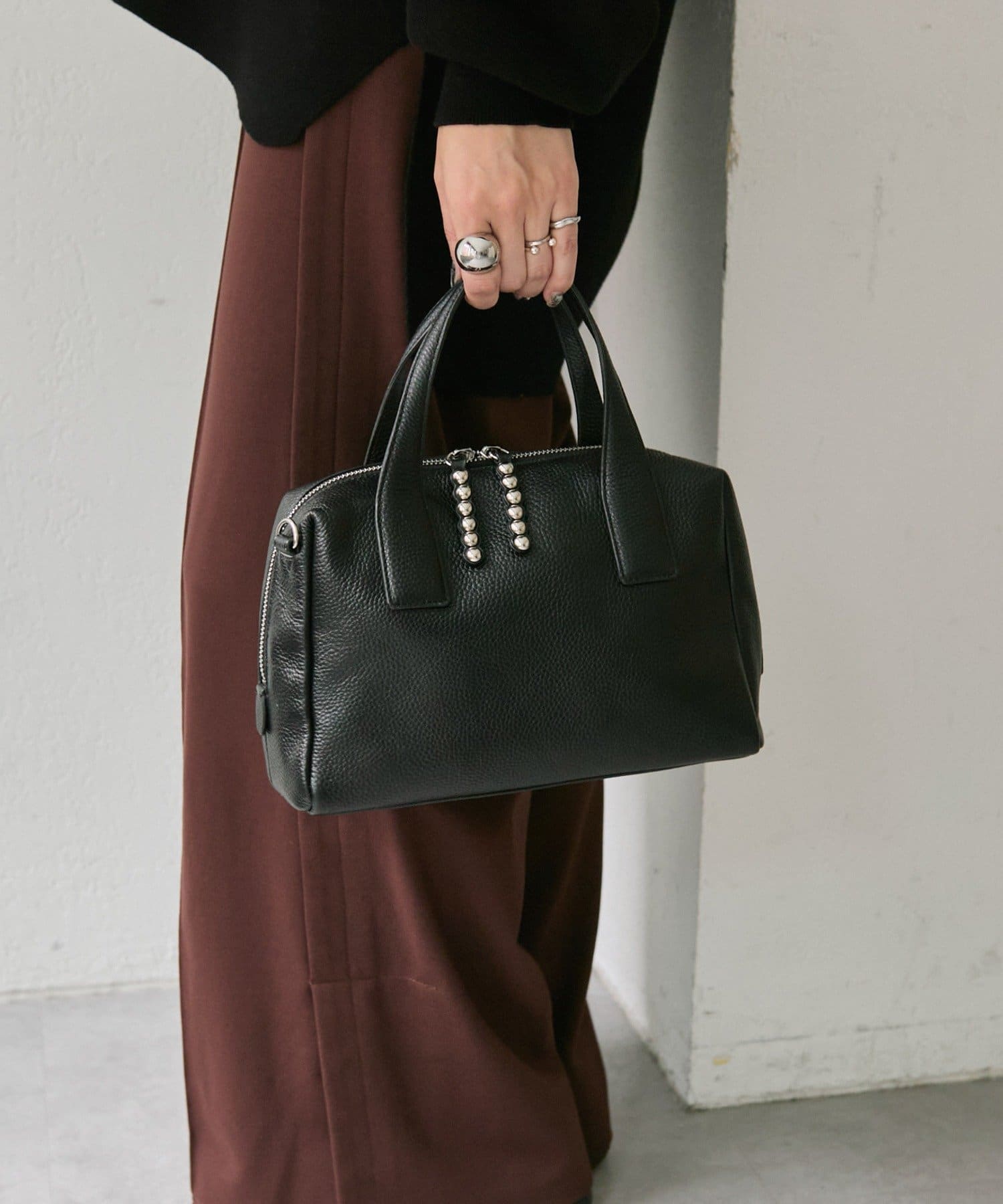 SNSでも注目!シルバースタッズが映えるレザーボストンバッグ。