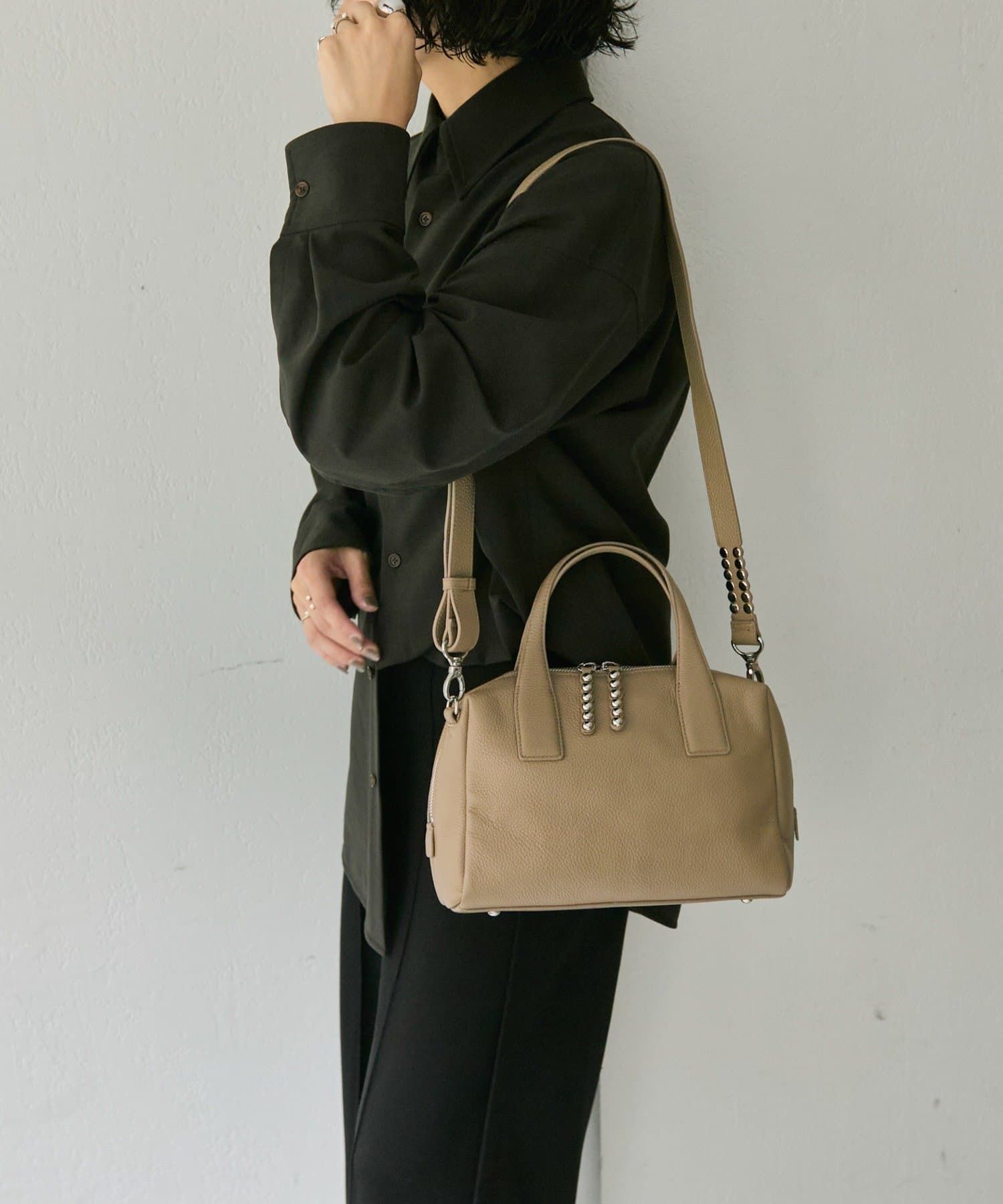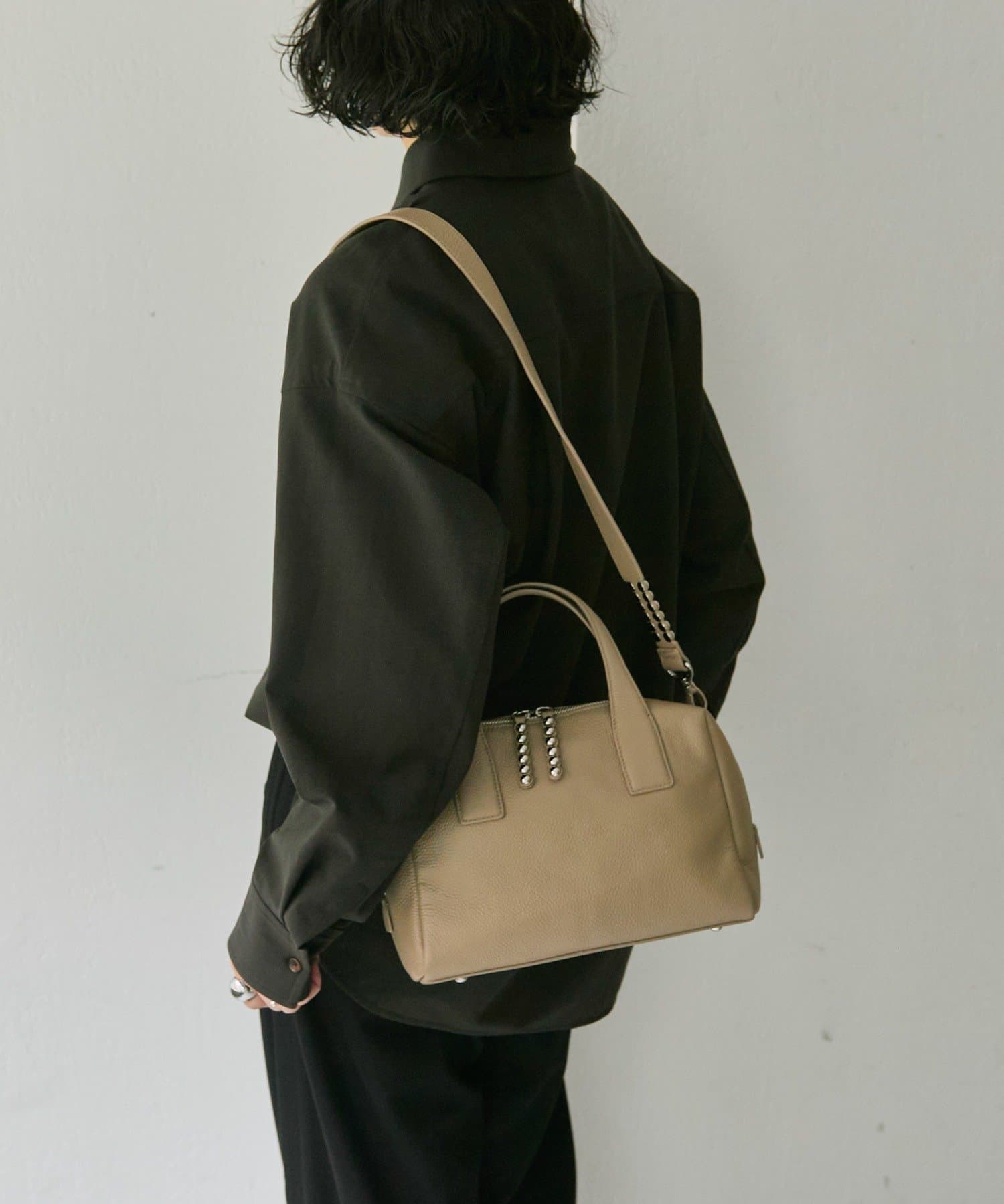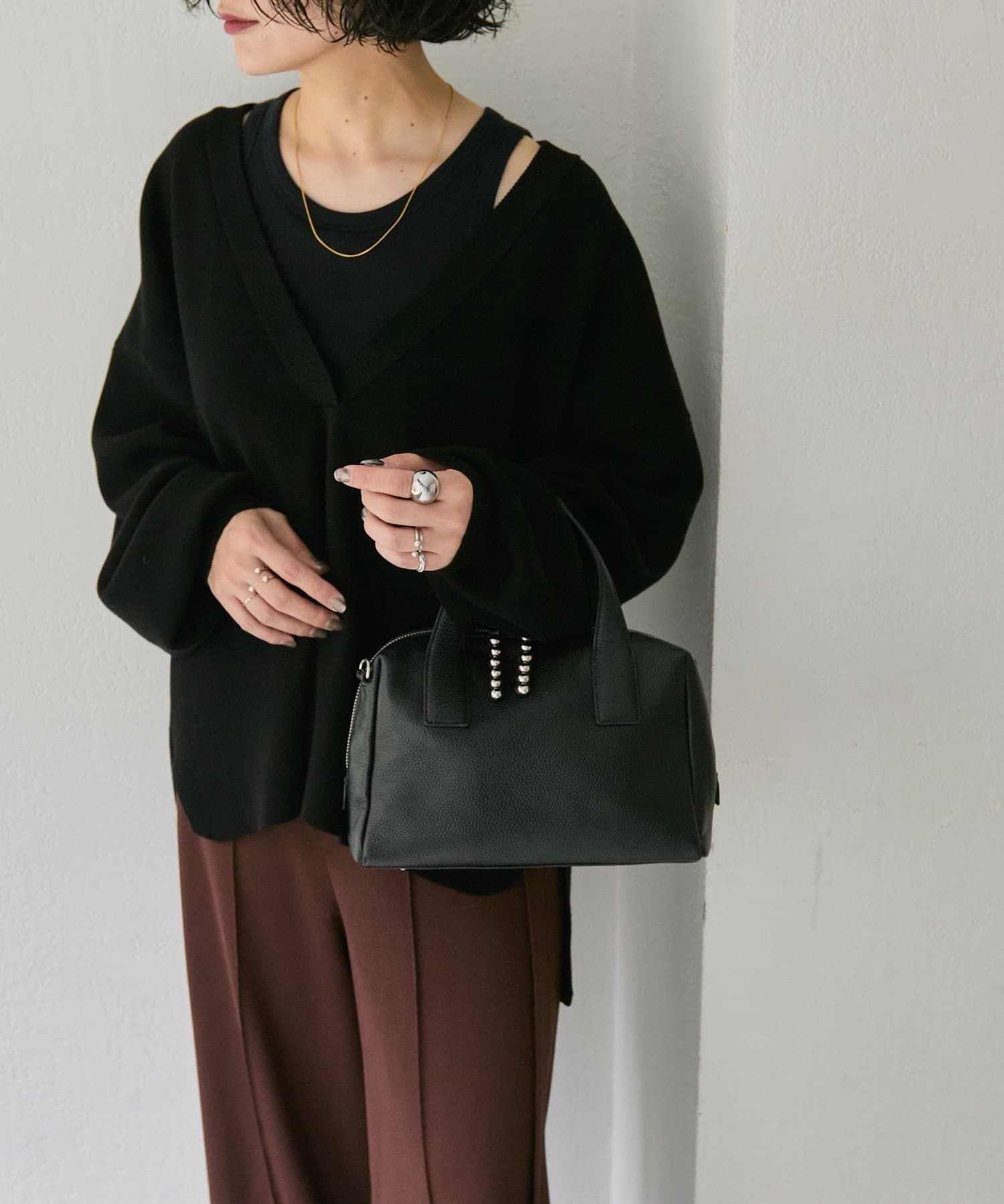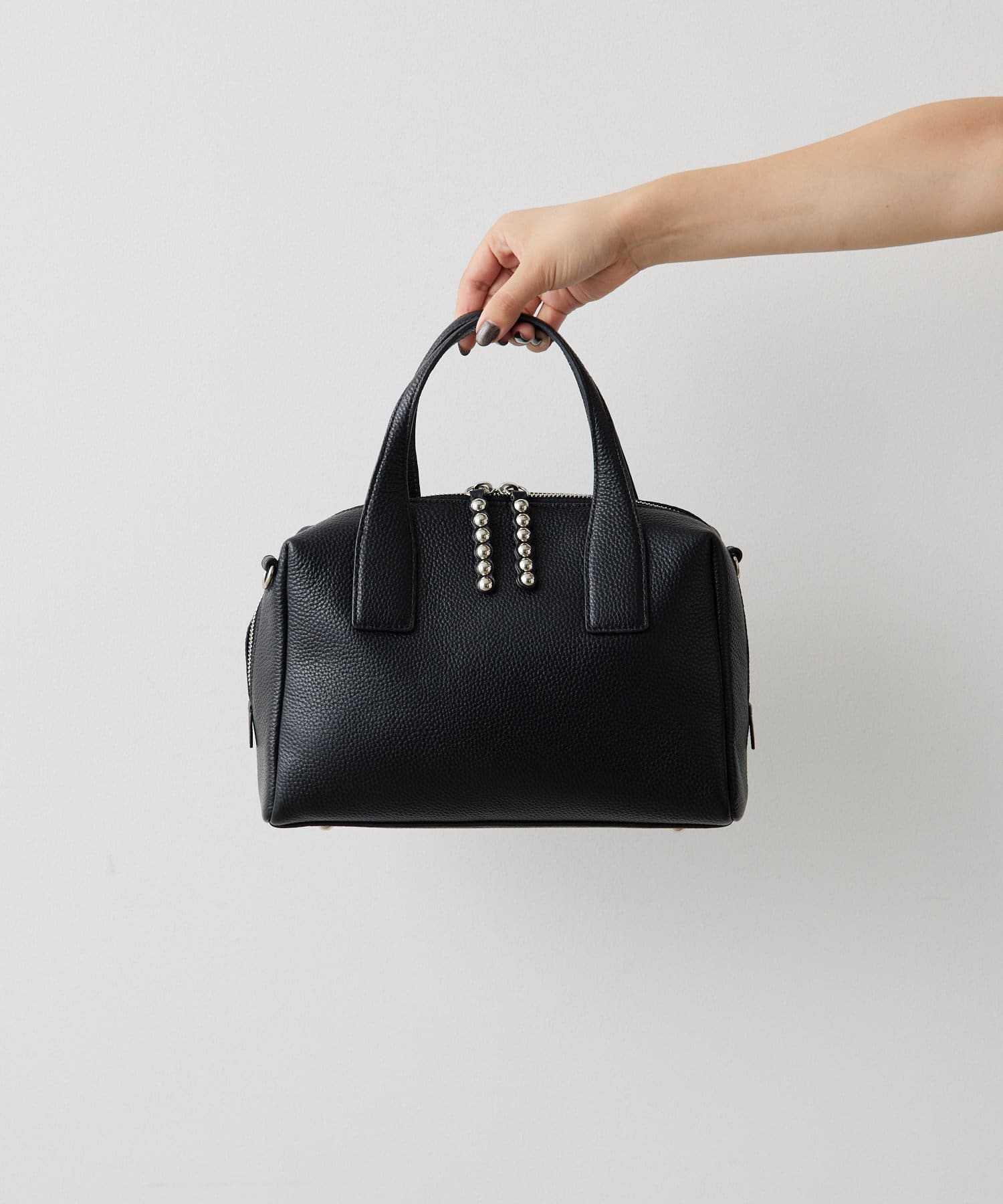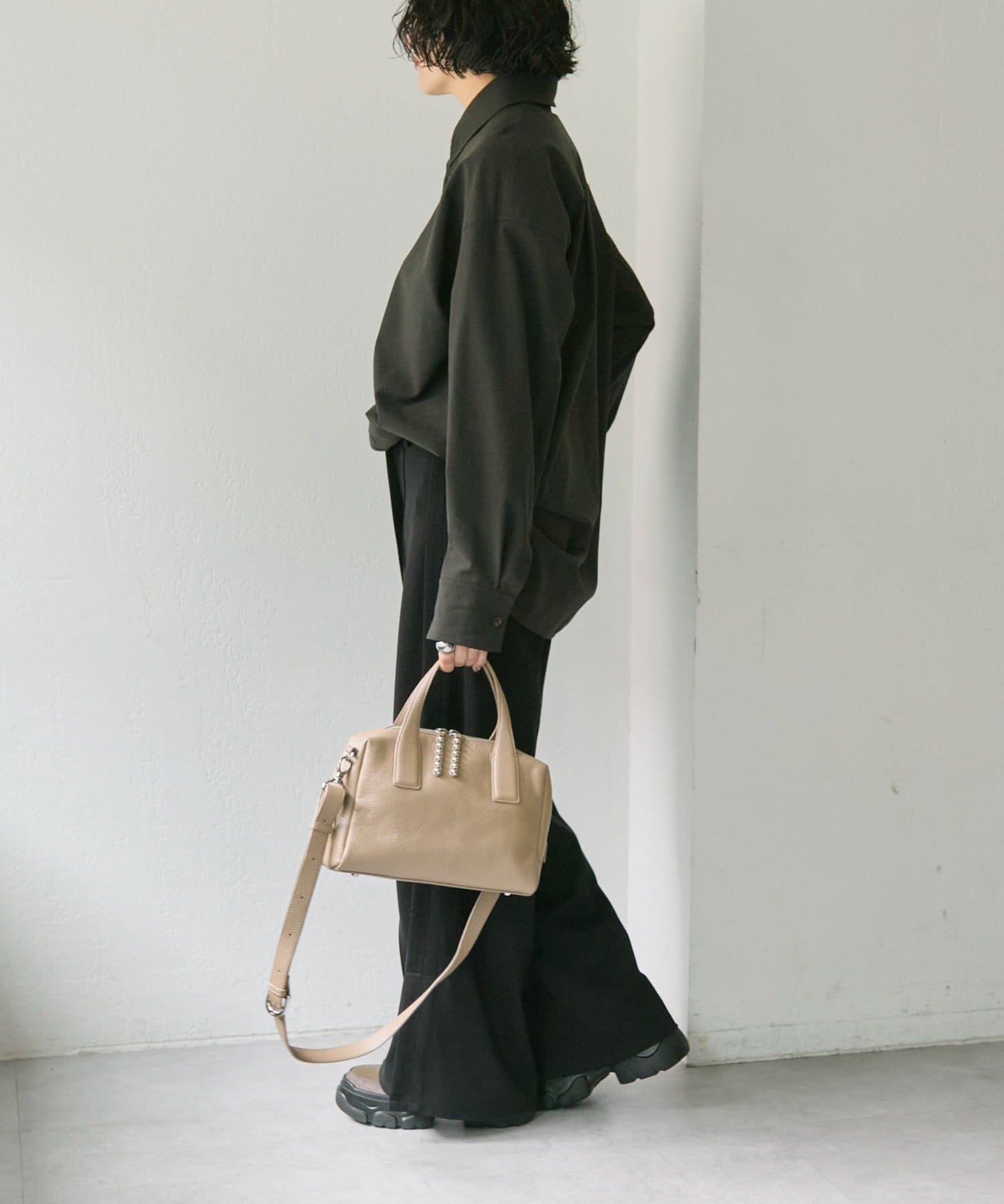 SNSでも注目!シルバースタッズが映えるレザーボストンバッグ。