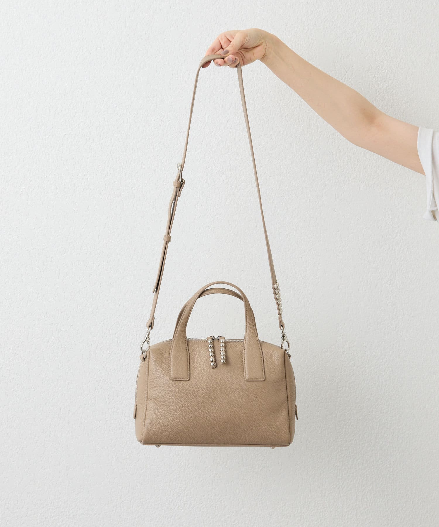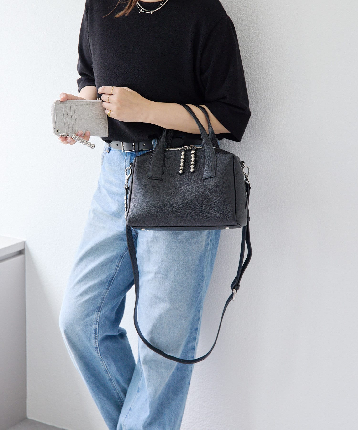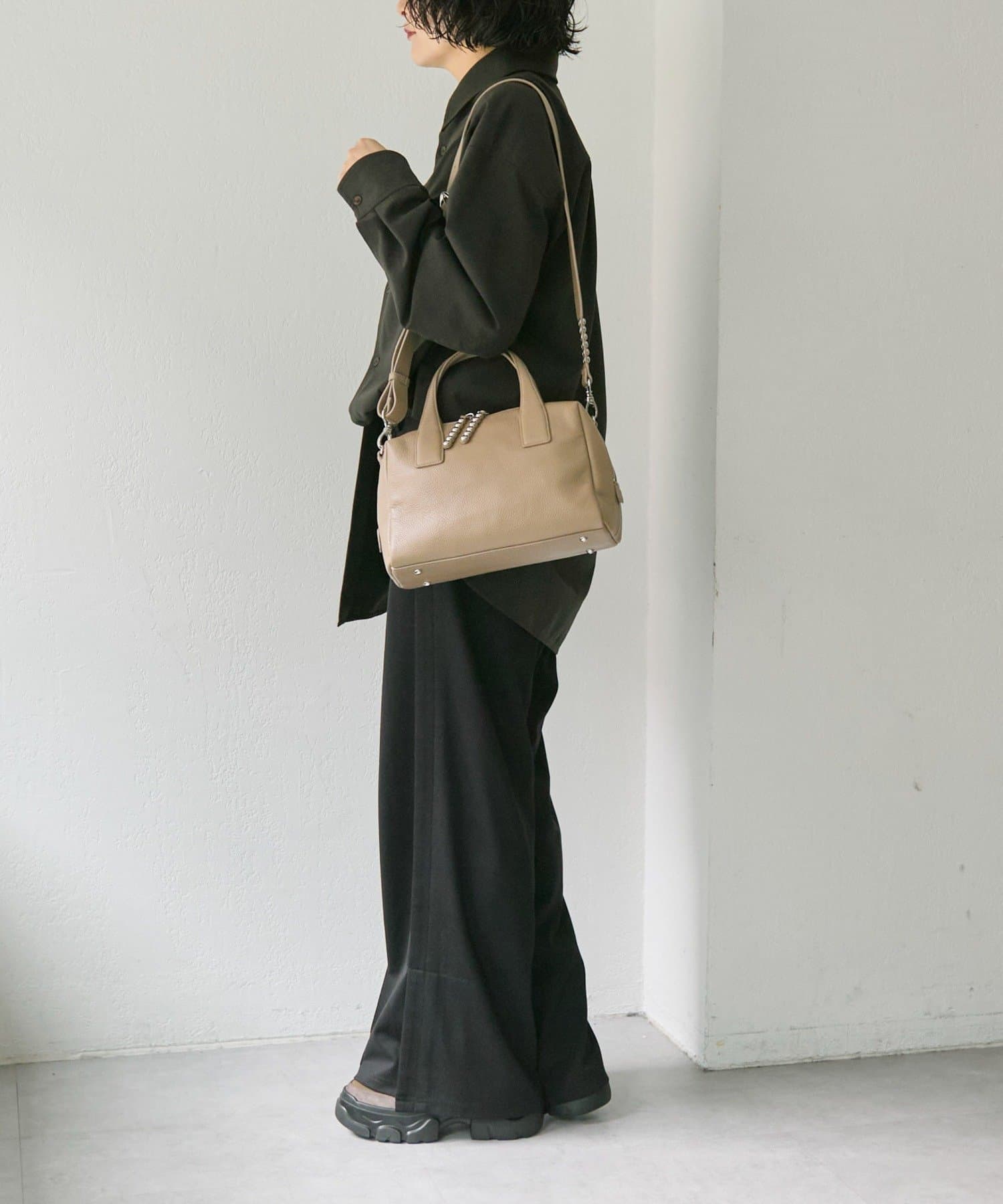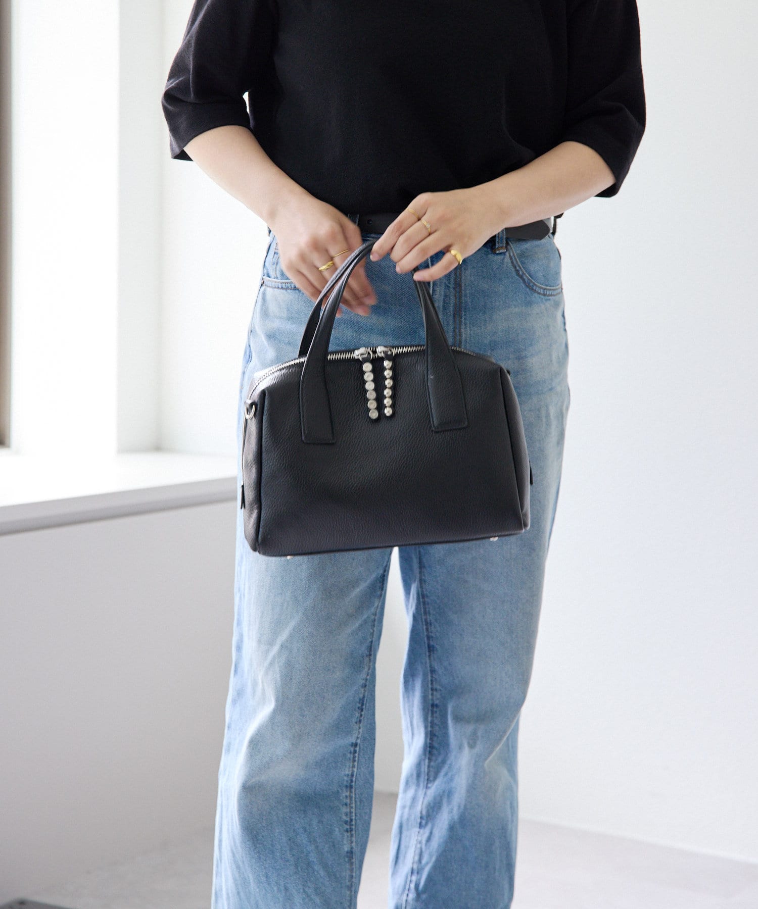 SNSでも注目!シルバースタッズが映えるレザーボストンバッグ。