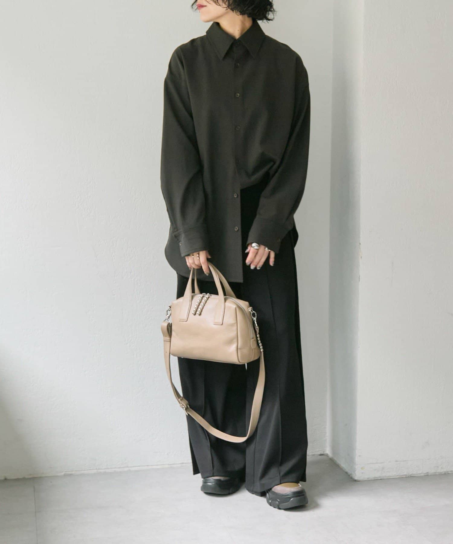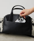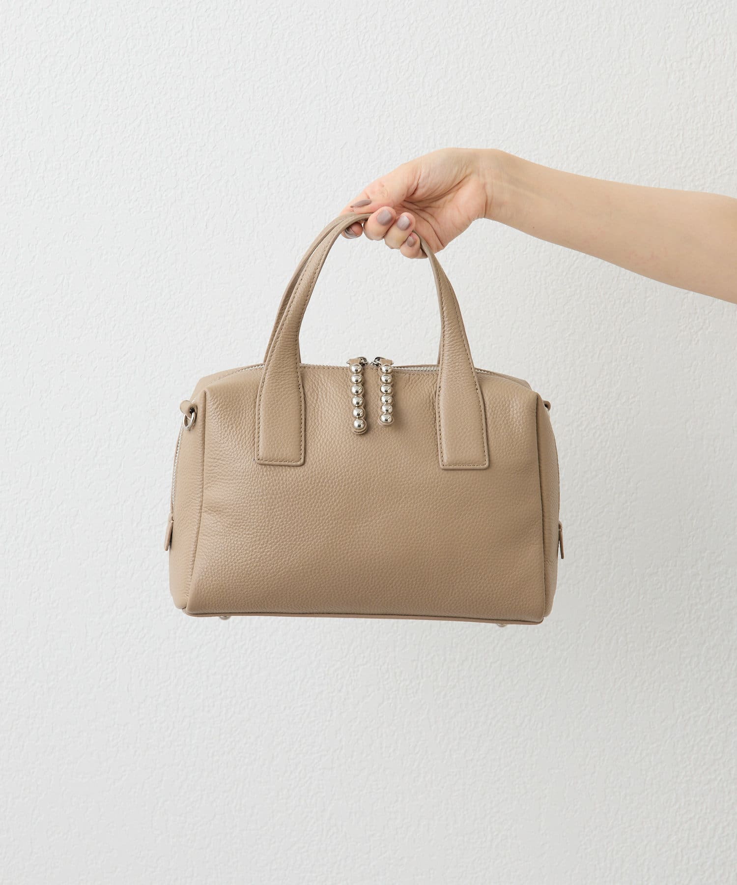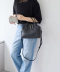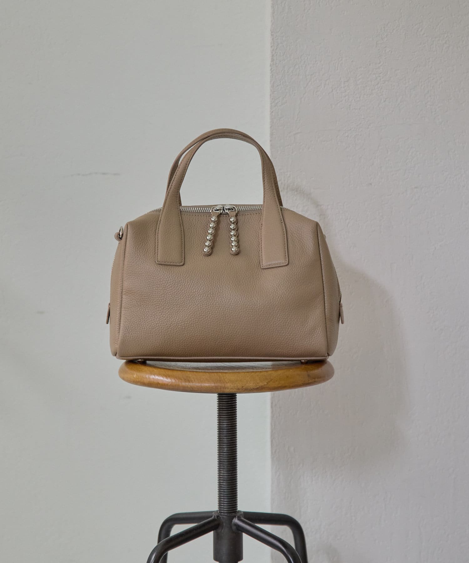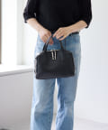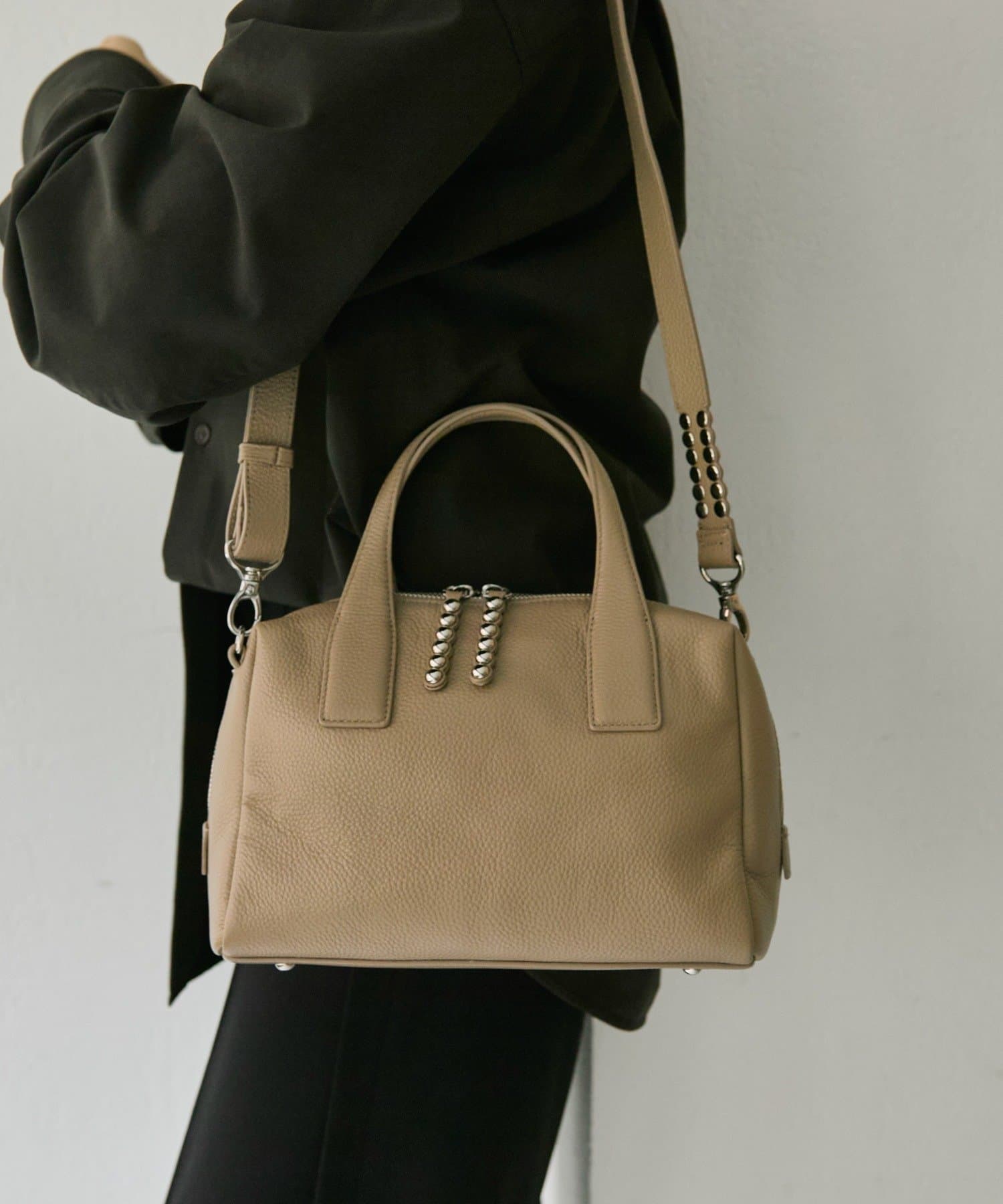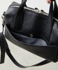 SNSでも注目!シルバースタッズが映えるレザーボストンバッグ。