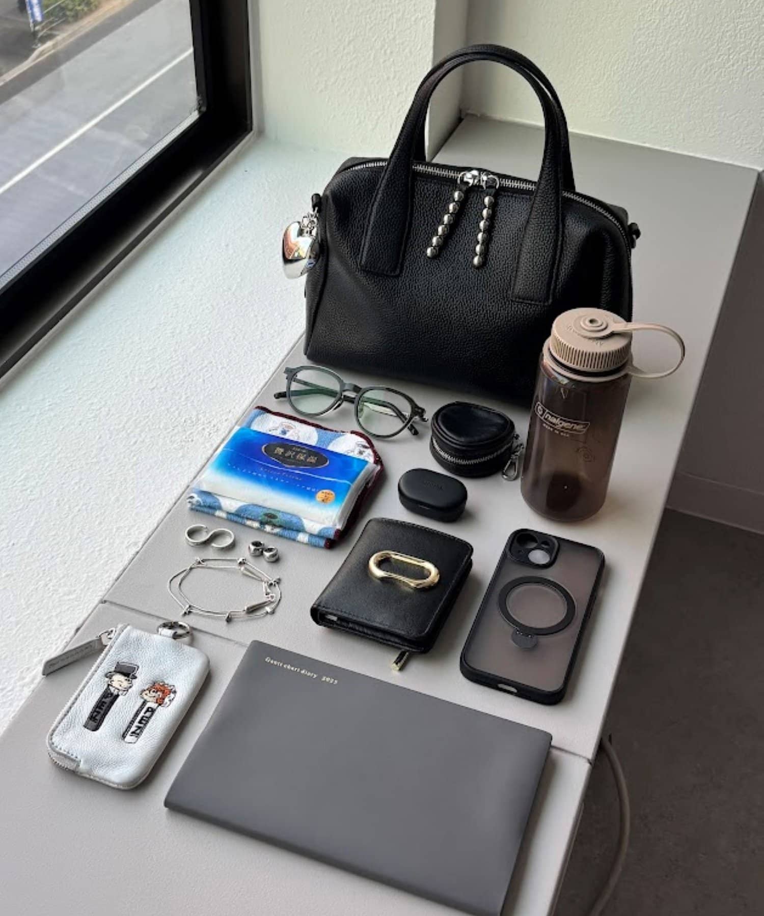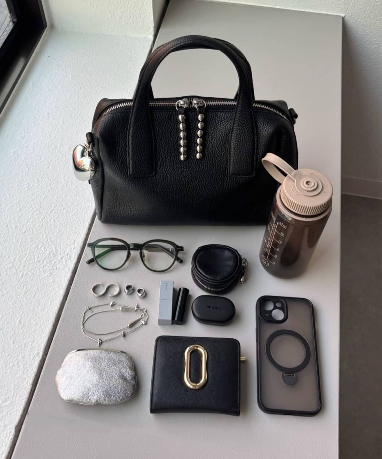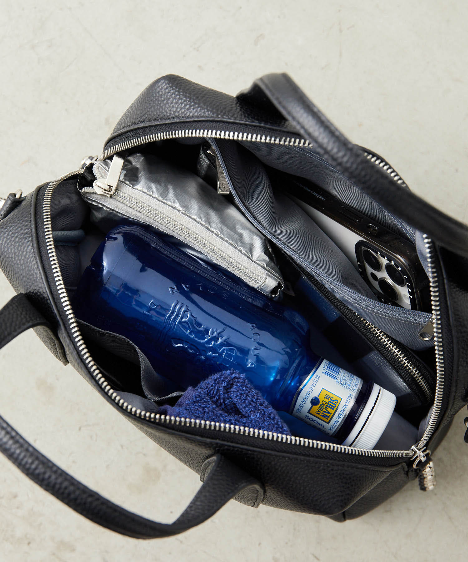 長財布や500mlペットボトルも入るミディアムサイズのボストンバッグです。