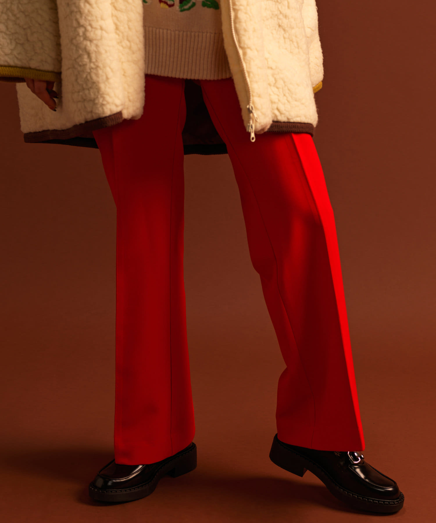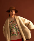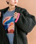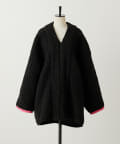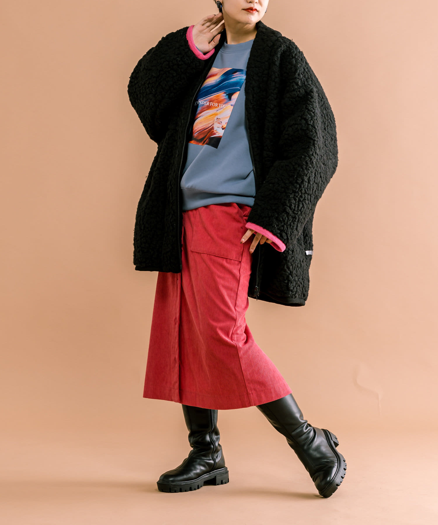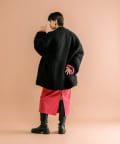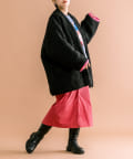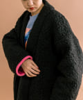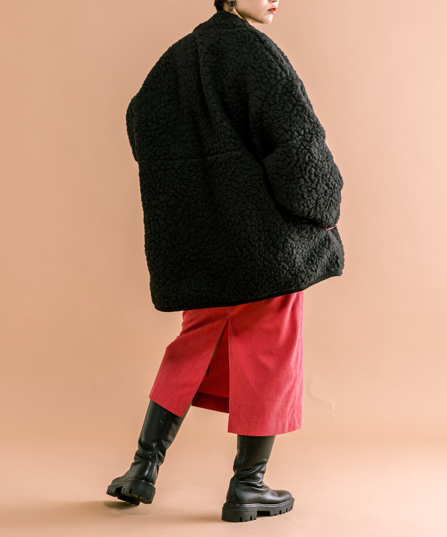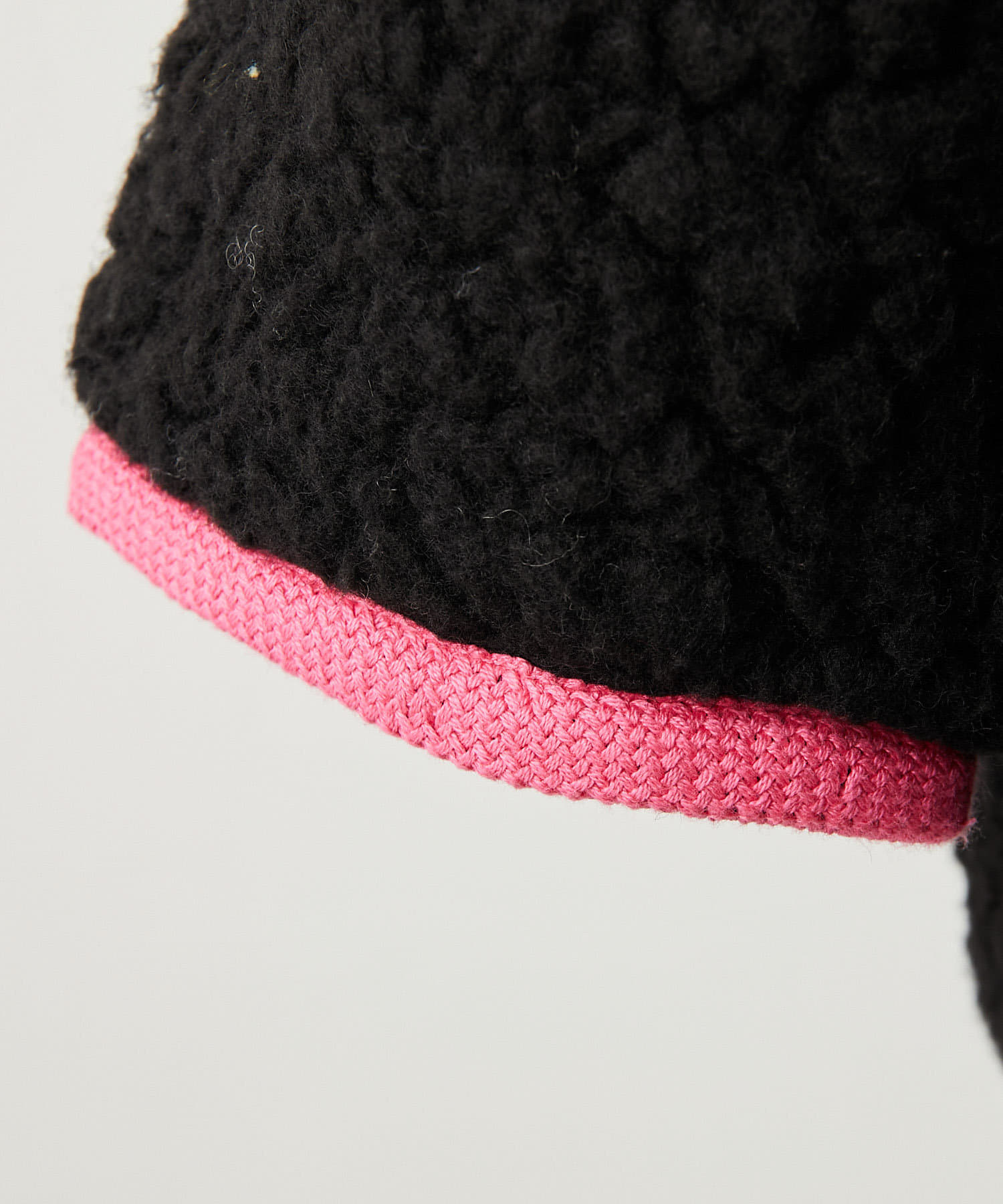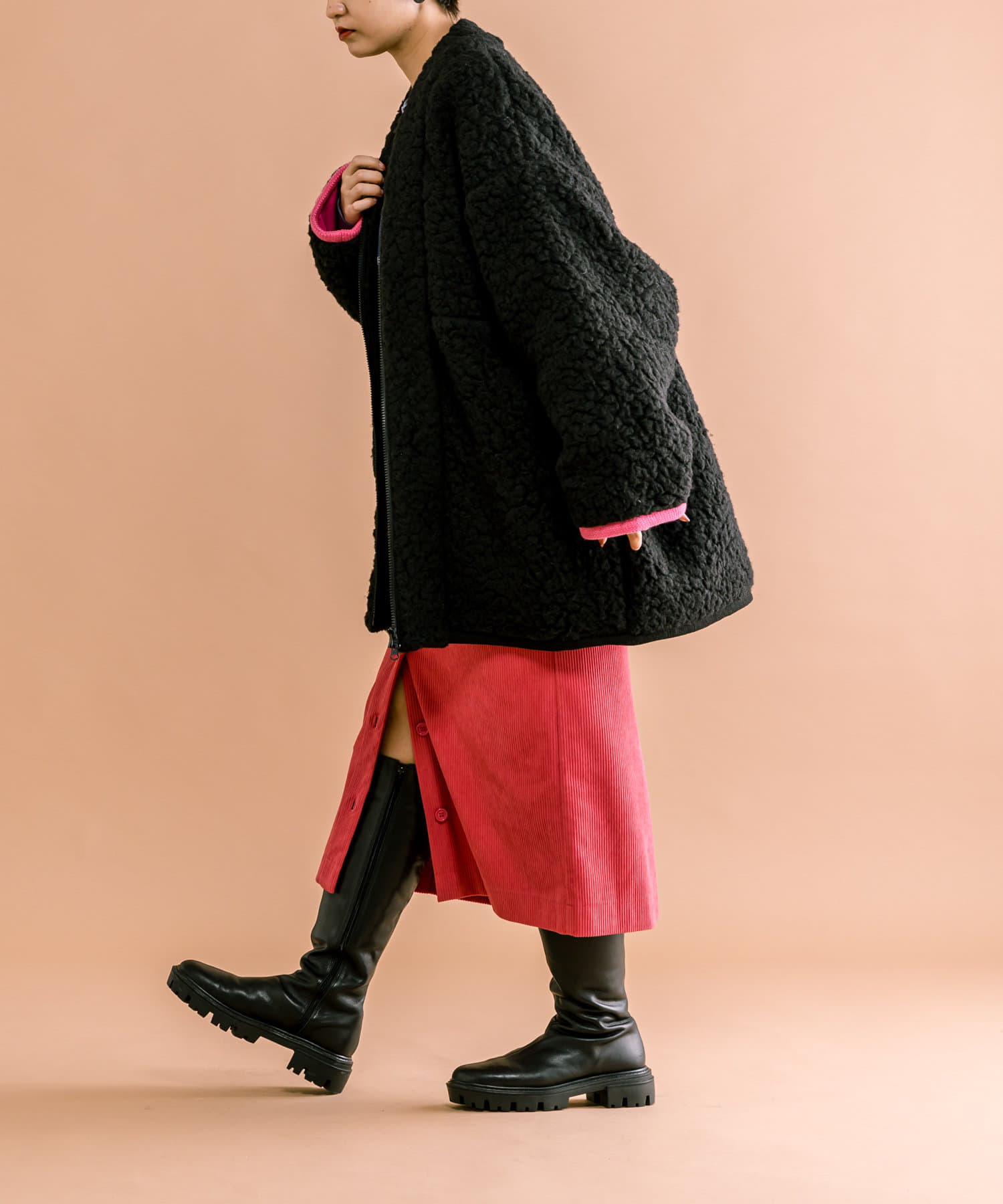 手元・裾部分にアクセントカラーが縁どられている冬らしいヴィンテージ風ボアアウター。