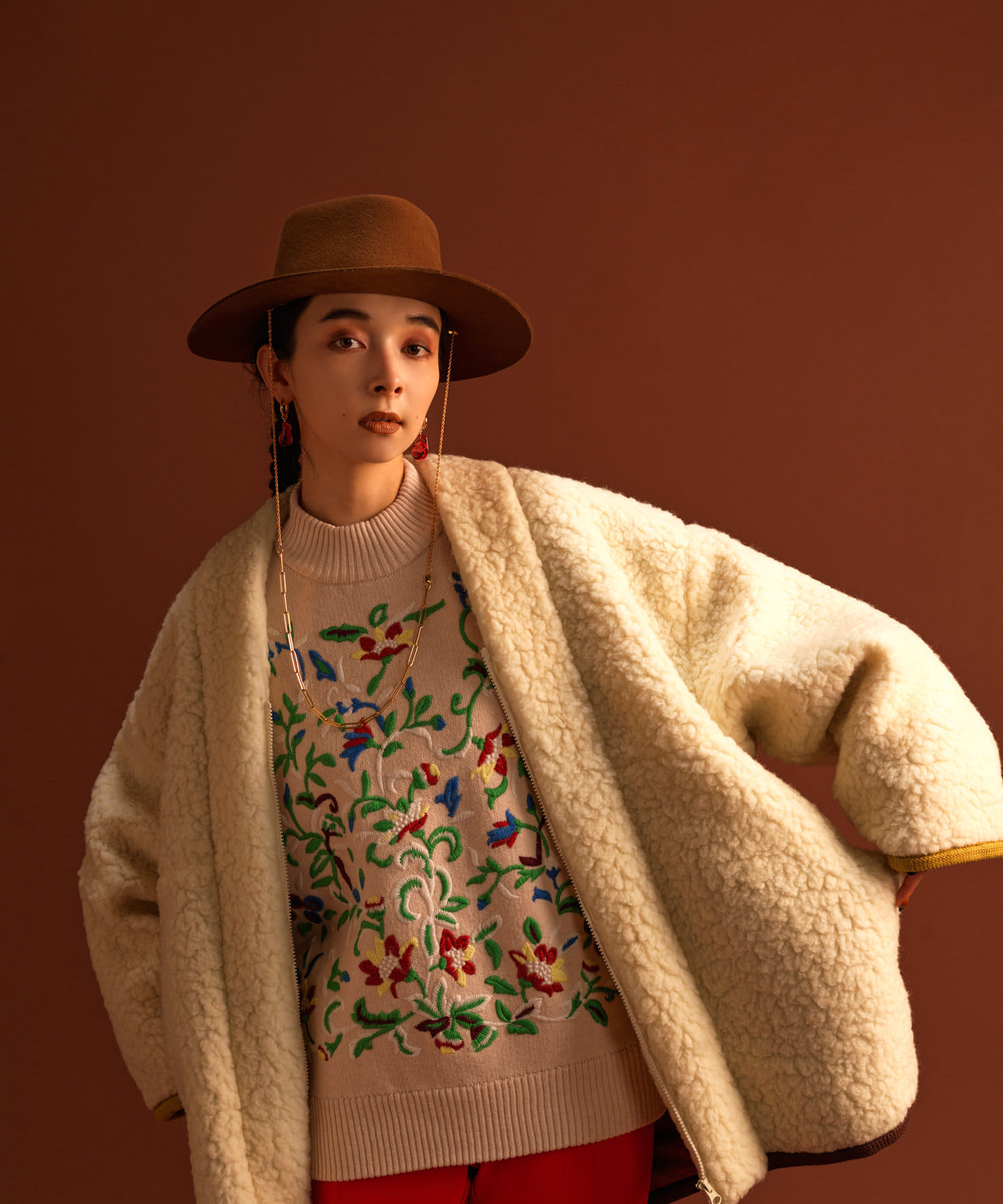 ヴィンテージ感あるボアで、こなれた雰囲気を演出。