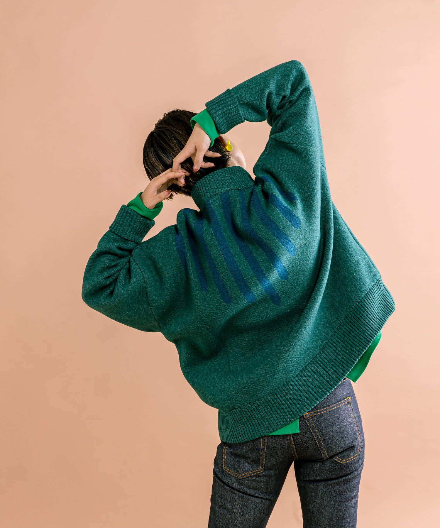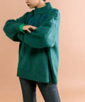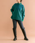 サイズ感は今っぽいオーバーサイズ。首元・裾にはリブデザインでスッキリと。