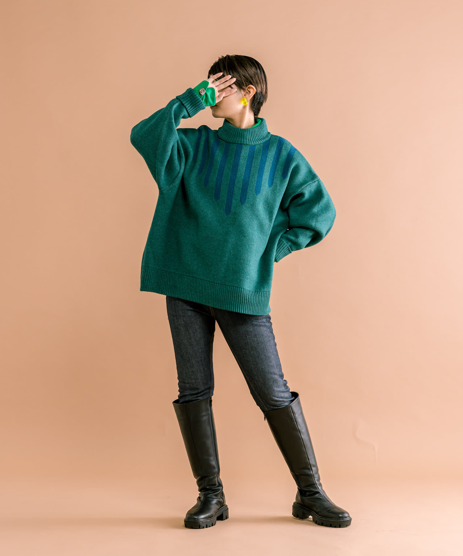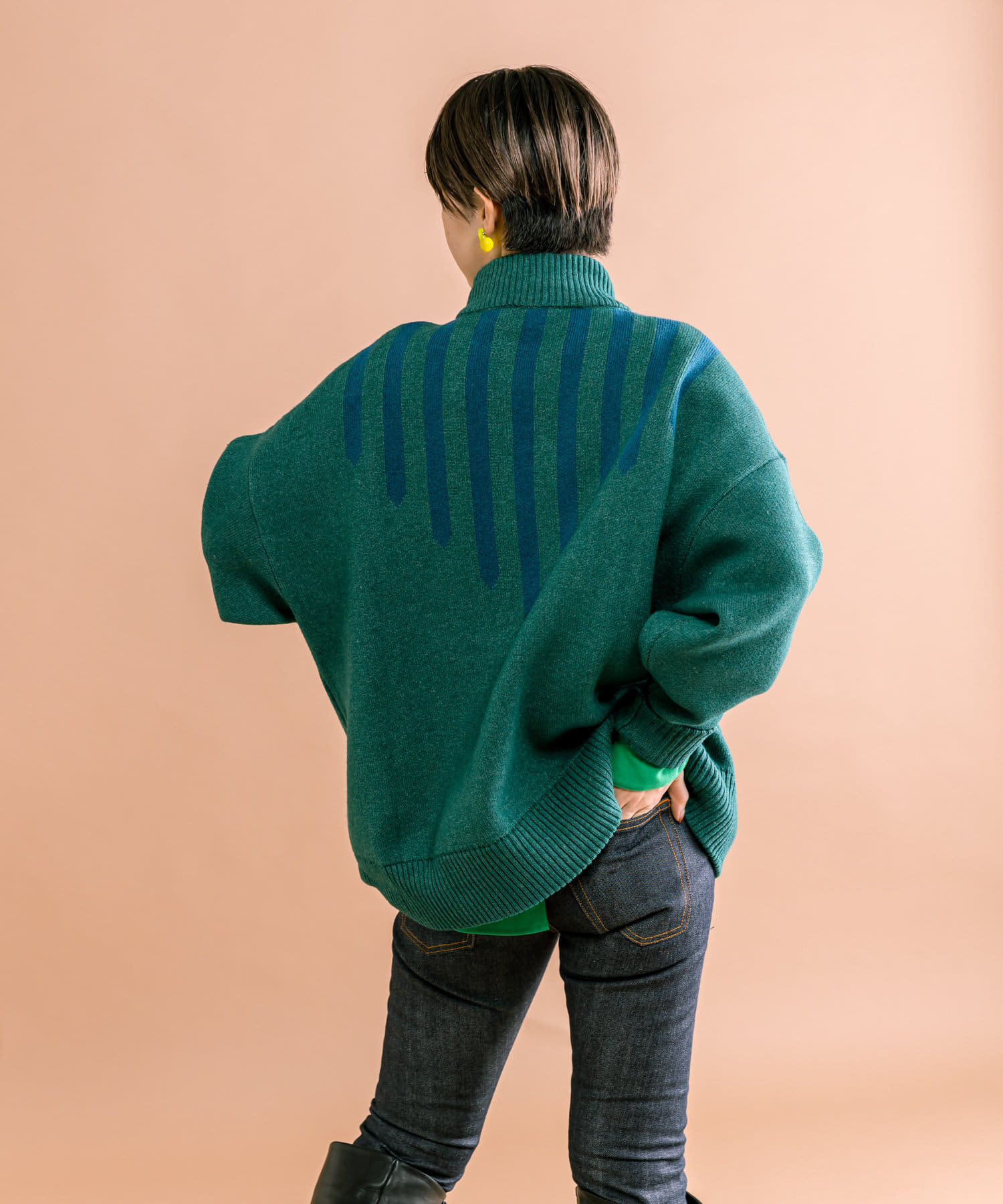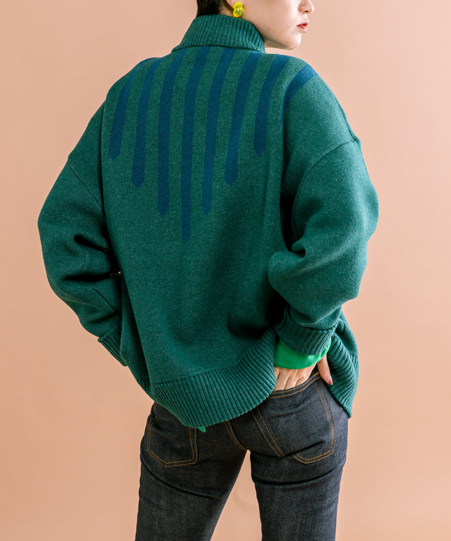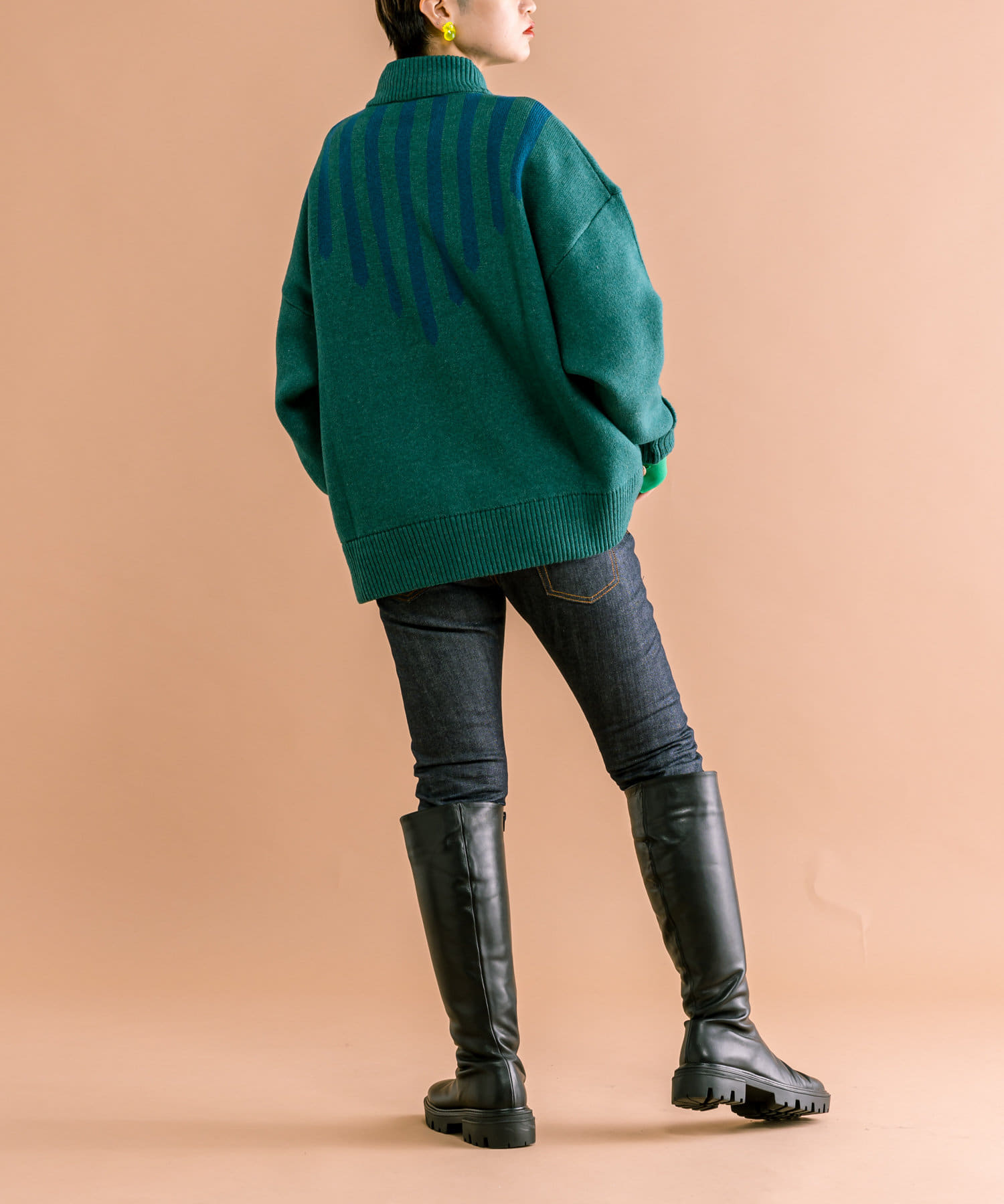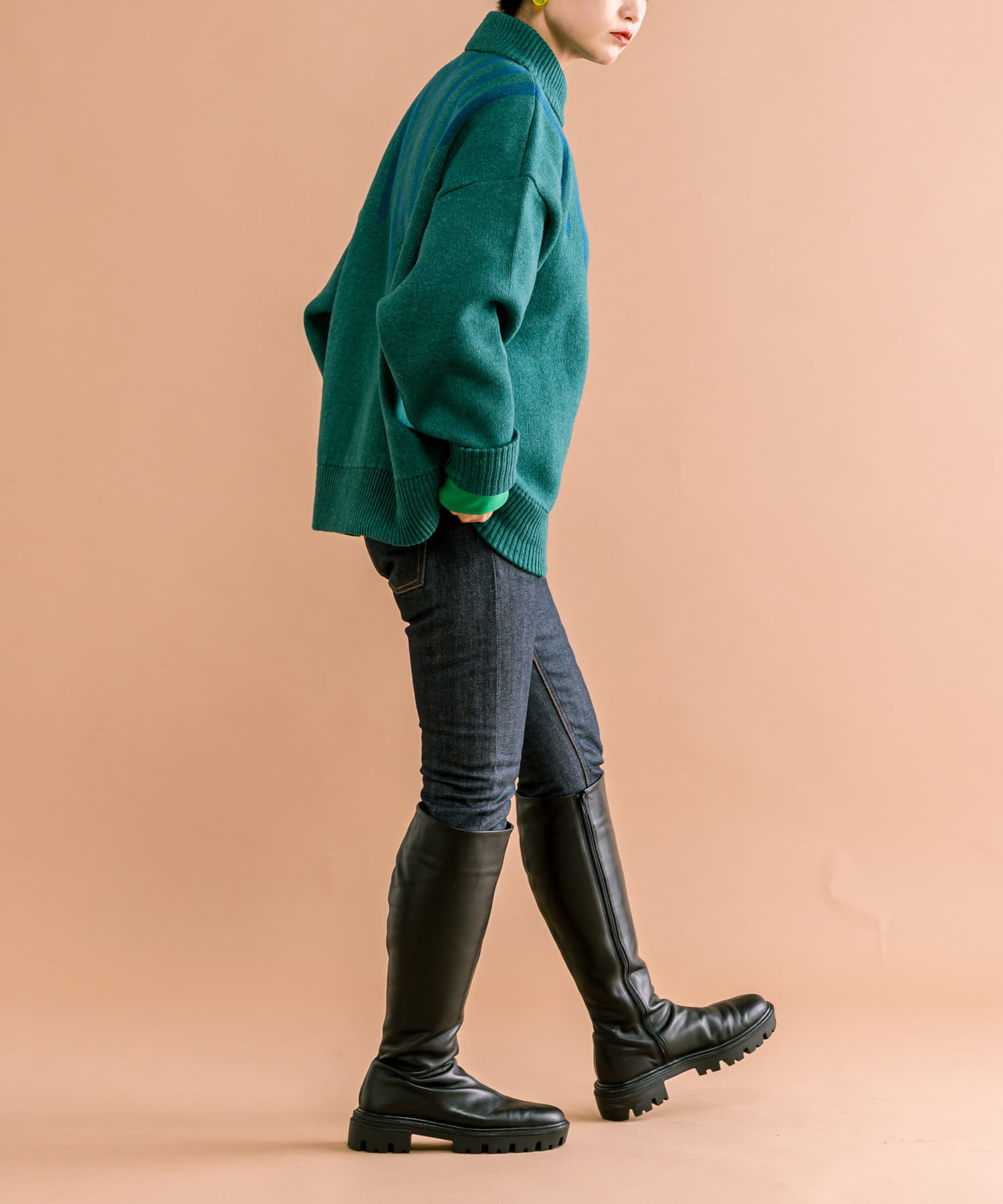 落ち着いたトーンに、ラインがアクセントの肉厚ニット。