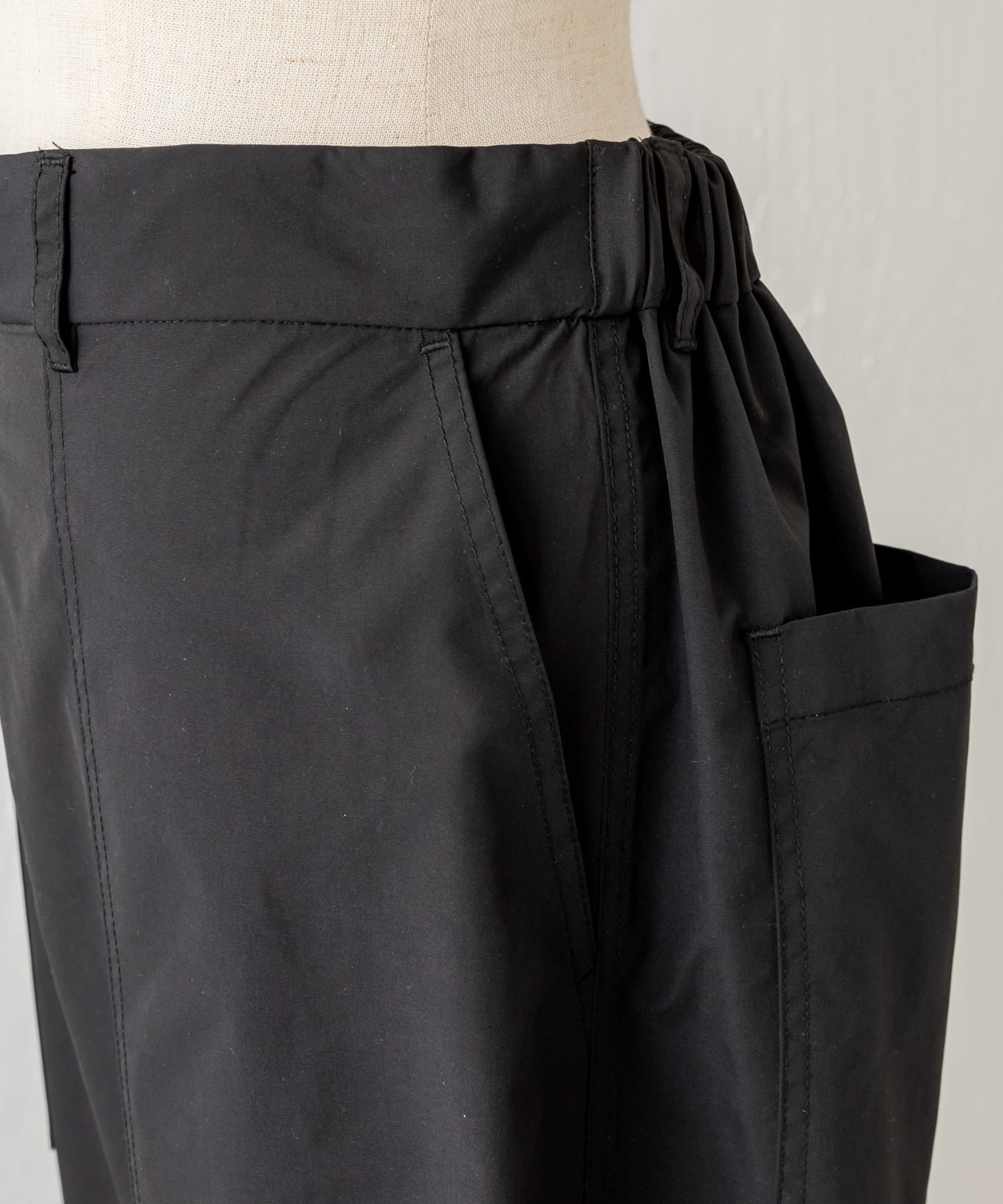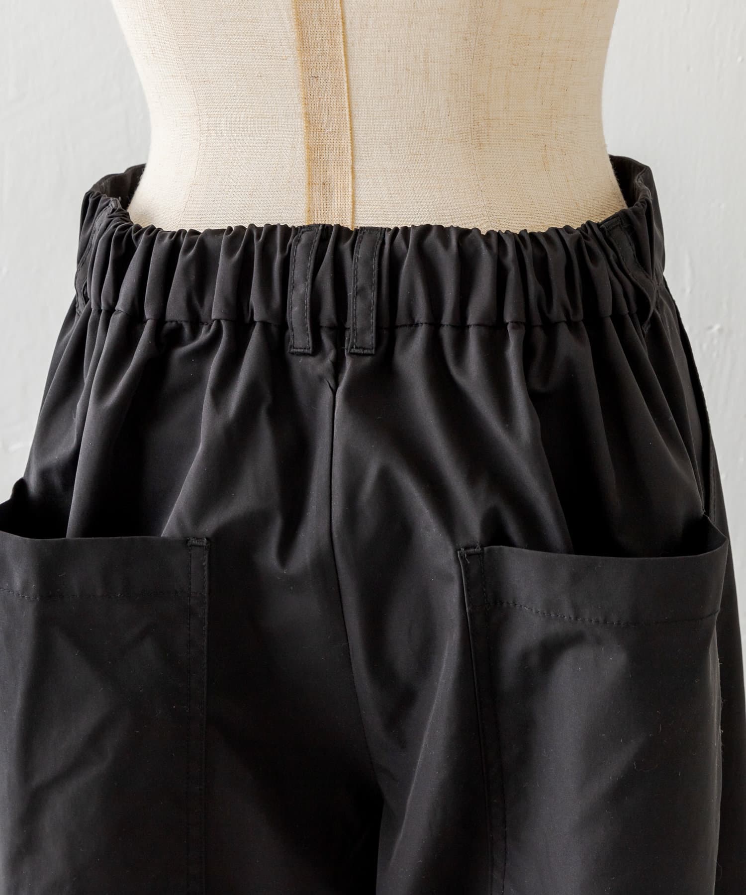 ウエストの後ろ部分にはゴムを使用しリラックスな履き心地。