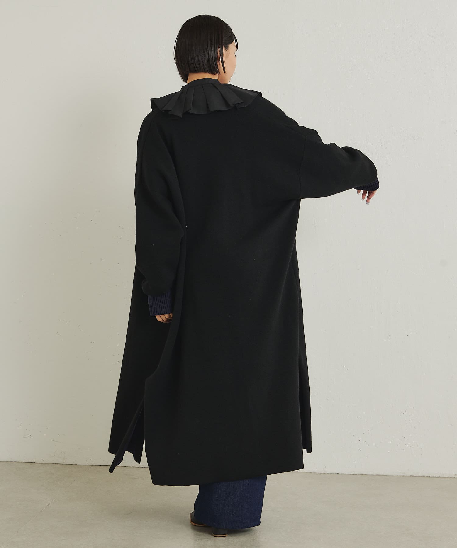 控えめなバルーンスリーブとフリルのような襟で甘めな雰囲気に。