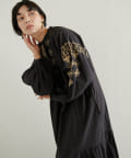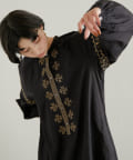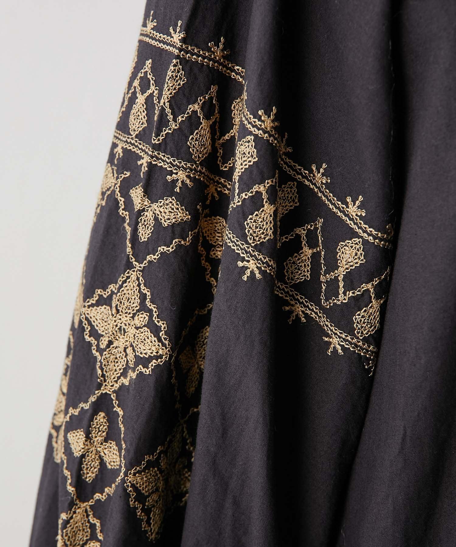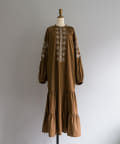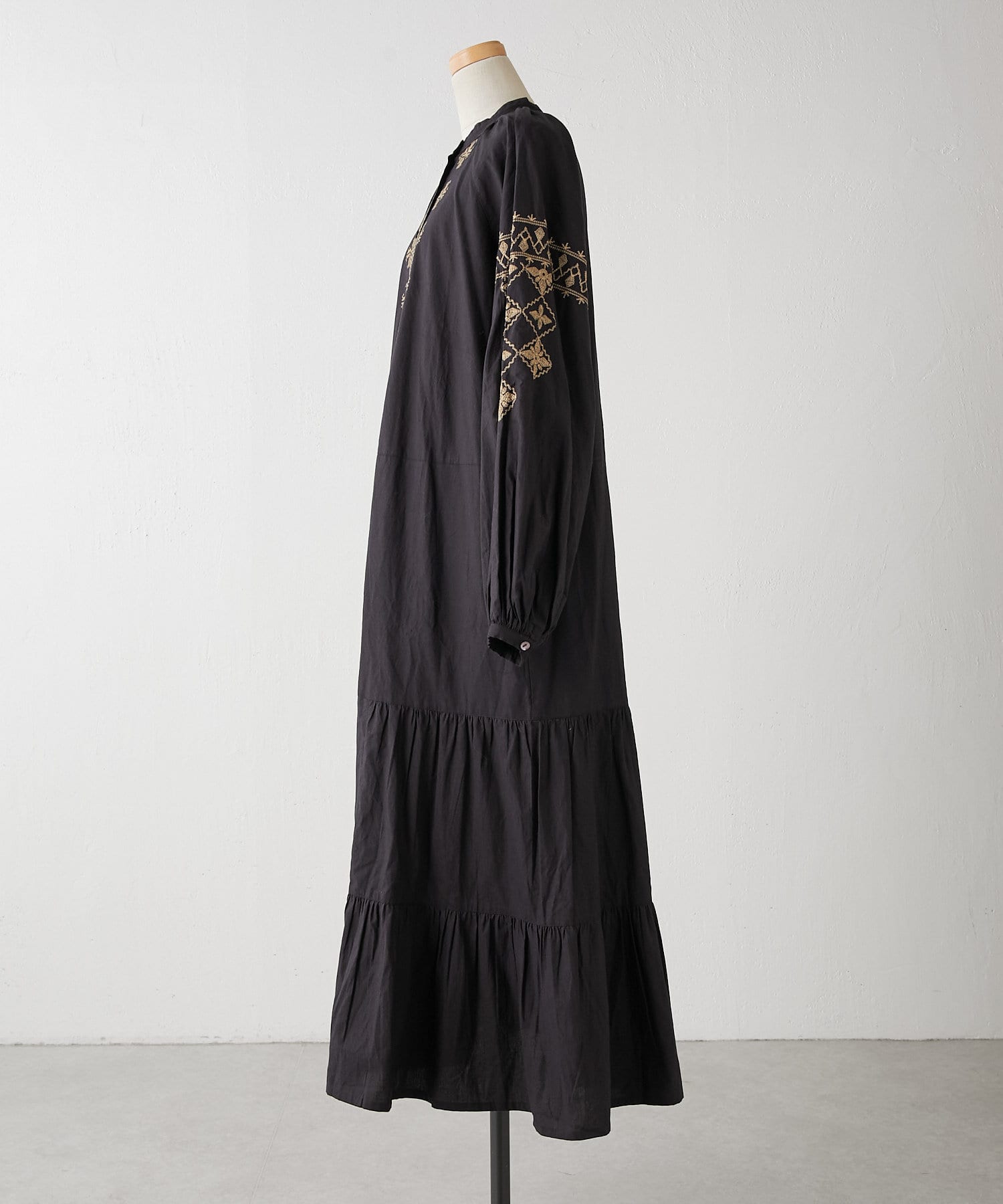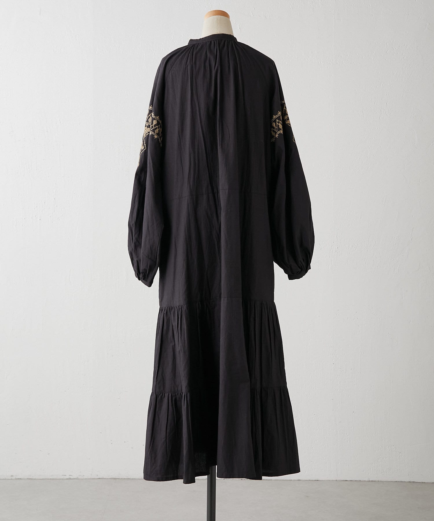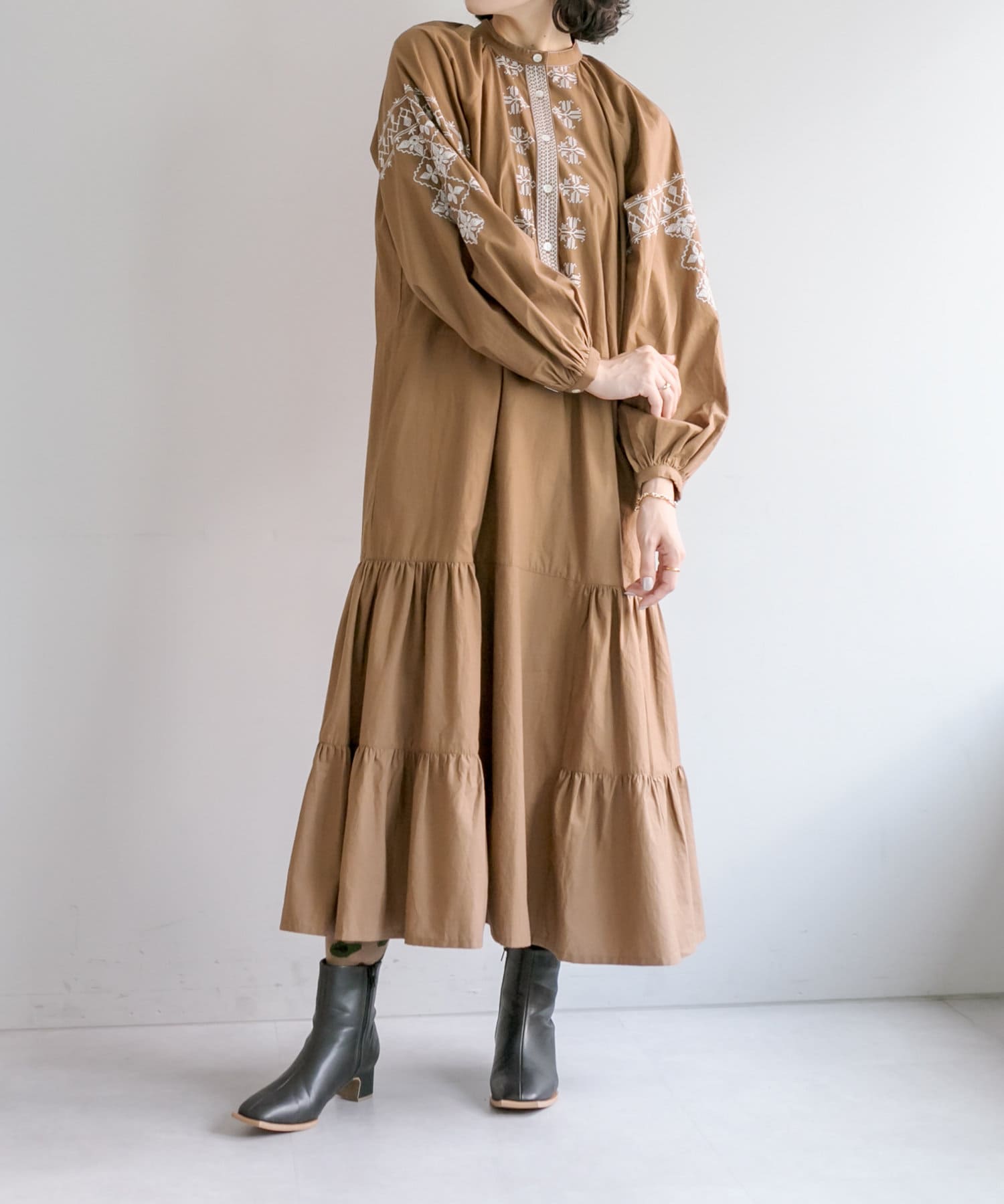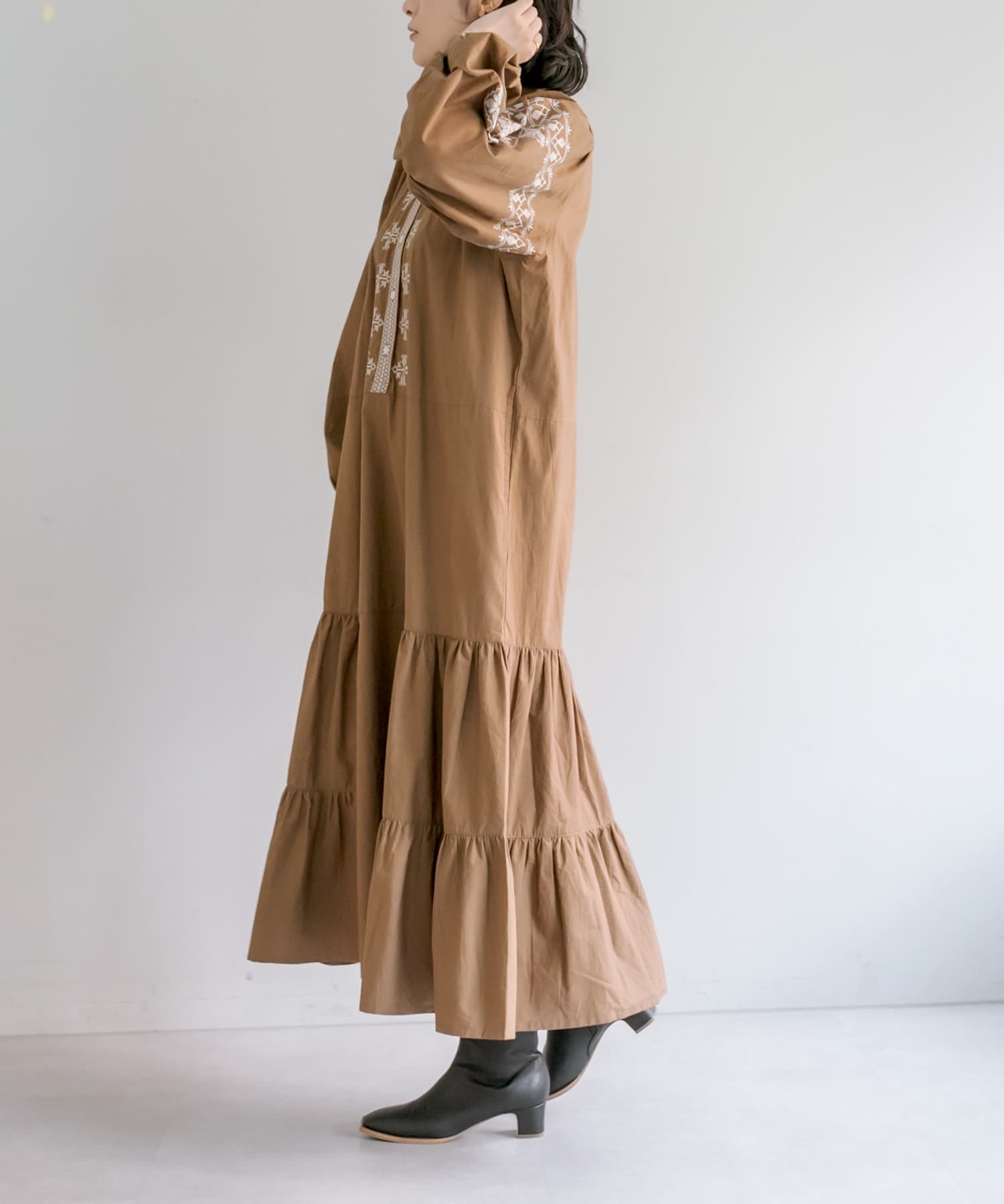 センターと袖回りに細やかな刺繍が施されたおしゃれなロングワンピース。
