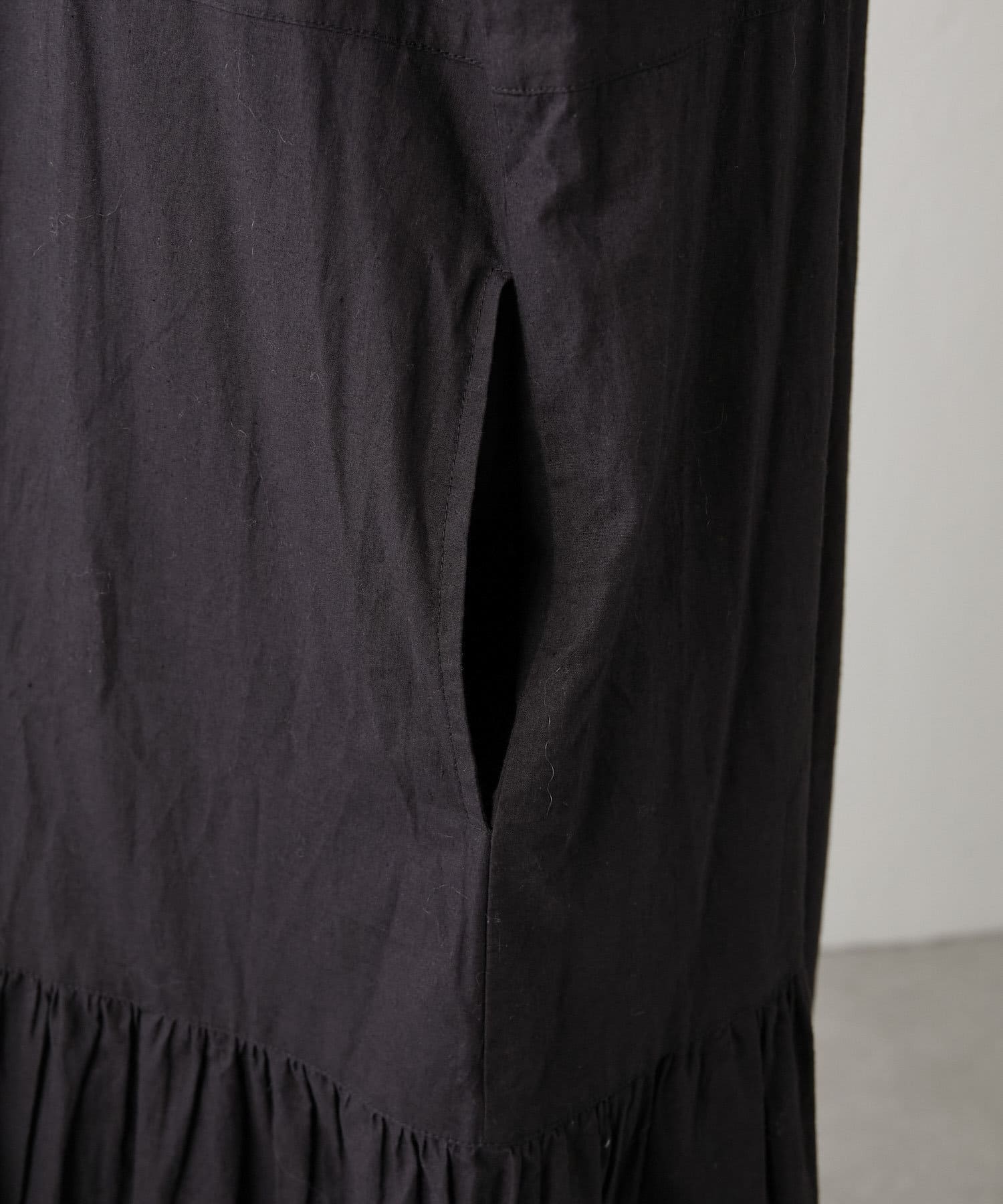 裾のサイドだけがフリルになることで可愛らしいものの、甘くなりすぎない印象で大人っぽい雰囲気を演出してくれます。