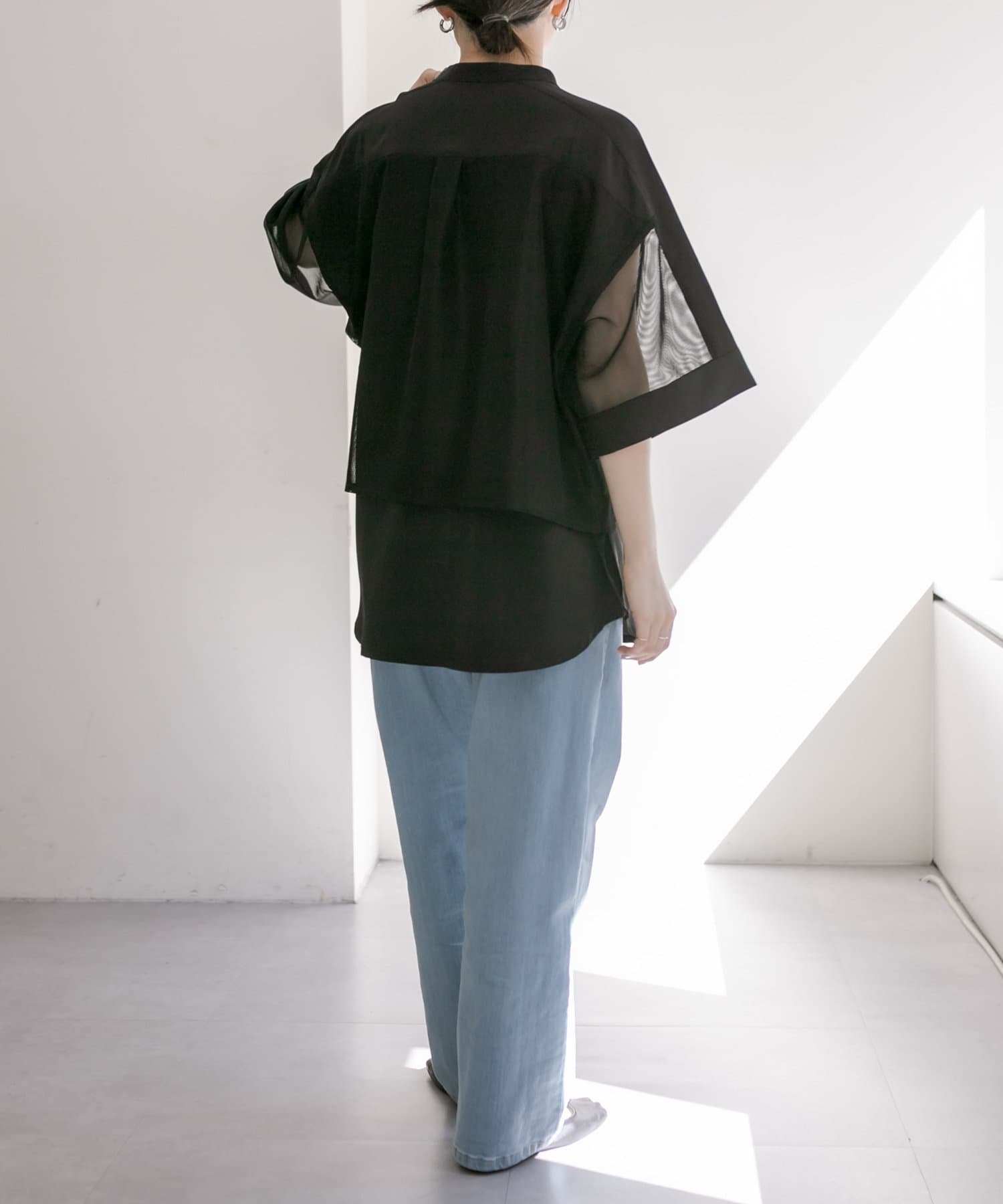 《手洗い可/サイドスリット入り》メッシュ切り替えシャツ【SUM1 STYLE】