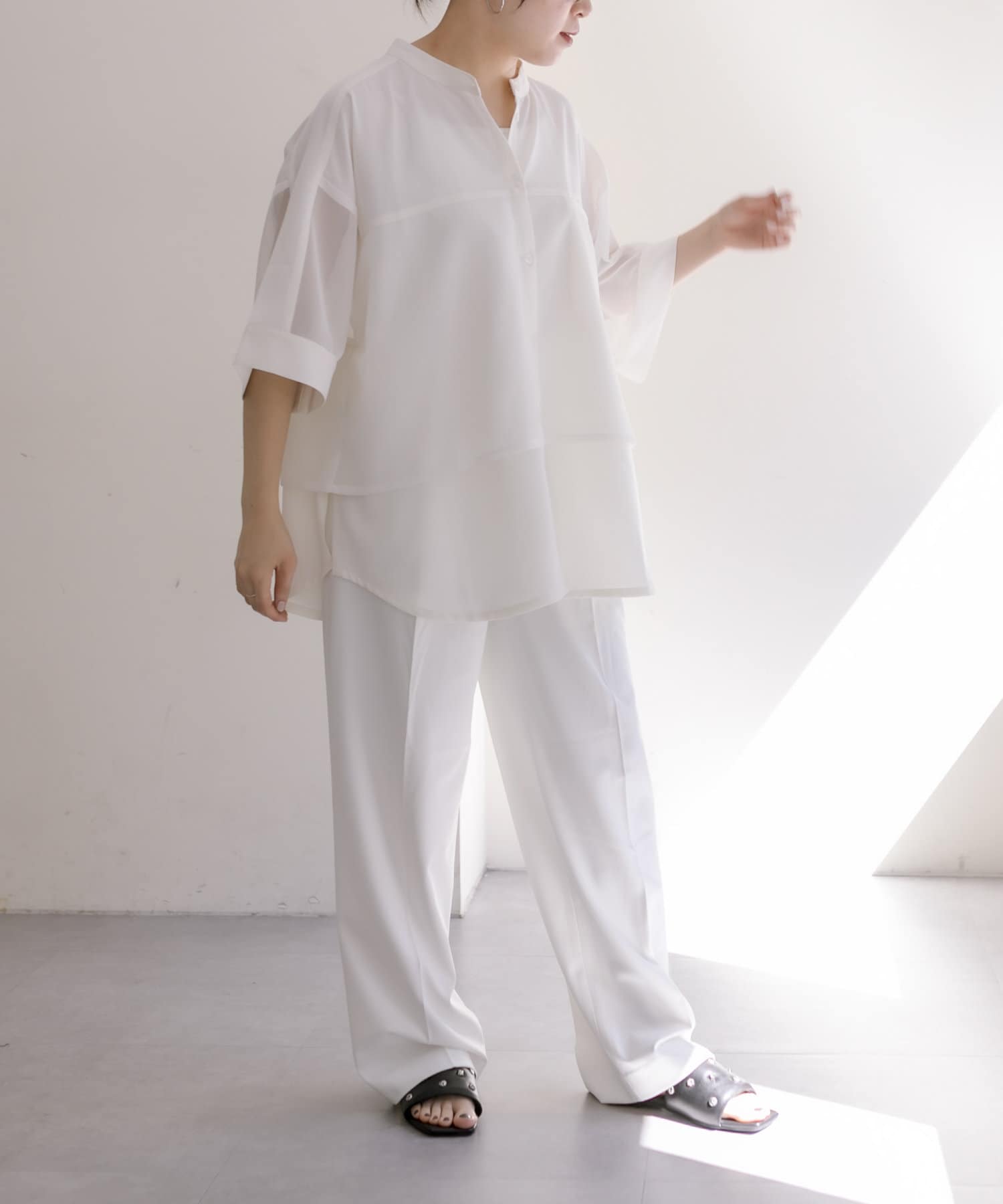 暑い日でもあまり肌の露出はしたくないという方におすすめのトップス。