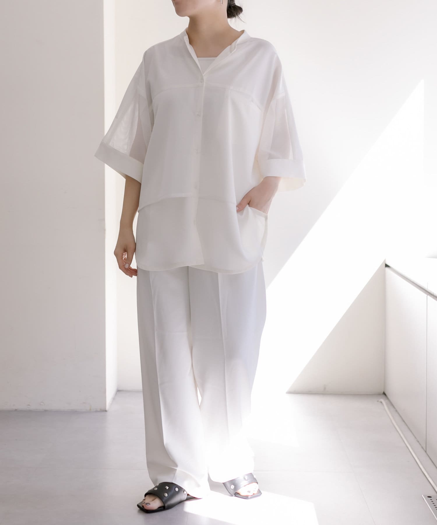 《手洗い可/サイドスリット入り》メッシュ切り替えシャツ【SUM1 STYLE】