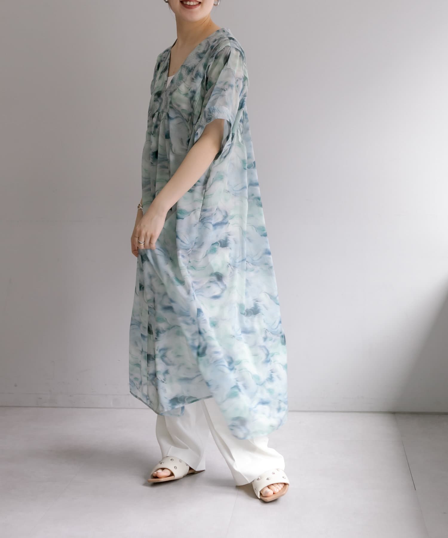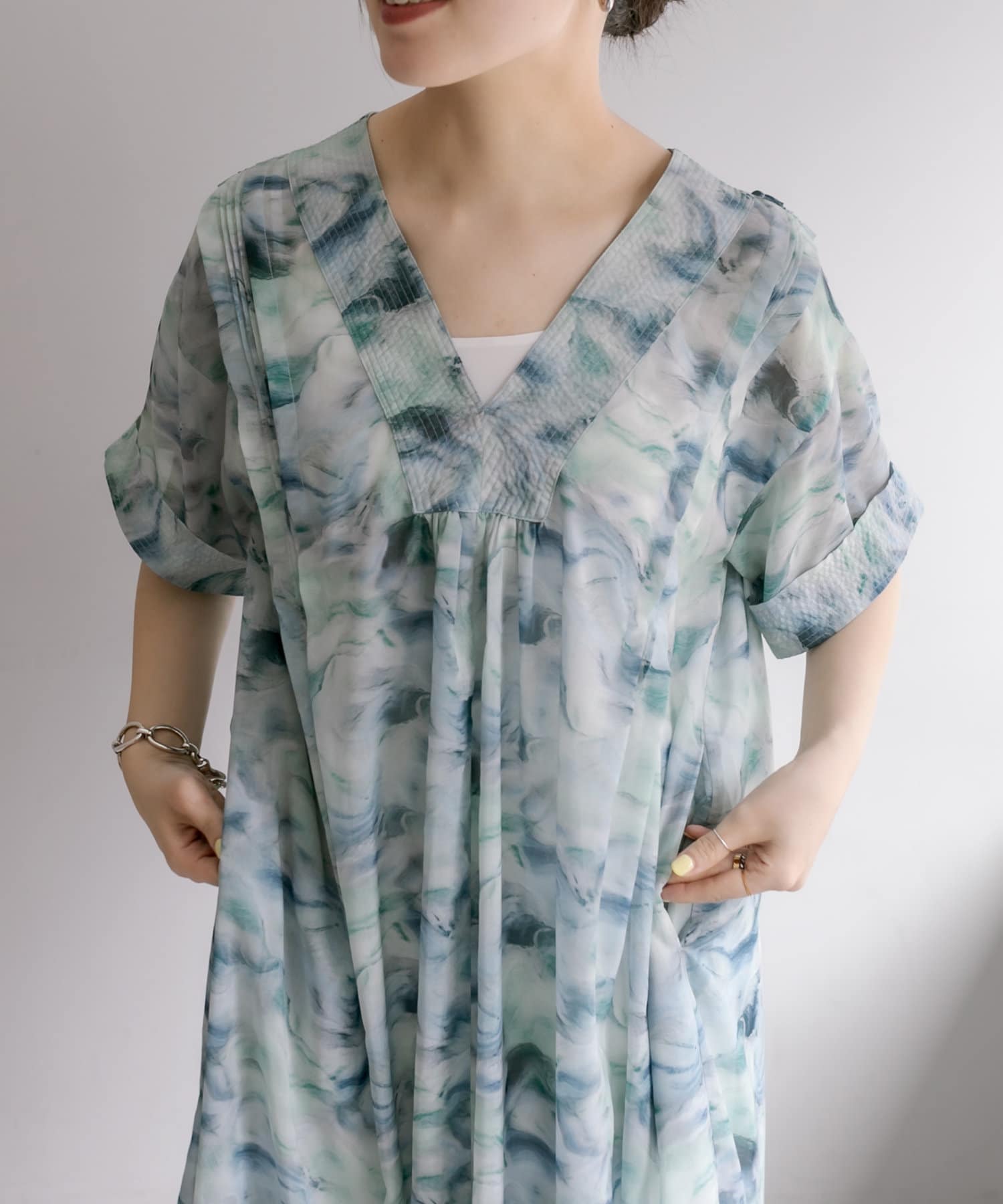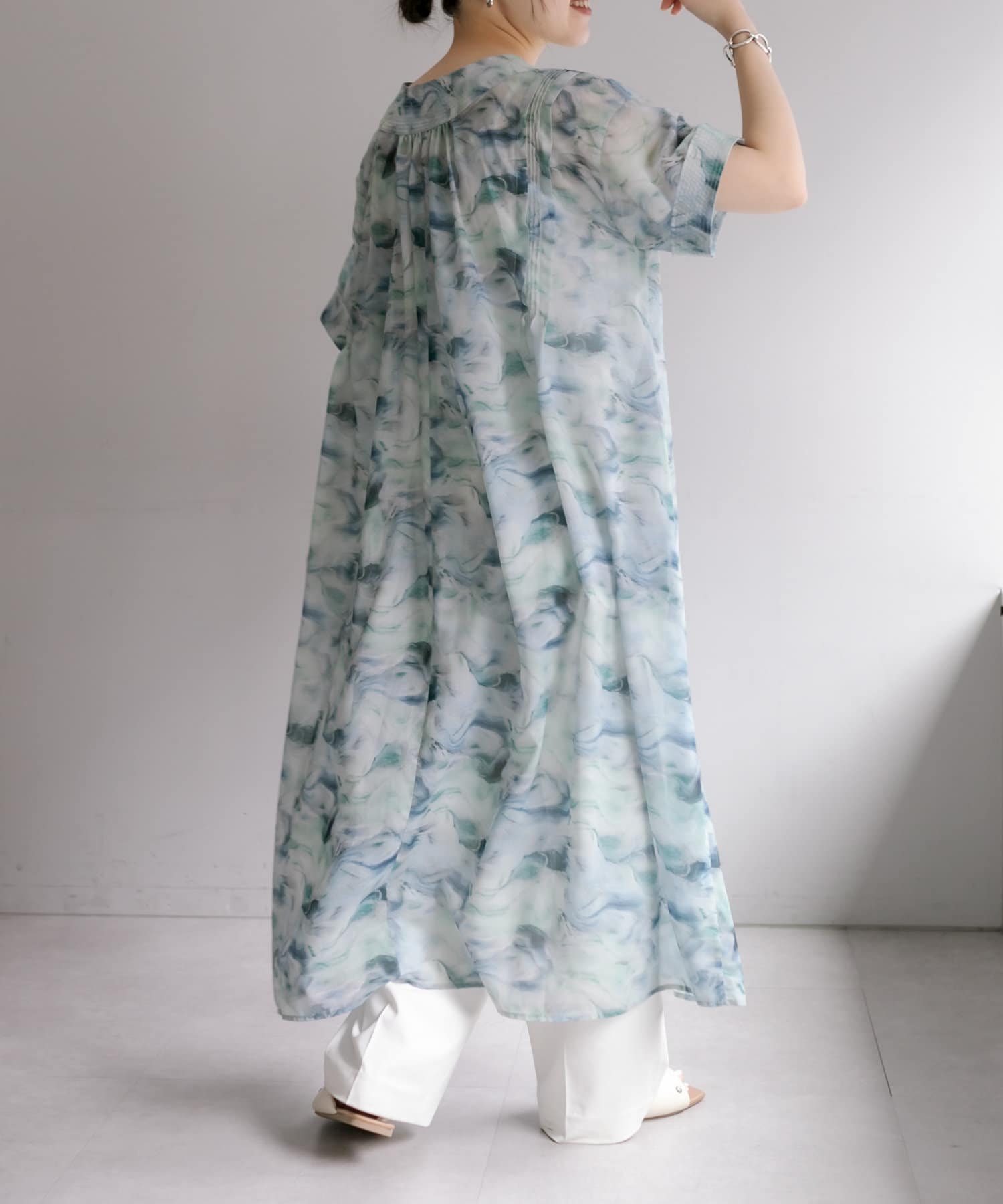 爽やかカラーの軽やかワンピース