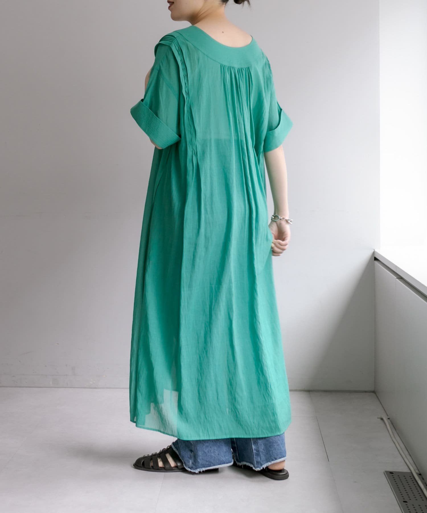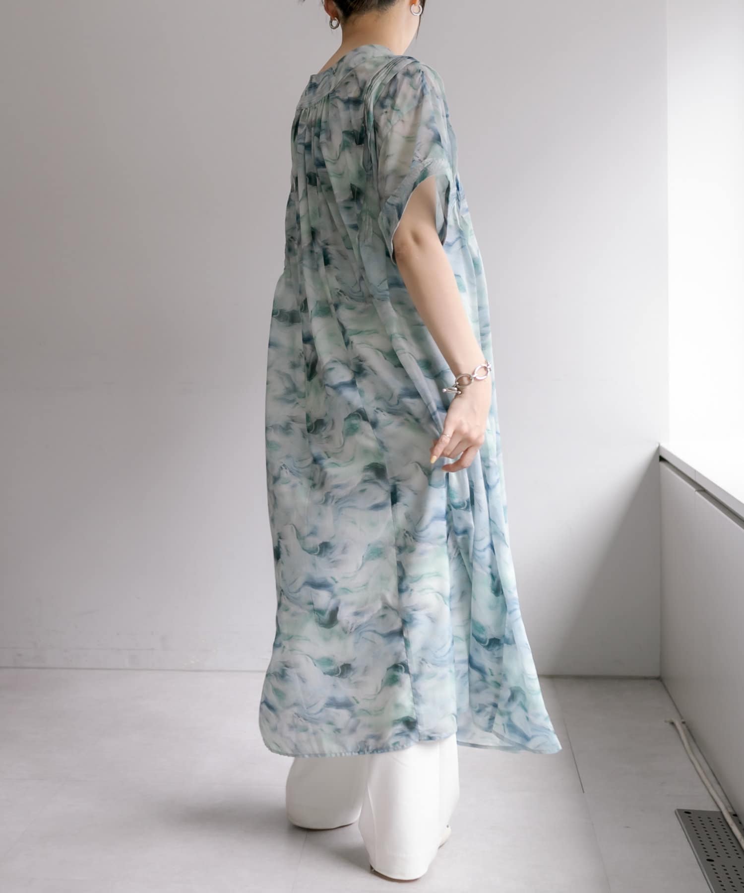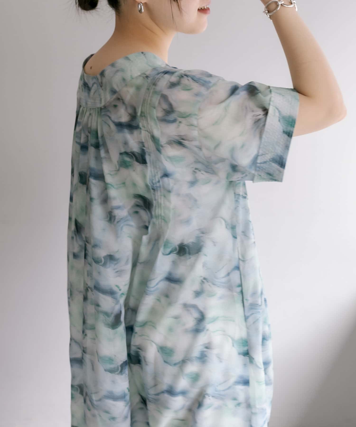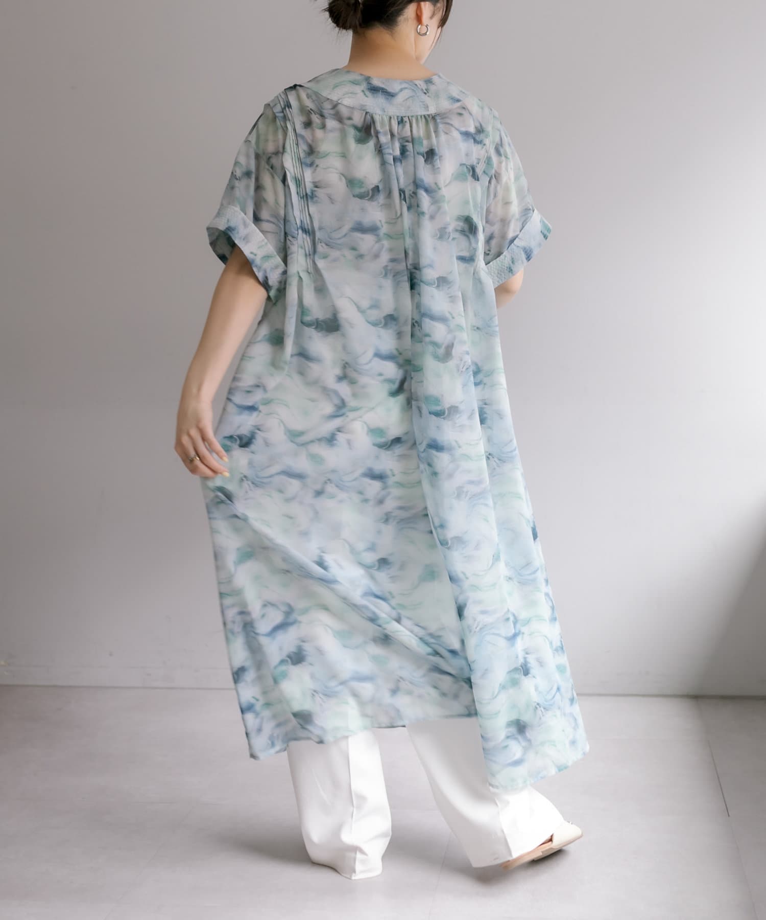 爽やかカラーの軽やかワンピース