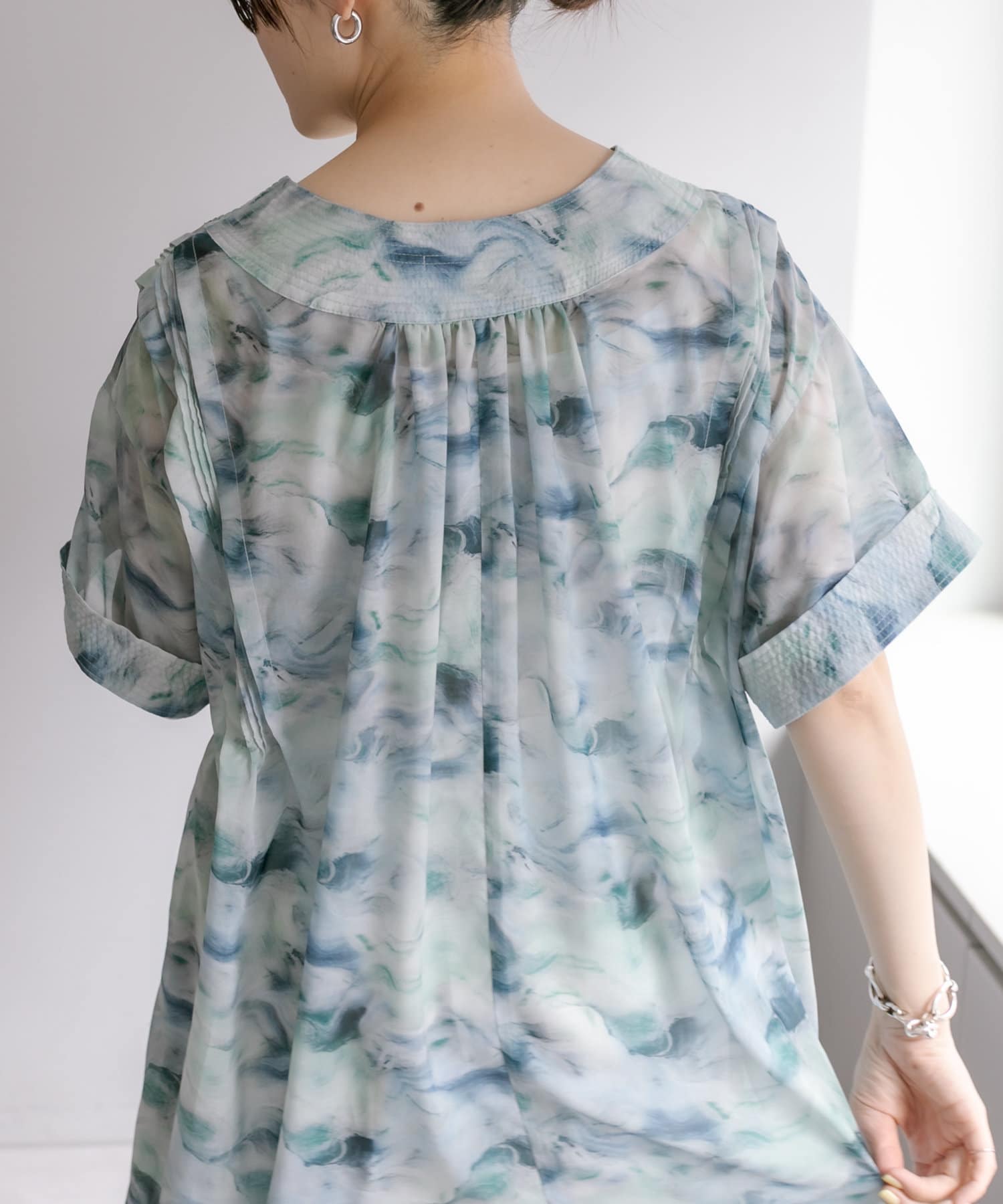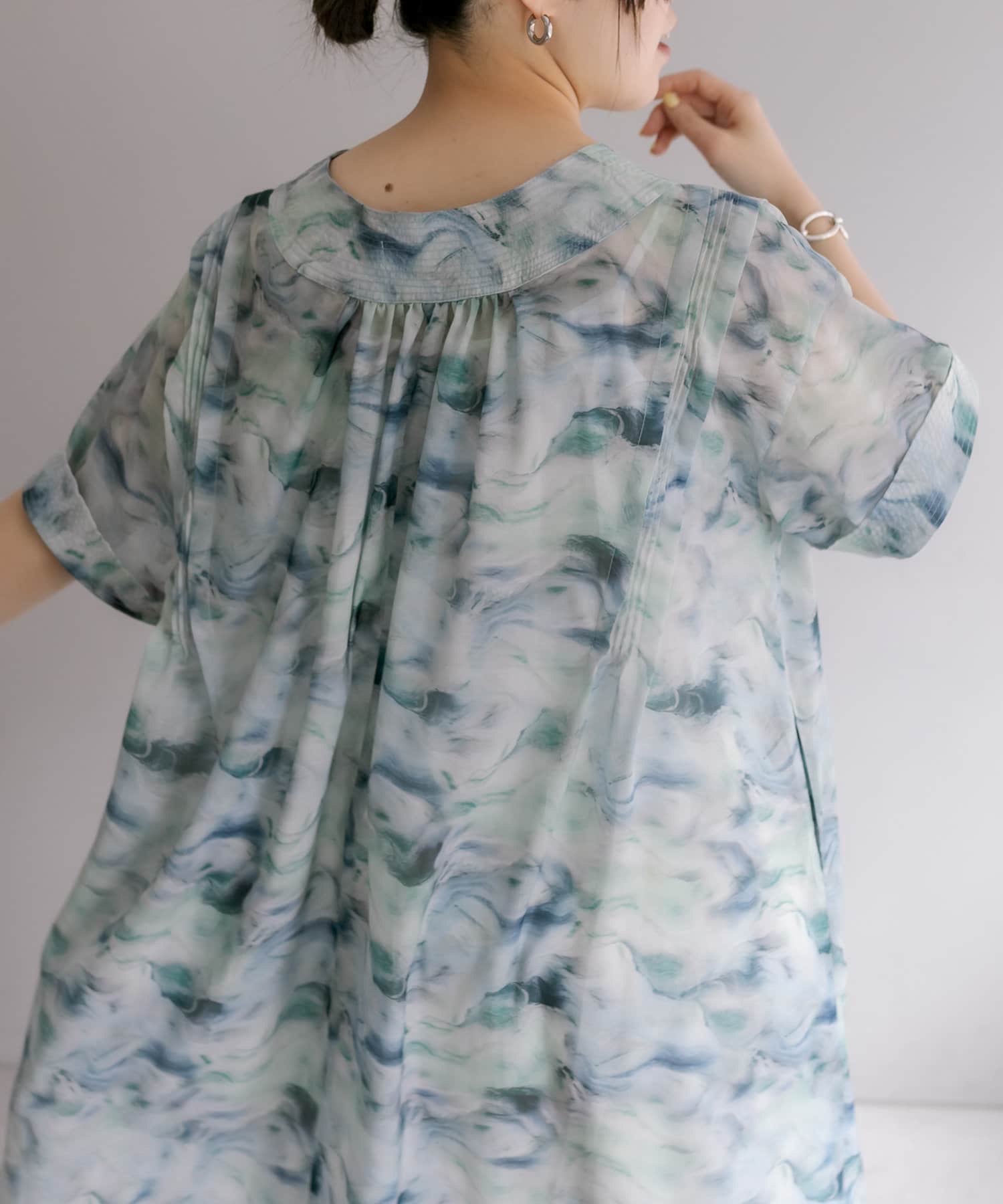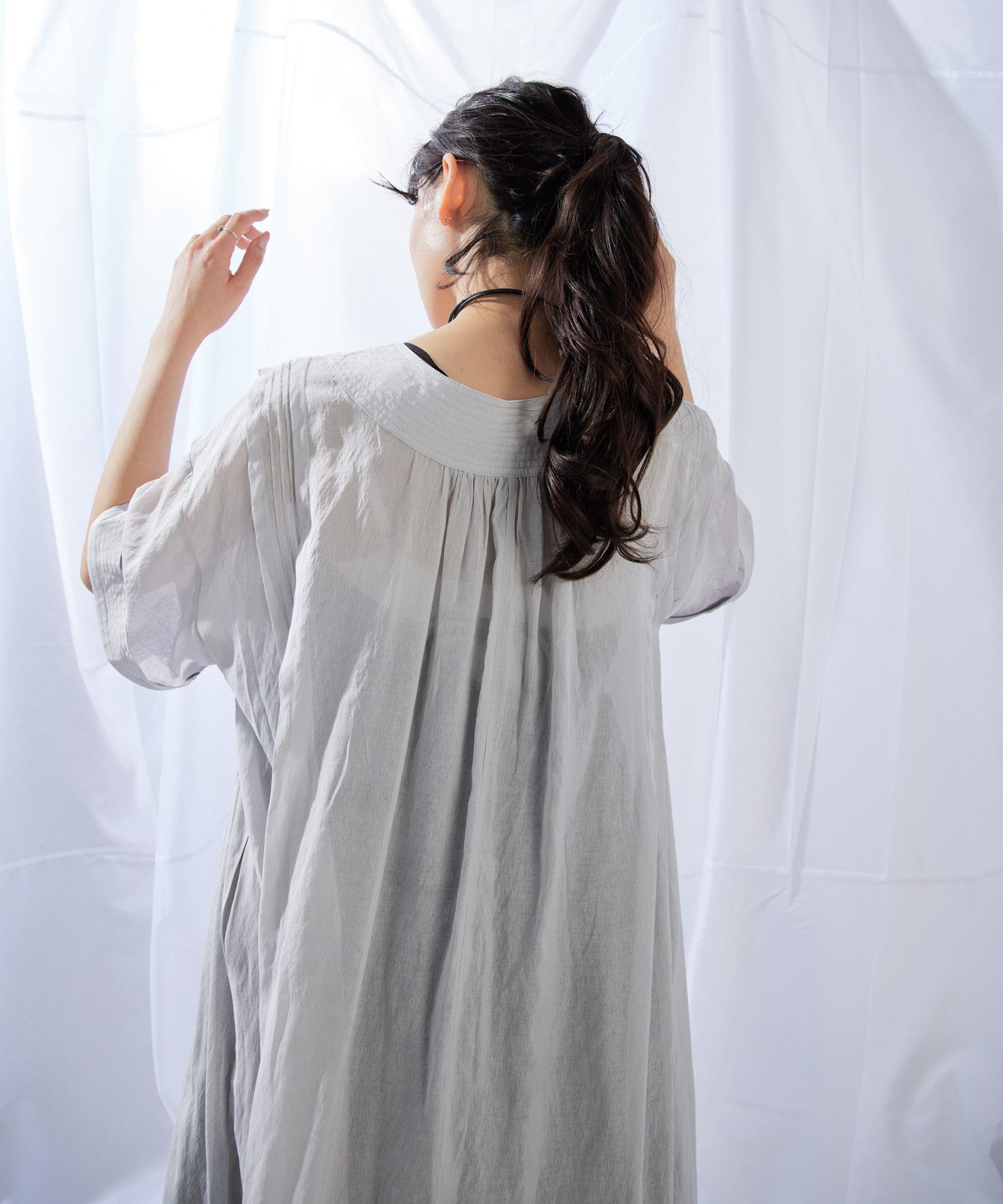 ほのかに透け感のある薄手の素材を使用していて、着心地は軽やか。